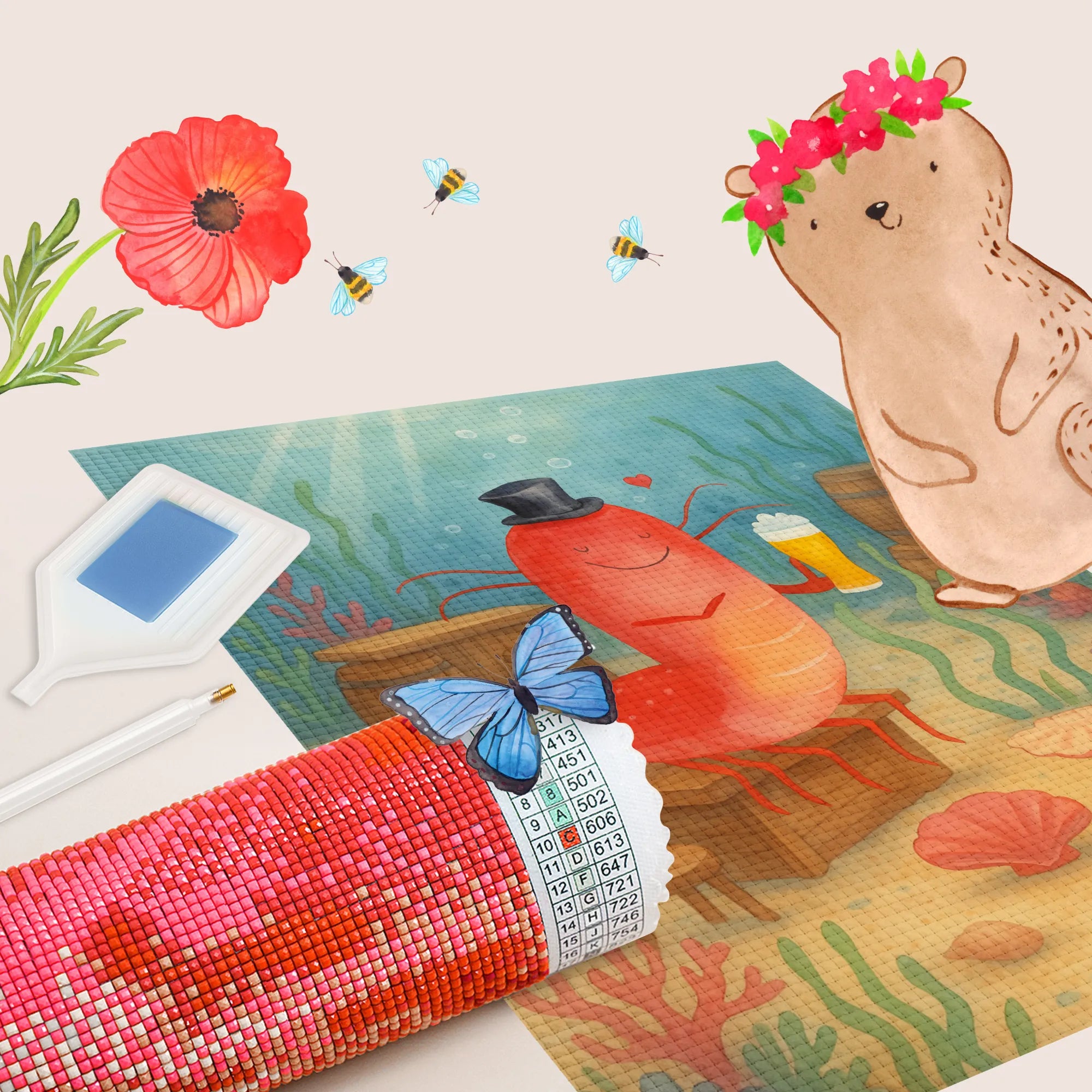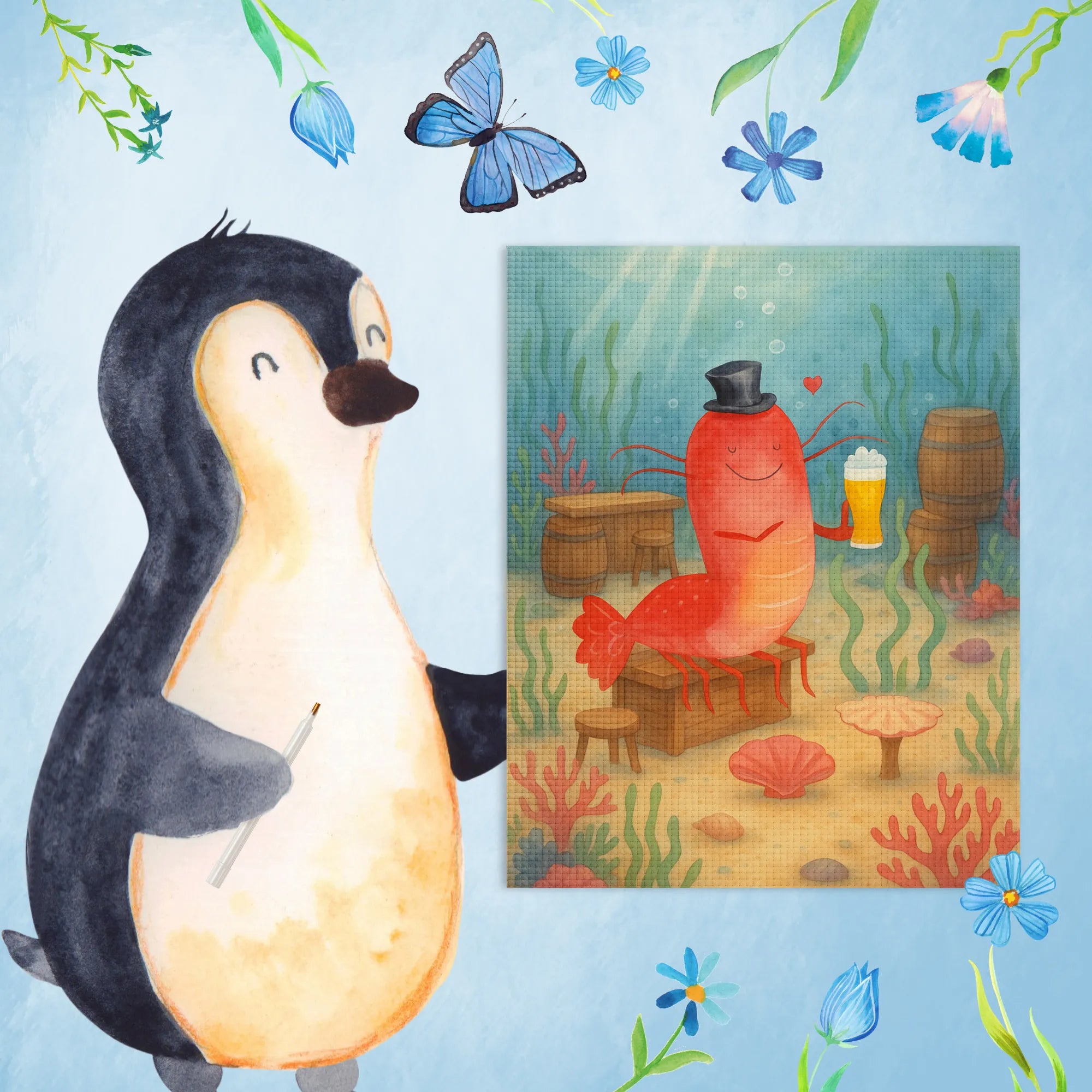 Ein Hummer, der mit einer goldenen Krone geschmückt ist und fröhlich ein Bier in seiner Schere hält, ist mehr als nur ein Bild – es ist ein Symbol für Lebensfreude. Umgeben von sanften Wellen des Seegrases und einem kleinen roten Herz darüber, verkörpert er das fröhliche Zusammensein in einer Männerwirtschaft. Dieser schicke Hummer erinnert uns daran, dass das Leben kurz ist und wir jeden Moment genießen sollten. Perfekt für Bierliebhaber und alle, die gerne Kochen, bringt er Freude in jeden Junggesellenhaushalt, egal ob zuhause oder in der Kneipe. Sein zufriedenes Lächeln und die geschlossenen Augen laden dazu ein, sich zurückzulehnen und das Leben zu feiern. Dieses fröhliche Motiv bringt die unbeschwerte Atmosphäre des Gasthauses direkt zu dir nach Hause. Wenn du ein Stück Wohnglück suchst, das mit guten Freunden und leckerem Essen verbunden ist, dann ist dieser Hummer genau das Richtige für dich.