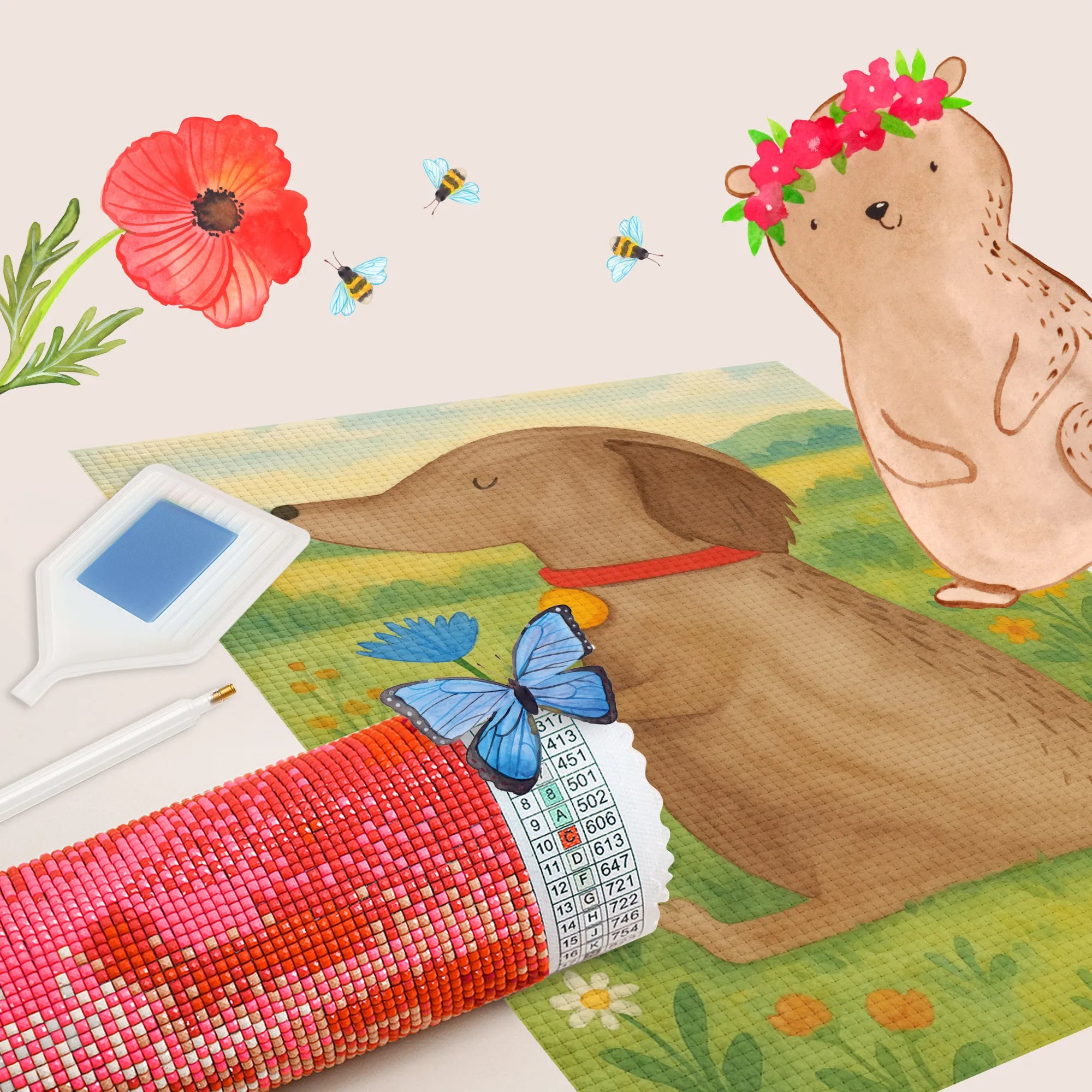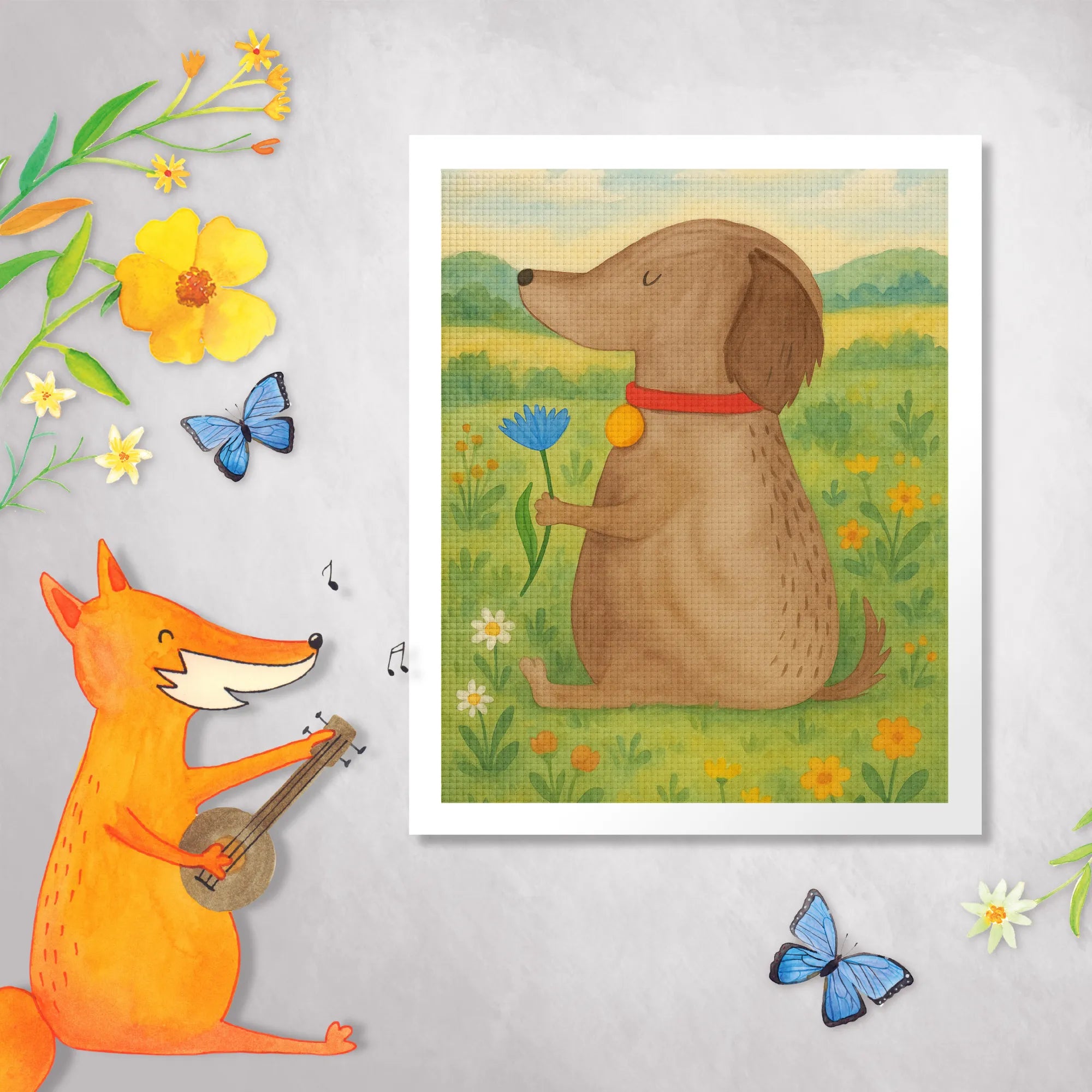 Diamond Painting Hund Blume Design - Ohne Rahmen