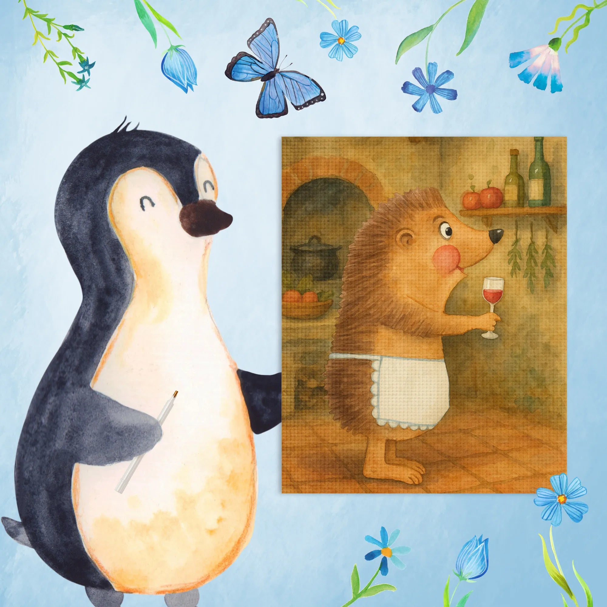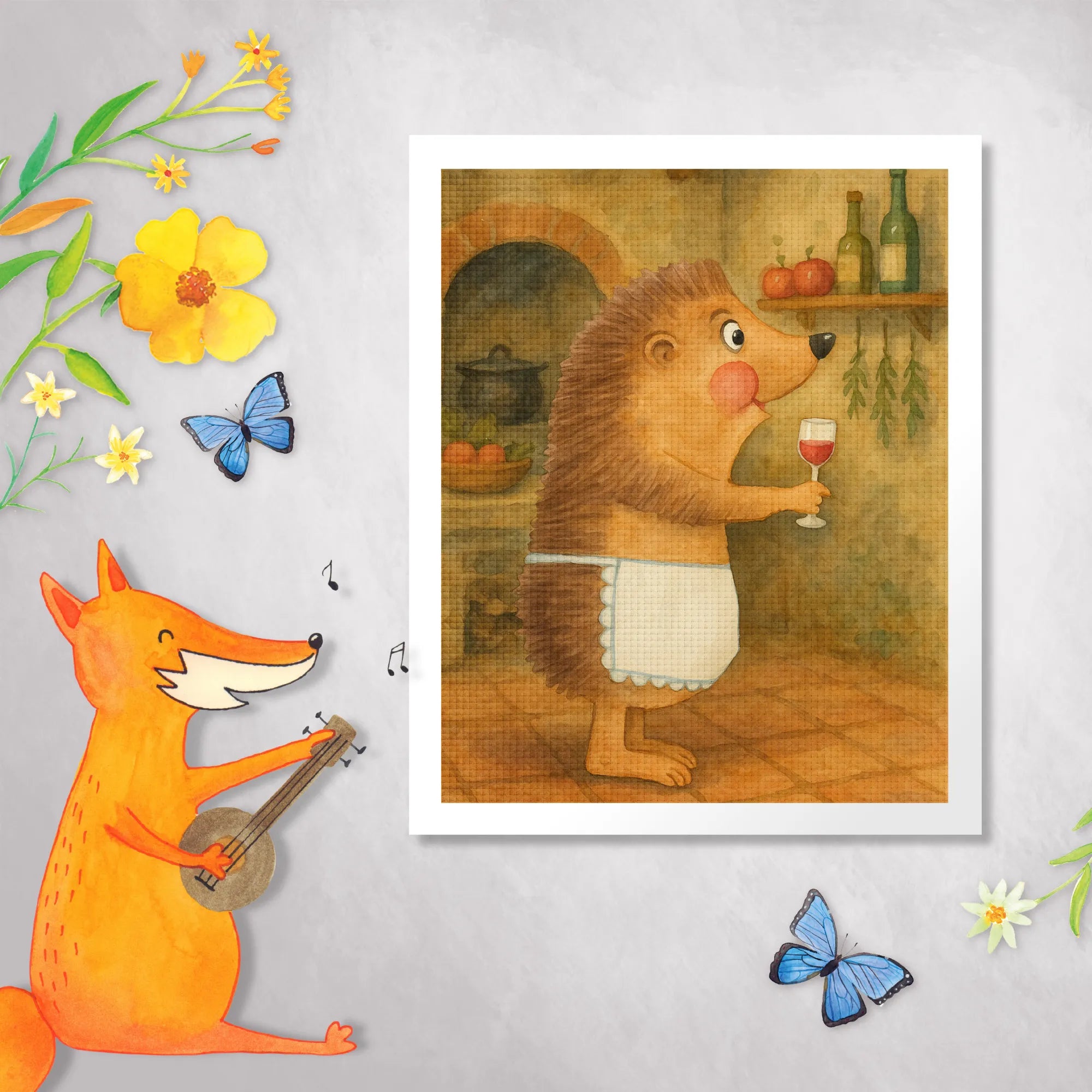Mit diesem zuckersüßen Igel-Motiv bist du der Held jedes Weinabends! Der kleine Stachelige schnüffelt am Rand eines Rotweinglases und lächelt dir zu – er kann einfach nicht widerstehen. Bei einem Glas Rotwein wird das Leben gleich viel bunter und fröhlicher. Jeder Schluck, den dieser kleine Kerl genießt, erinnert uns daran, das Leben zu feiern. Ideal für Weintrinker, bietet dieses Motiv nicht nur eine witzige Wein-Deko, sondern ist auch ein tolles Geschenk für all deine Freunde, die ihren Wein genauso lieben wie du. Verwandle deinen Wohnbereich in einen Ort voller Charme und Heiterkeit, während dieser Igel seine Spuren hinterlässt und die Geselligkeit anheizt. Ein kleiner Spruch über Wein auf diesem Kunstwerk wird deinem Raum eine besondere Note verleihen – denn das Leben ist zu kurz, um den Wein nicht zu genießen!