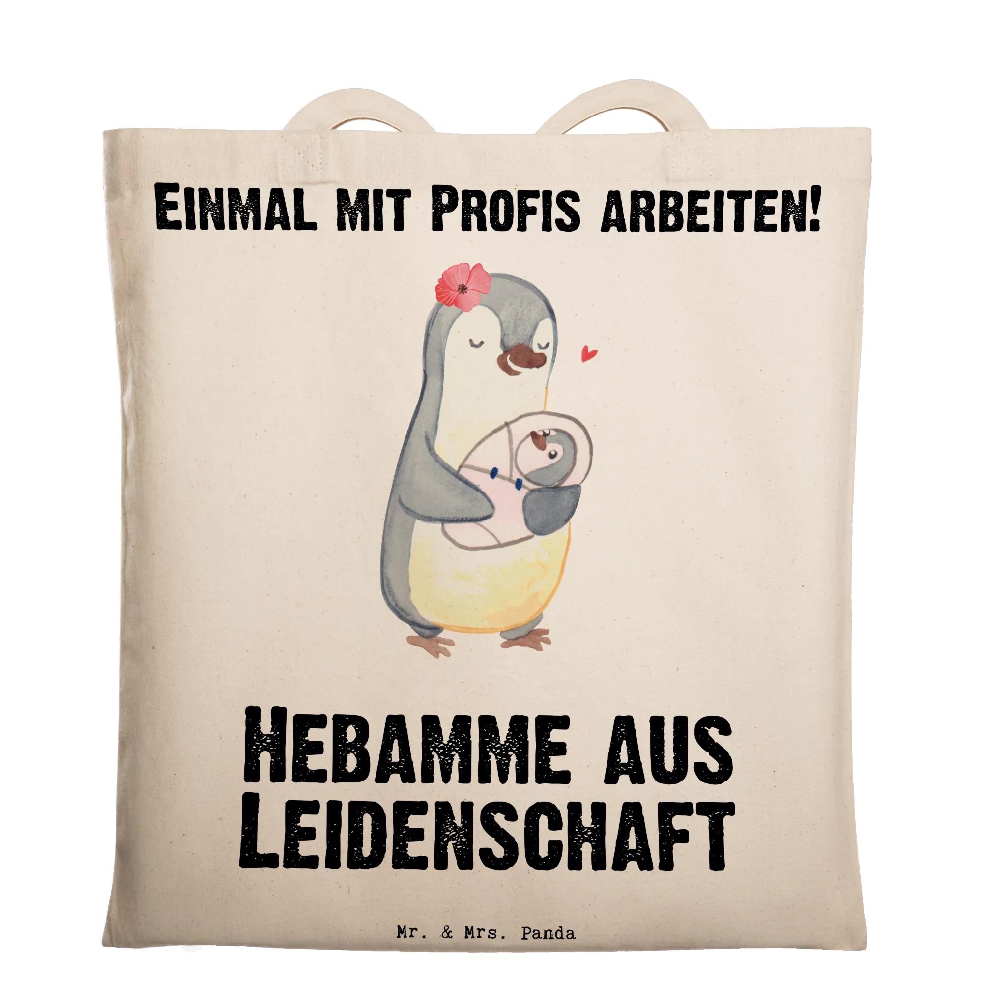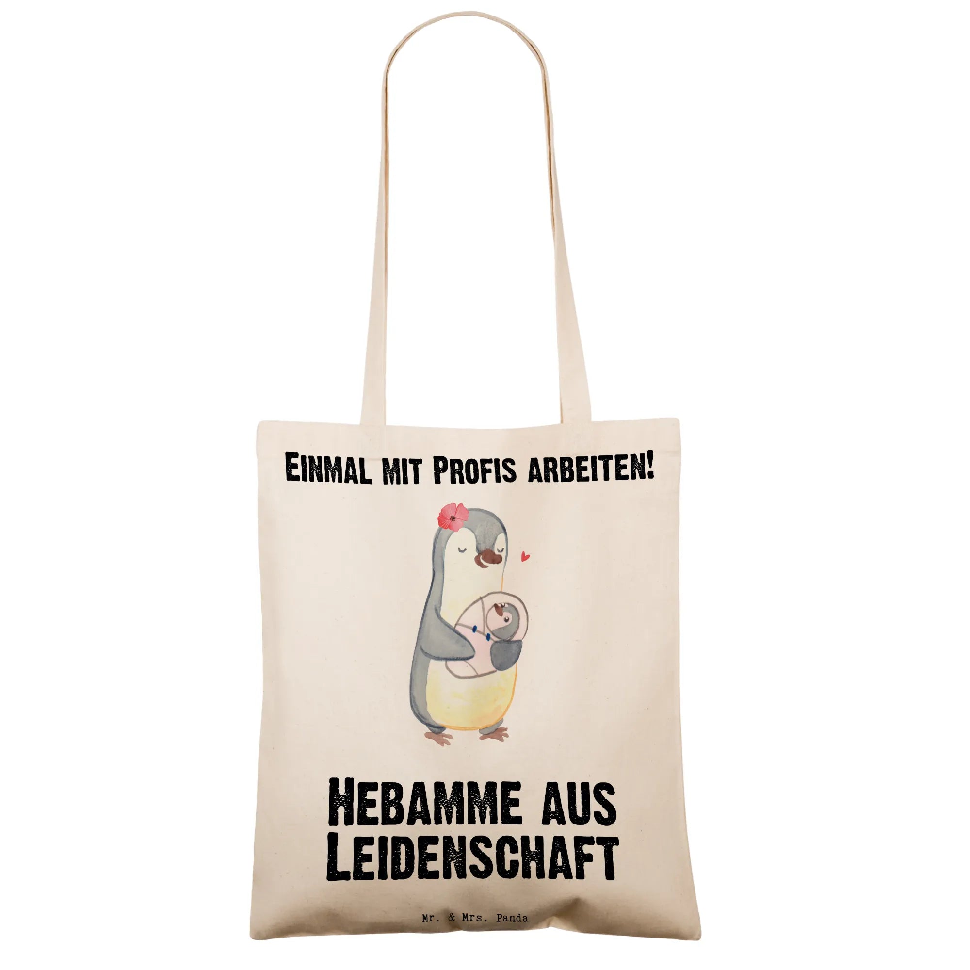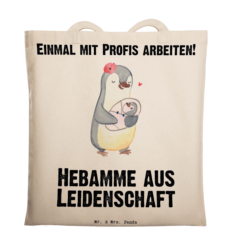 Die Tragetasche "Hebamme aus Leidenschaft" von Mr. & Mrs. Panda ist das perfekte Geschenk für alle, die eine Hebamme in ihrem Leben haben oder selbst Hebamme sind. Mit einem liebevoll gezeichneten Pinguin, der eine Hebamme darstellt, die ein Baby im Arm hält, bringt diese Tasche ein Lächeln auf jedes Gesicht. Ob zum Berufsabschied, als Dankeschön für die Unterstützung bei der Geburt oder einfach als kleine Aufmerksamkeit zwischendurch – diese Stofftasche ist vielseitig einsetzbar und wird bestimmt Freude bereiten!