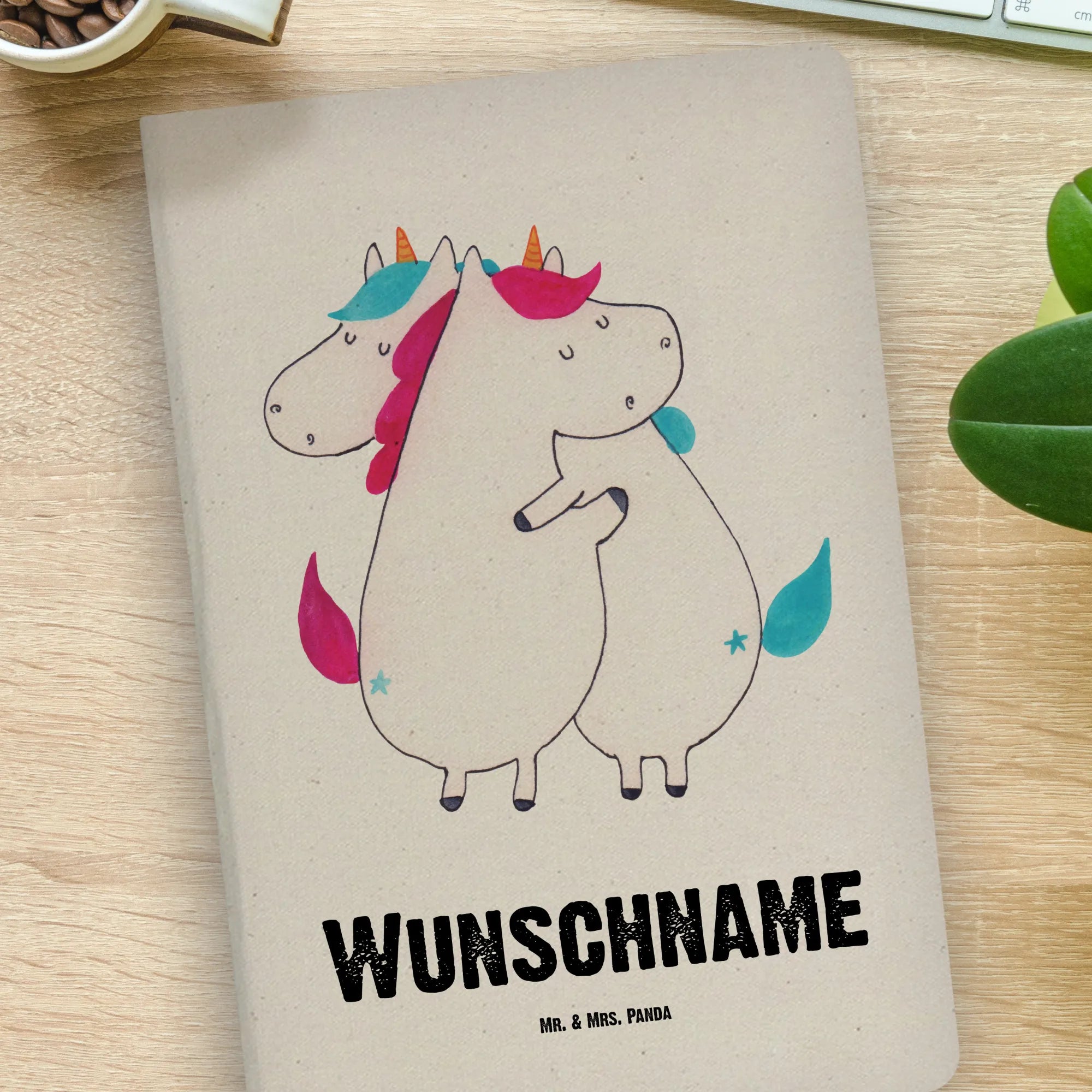 DIN A4 Personalisiertes Notizbuch Einhörner Umarmen – Mr. & Mrs. Panda