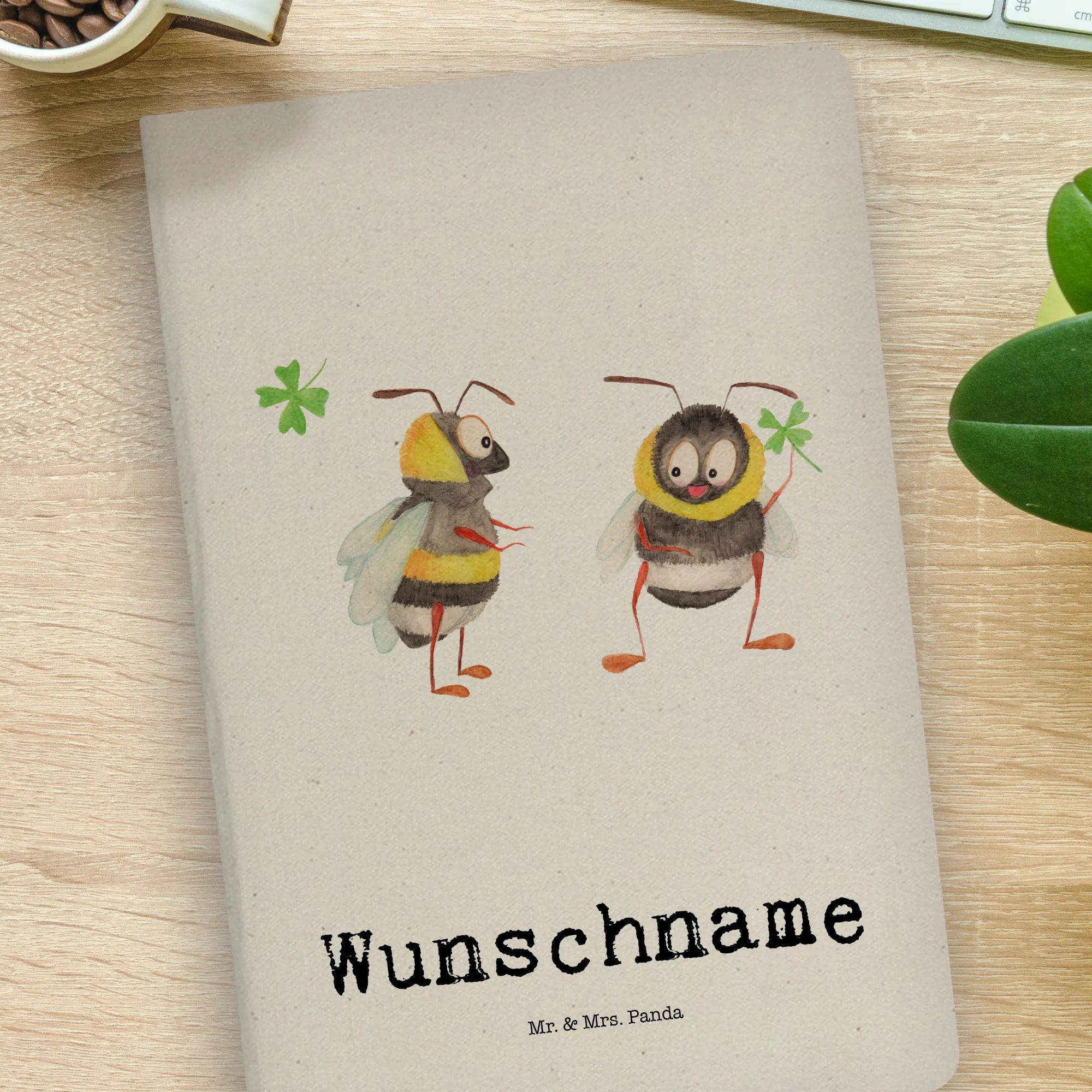 Die niedlichen Bienen, die auf dem Cover abgebildet sind, strahlen pure Freude und Zusammengehörigkeit aus. Eine Biene hält ein vierblättriges Kleeblatt, und gemeinsam symbolisieren sie Liebe und Glück. Mit dem persönlichen Namen oder Wunschtext wird dieses Notizbuch zu einem einzigartigen und persönlichen Geschenk.