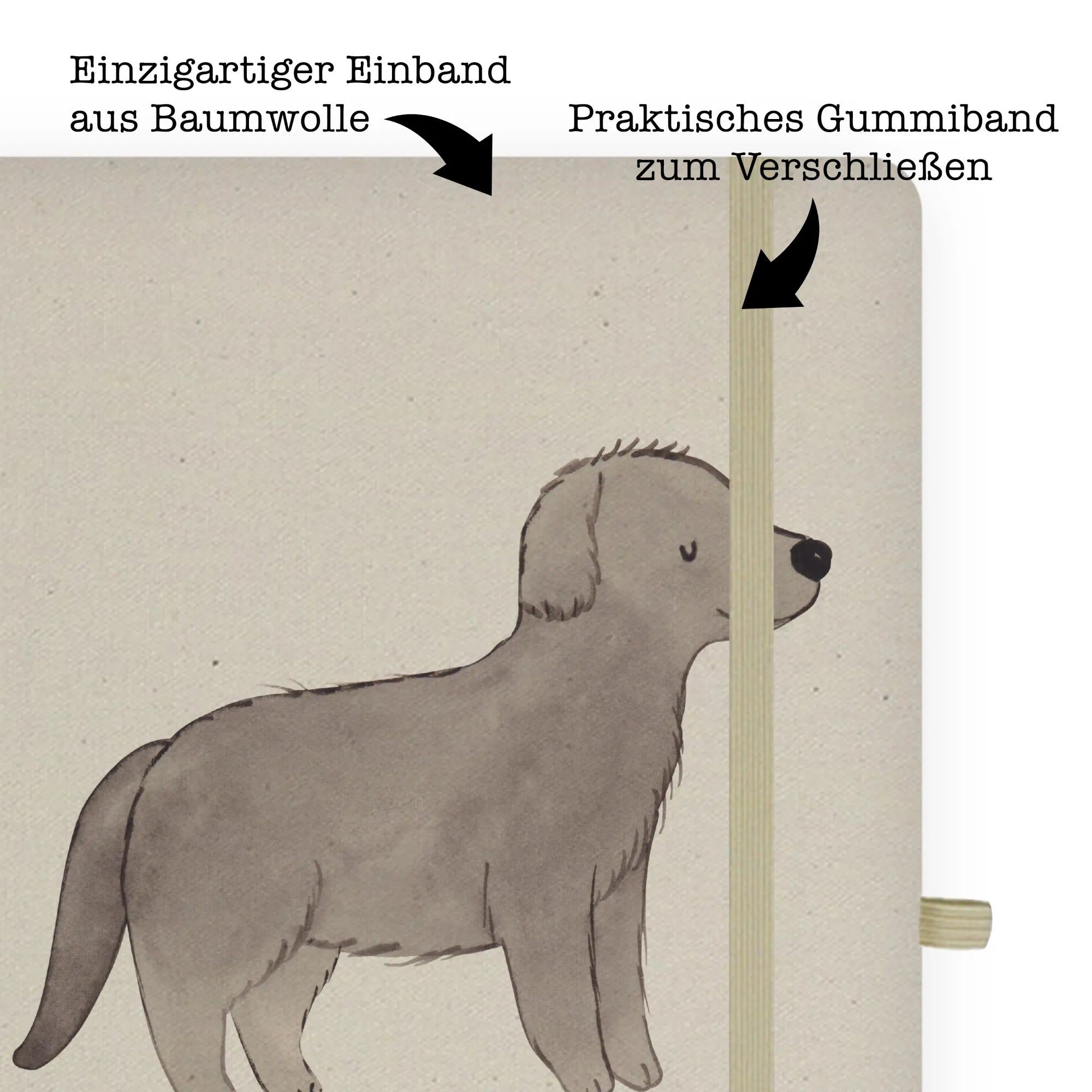 Der freundliche Neufundländer auf dem Cover präsentiert sich in sanften Grautönen und strahlt eine unbeschreibliche Wärme aus. Dieses Notizbuch ist nicht nur schön, sondern auch praktisch – ausgestattet mit einem Lesezeichen, Gummiband und einer Stifteschlaufe hast du alles, was du brauchst, immer griffbereit.