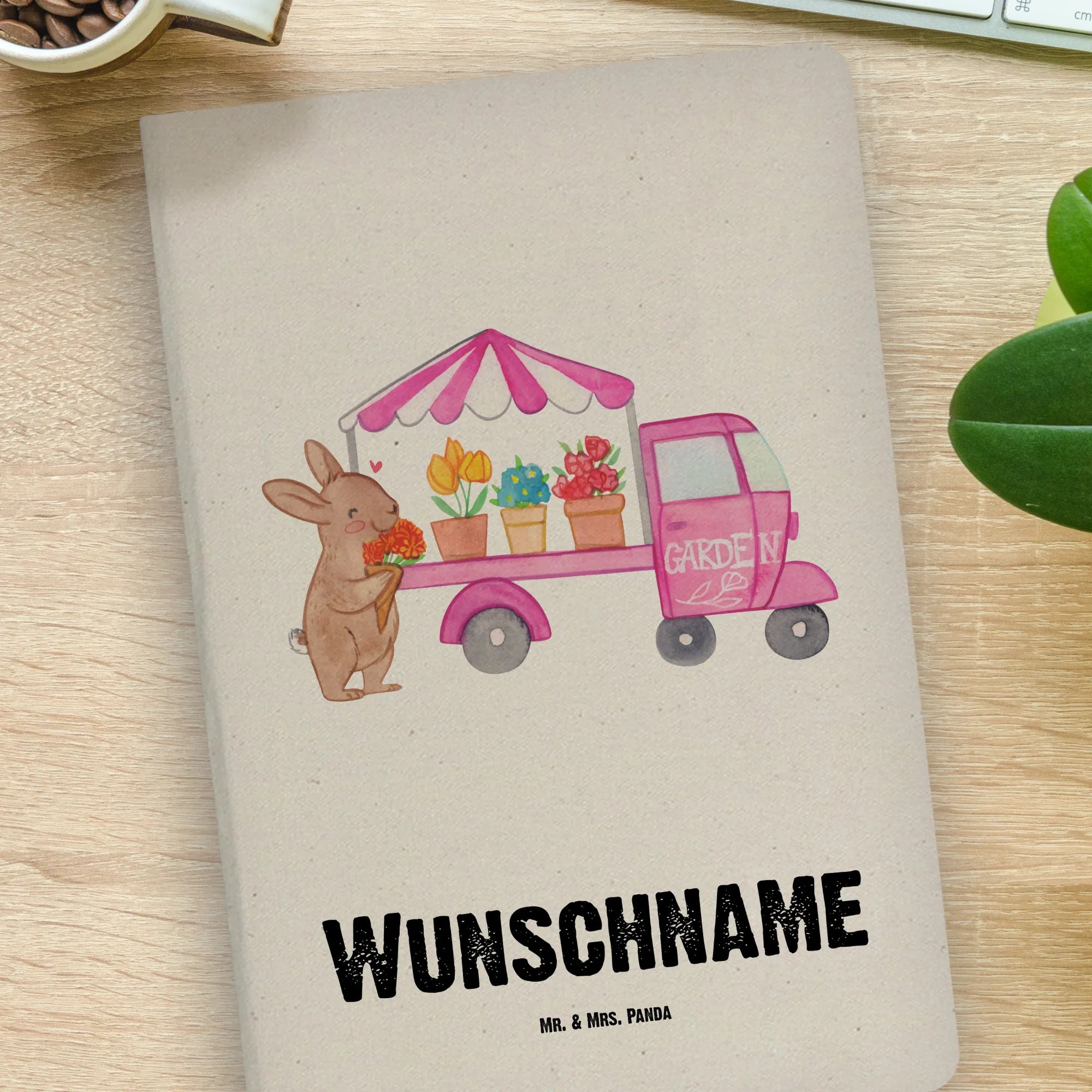 DIN A4 Personalisiertes Notizbuch Osterhase Blumenwagen