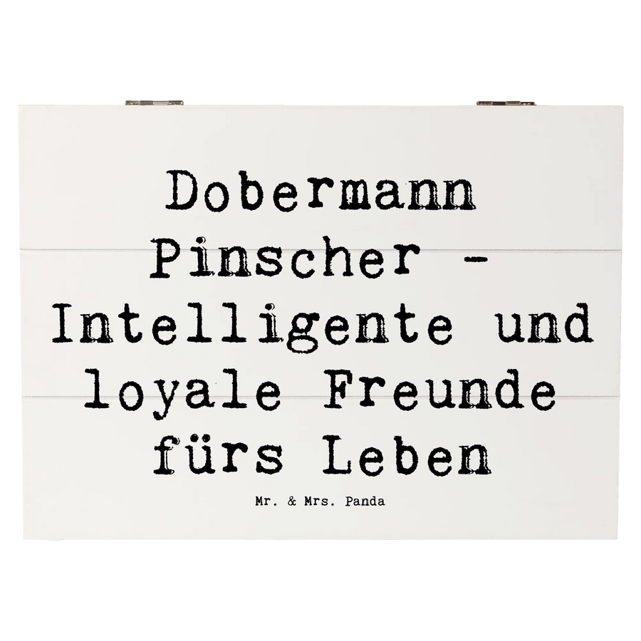Die wunderschöne Holzkiste von Mr. & Mrs. Panda mit dem Motiv des Dobermann Pinschers ist das perfekte Geschenk für alle Hundefans und Hundehalter. Diese Erinnerungskiste ist nicht nur ein fantastisches Aufbewahrungsort für all deine Schätze und Erinnerungen, sondern auch ein stilvolles Deko-Element in deinem Zuhause.