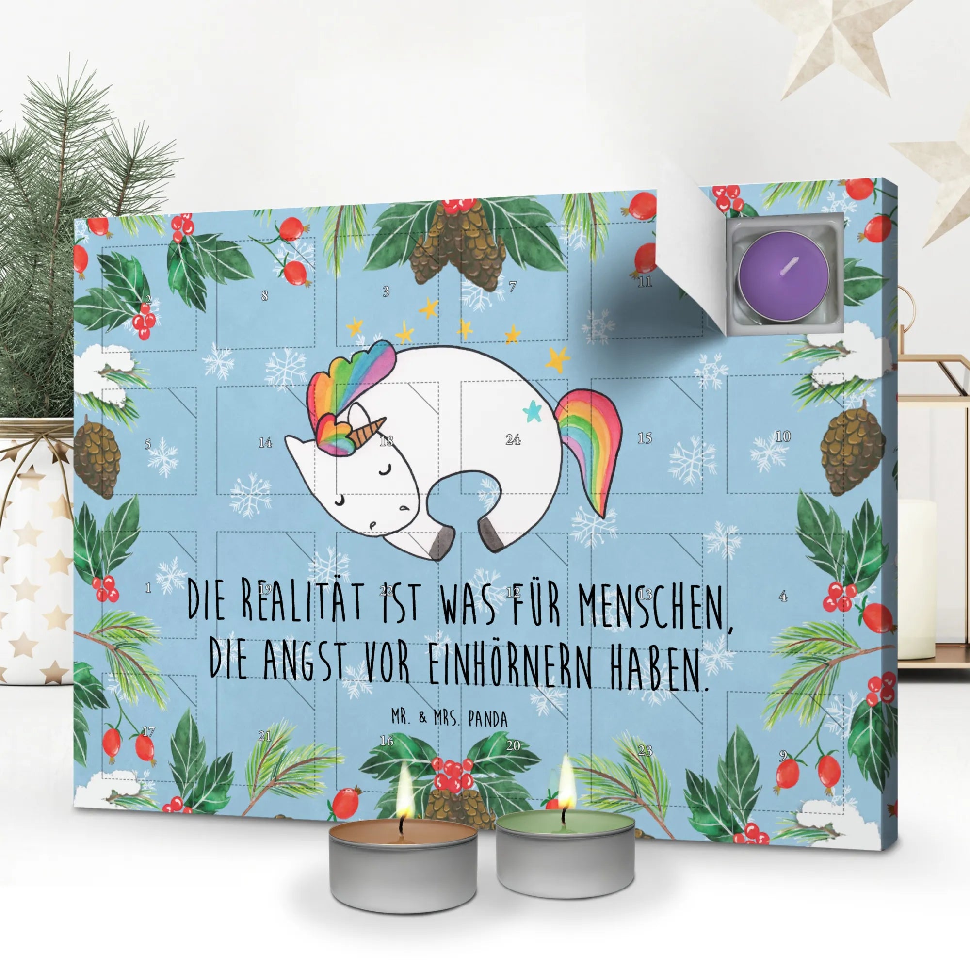 Entdecke unseren zauberhaften Duftkerzen Adventskalender "Einhorn Nacht" aus der Einhorn-Kollektion – das perfekte Geschenk für alle, die in die traumhafte Welt der Einhörner eintauchen möchten! Mit liebevollen Motiven von Mrs. Panda und dem süßen Spruch "Die Realität ist was für Menschen, die Angst vor Einhörnern haben", bringt dieser Adventskalender jeden Tag eine neue Duftüberraschung direkt in dein Zuhause.