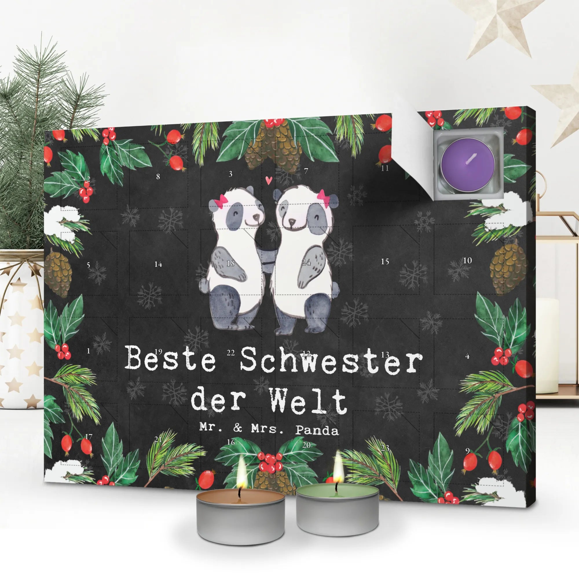 Duftkerzen Adventskalender Panda Beste Schwester der Welt - Kreidetafel