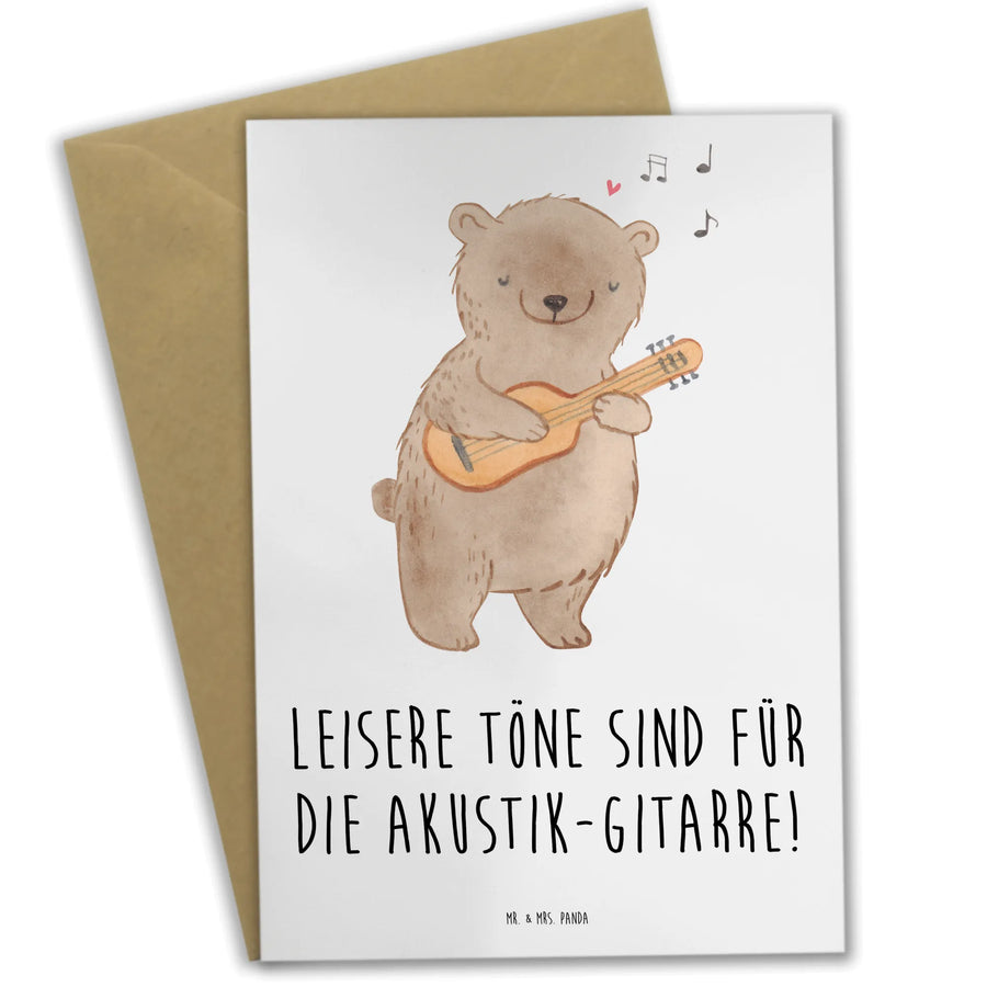 Mit dieser Grußkarte von Mr. & Mrs. Panda zeigst Du, dass Du an sie denkst und die Musik schätzt. Die Kombination aus einem tollen Motiv, einem herzlichen Spruch "Leisere Töne sind für die Akustik-Gitarre!" und einer hochwertigen Verarbeitung macht sie zu einem unvergesslichen Geschenk, das in jedem Musikzimmer einen Ehrenplatz finden wird. Schenke Freude und lieben Worte in Form dieser tollen E-Gitarren-Karte – für jeden Anlass!