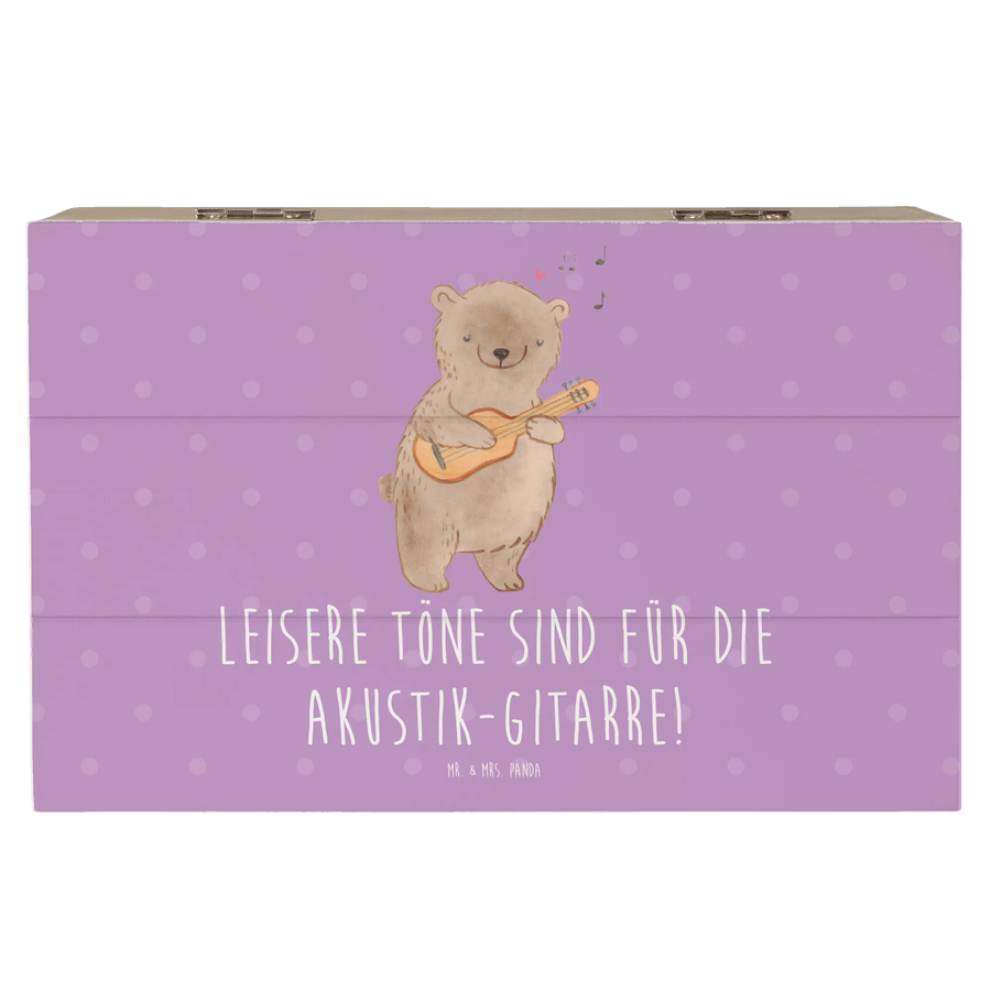 Der Slogan "Leisere Töne sind für die Akustik-Gitarre!" bringt die Leidenschaft für Musik perfekt zum Ausdruck und macht die Kiste zu einem besonderen Geschenk für Musiker und Musikliebhaber.