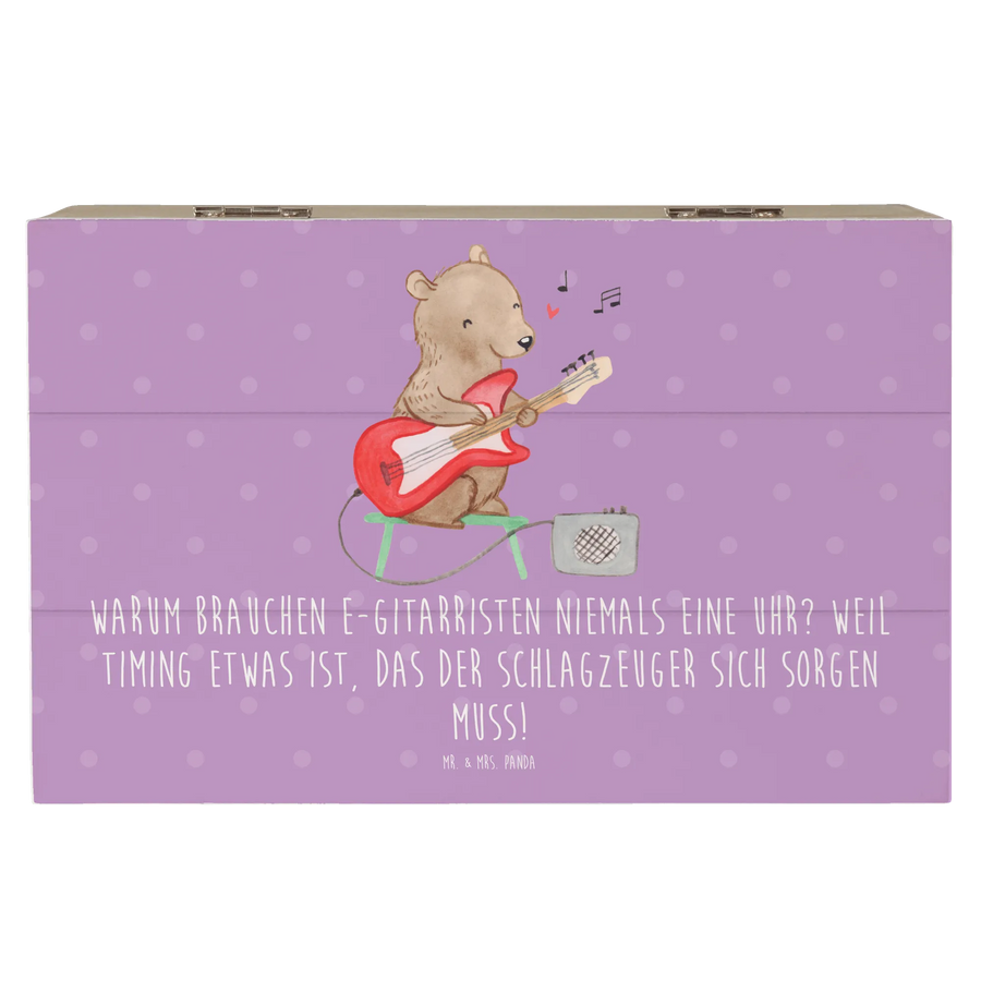 Die wunderschöne Holzkiste von Mr. & Mrs. Panda ist der perfekte Aufbewahrungsort für all deine Schätze! Mit einem bezaubernden Motiv einer E-Gitarre aus unserer Kollektion "Musizieren & Instrumente" wird diese Kiste zum idealen Geschenk für Musiker und Musikliebhaber. Ob Erinnerungsstücke, Fotos oder kleine Geschenke – hier findet alles seinen Platz!