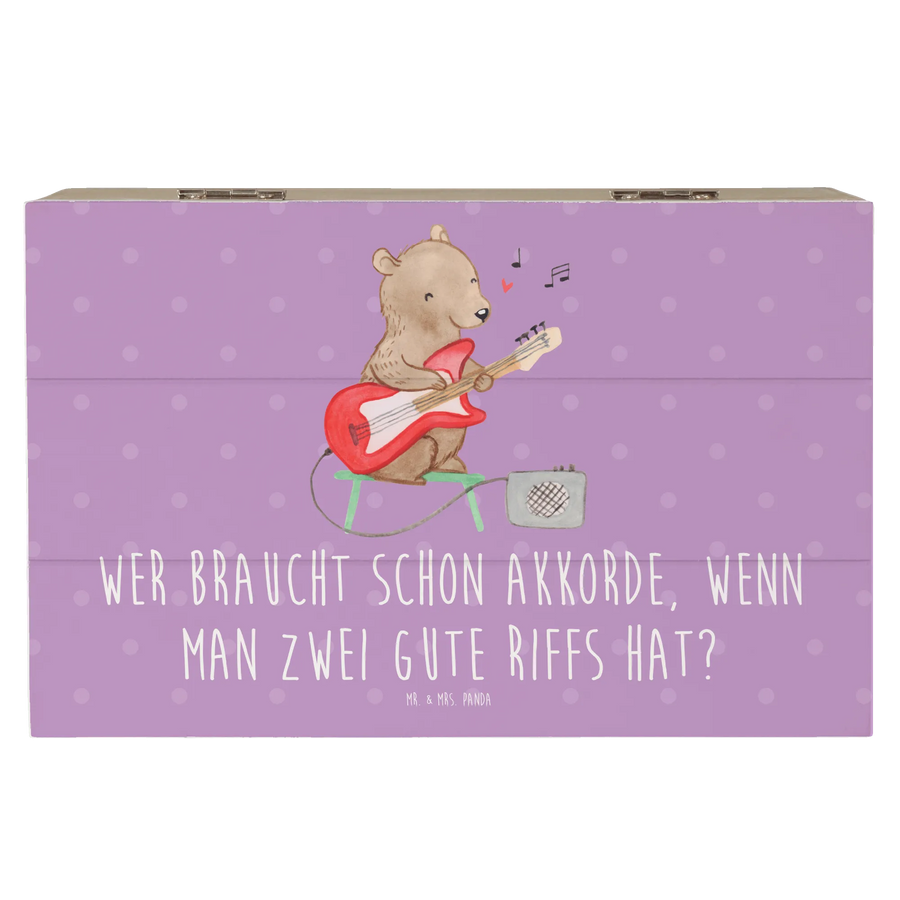 Entdecke unsere wunderschöne Holzkiste mit dem coolen E-Gitarren-Motiv von Mr. & Mrs. Panda! Diese zauberhafte Kiste ist nicht nur ein praktischer Aufbewahrungsort für all deine Schätze, sondern auch ein ganz besonderes Geschenk für Musikliebhaber und angehende Gitarristen. Mit einem inspirierenden Slogan "Wer braucht schon Akkorde, wenn man zwei gute Riffs hat?" wird diese Kiste zu einem unwiderstehlichen Hingucker in jedem Raum!