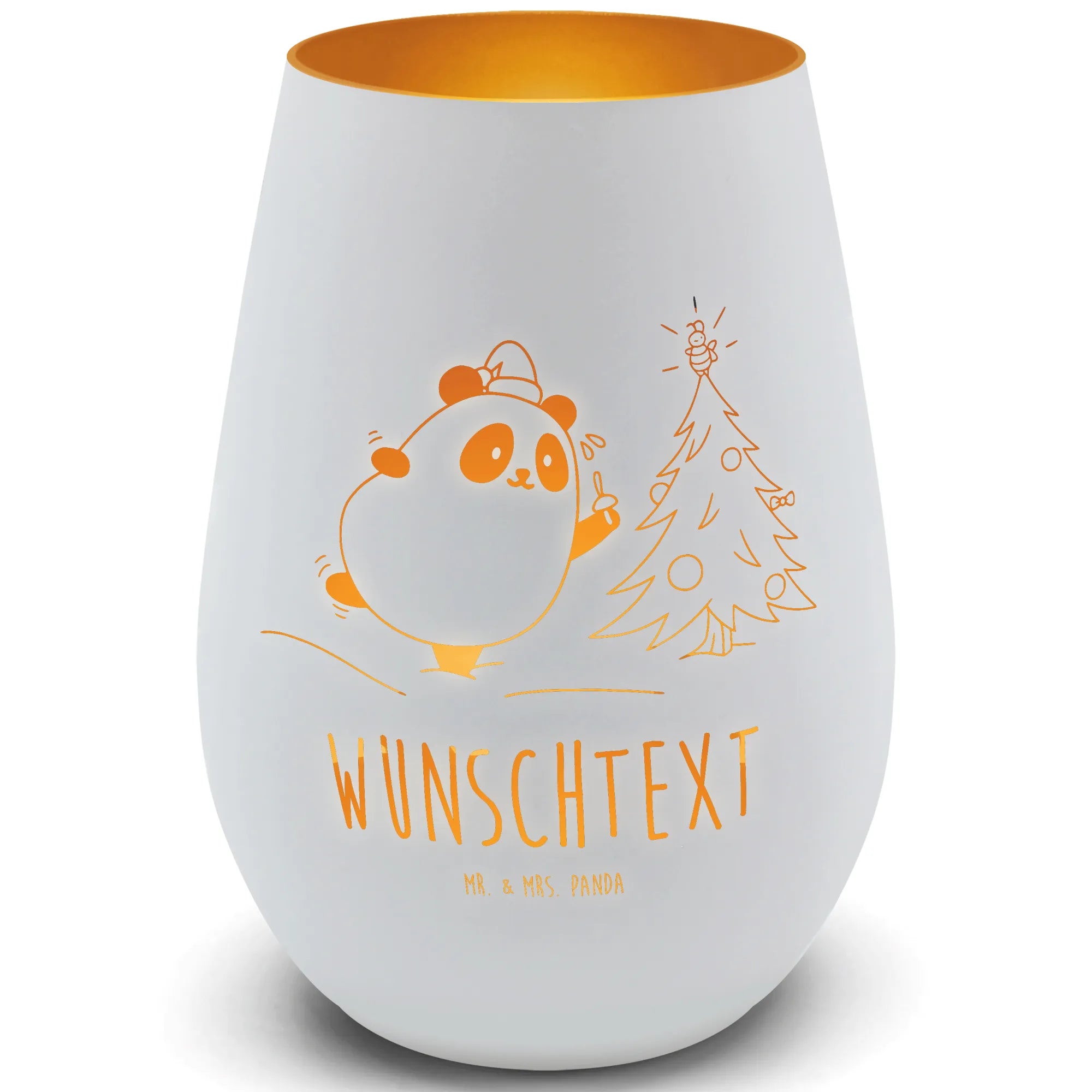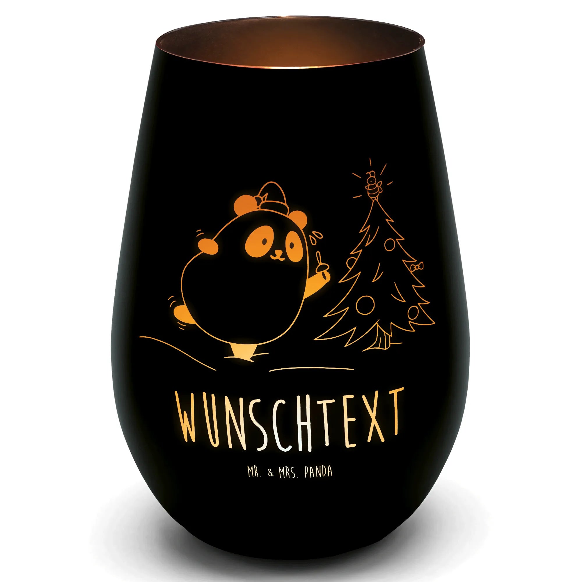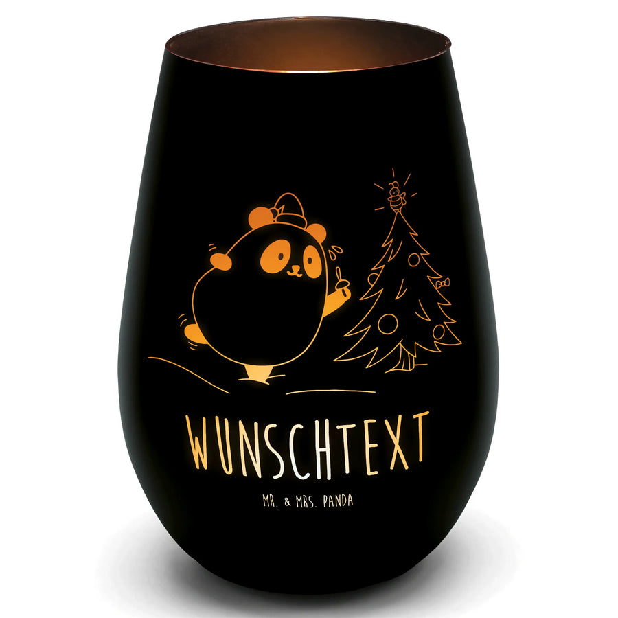 Gold Windlicht Personalisiert Panda Weihnachtszeit - Schwarz