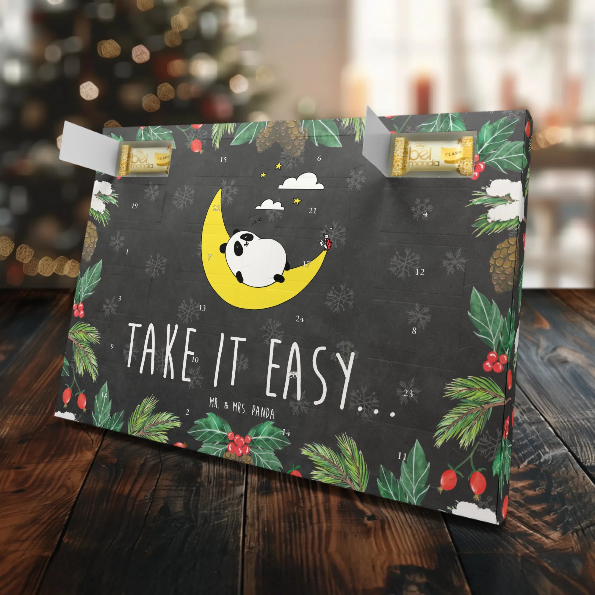 Das wunderschöne Design mit den charmanten Figuren, einem schlafenden Panda auf einer Mondsichel und einem Marienkäfer, der Geschichten vorliest, bringt ein Lächeln in jedes Gesicht. Jedes Detail wurde liebevoll von Mrs. Panda handgezeichnet und strahlt Lebensfreude aus. Der Spruch "Take it Easy..." macht diesen Adventskalender zu einem perfekten Geschenk für Freunde, Familie oder einfach für dich selbst!