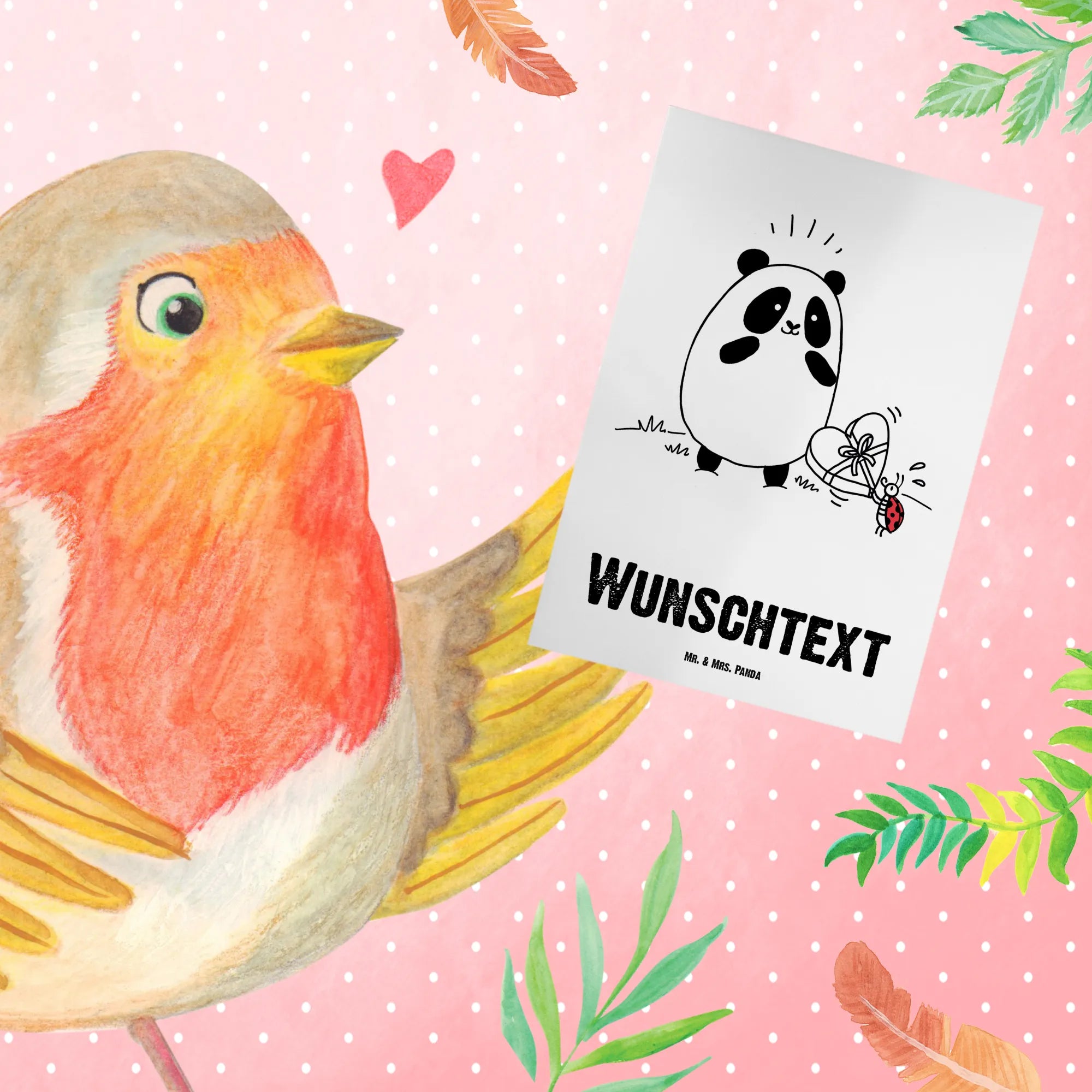 Mit einem fröhlichen Panda, der eine Schachtel Pralinen von einem kleinen, süßen Marienkäfer entgegennimmt, strahlt die Karte Freude und Dankbarkeit aus. Die Möglichkeit, die Karte mit deinem Wunschnamen oder einem individuellen Text zu personalisieren, macht sie zu einem ganz besonderen Geschenk für deine Lieben oder für besondere Anlässe.