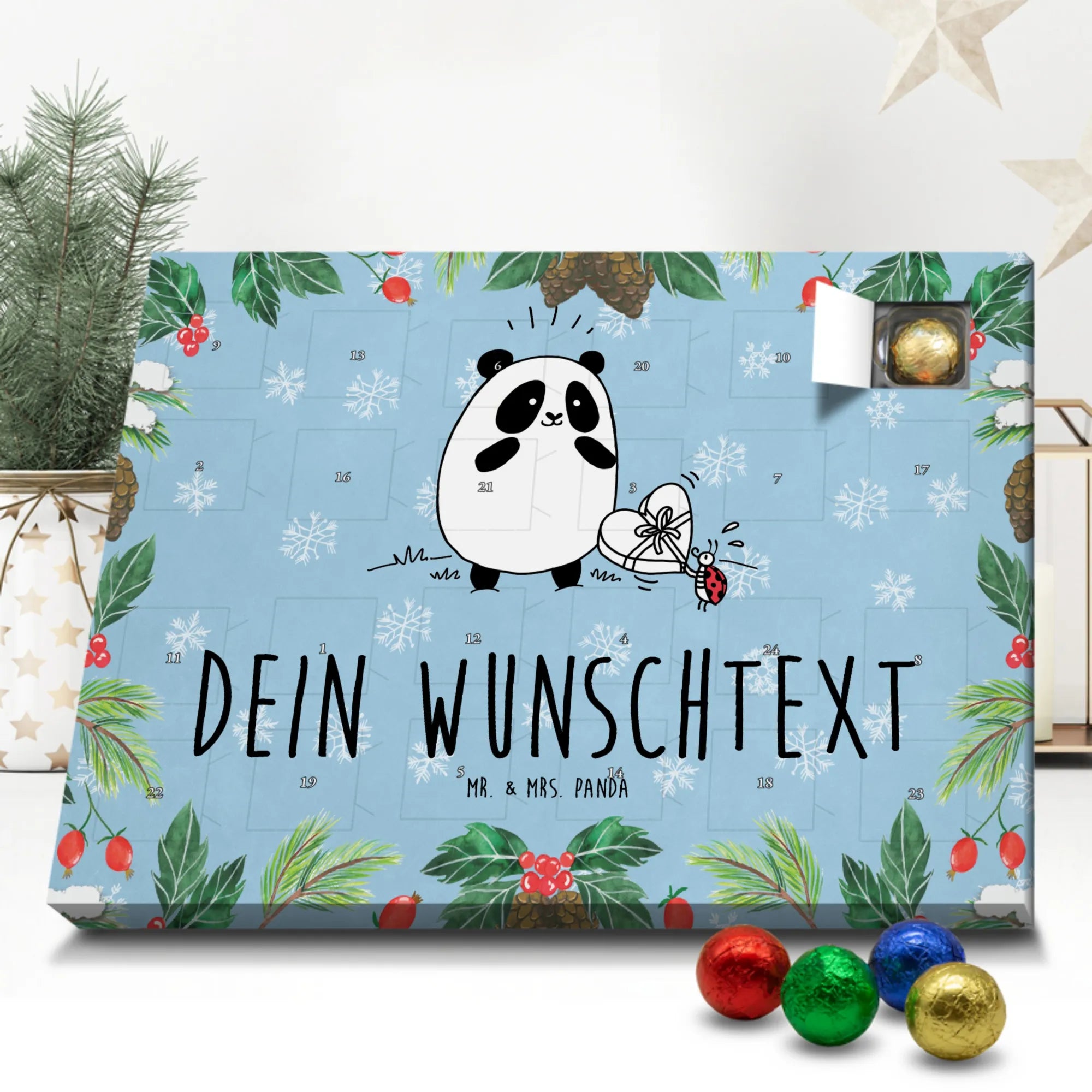 Mach Advent magisch: Gestalte jetzt deinen personalisierten Schoko Adventskalender und überrasche deine Liebsten mit einem individuellen Geschenk von Mr. & Mrs. Panda!