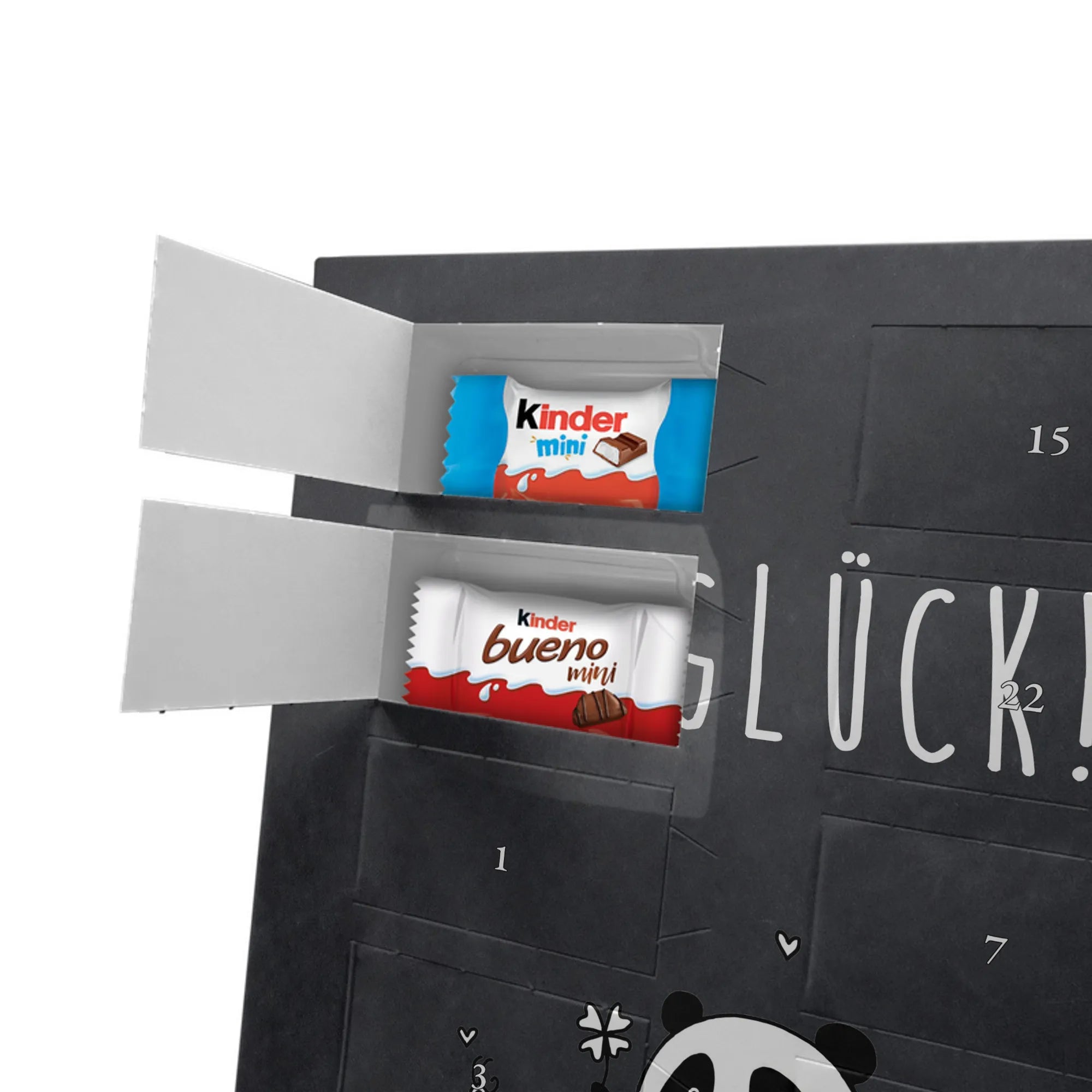 🐼 Bedruckte Seitenflächen, liebevolle Motive und gefüllt mit kinder® Schokolade.