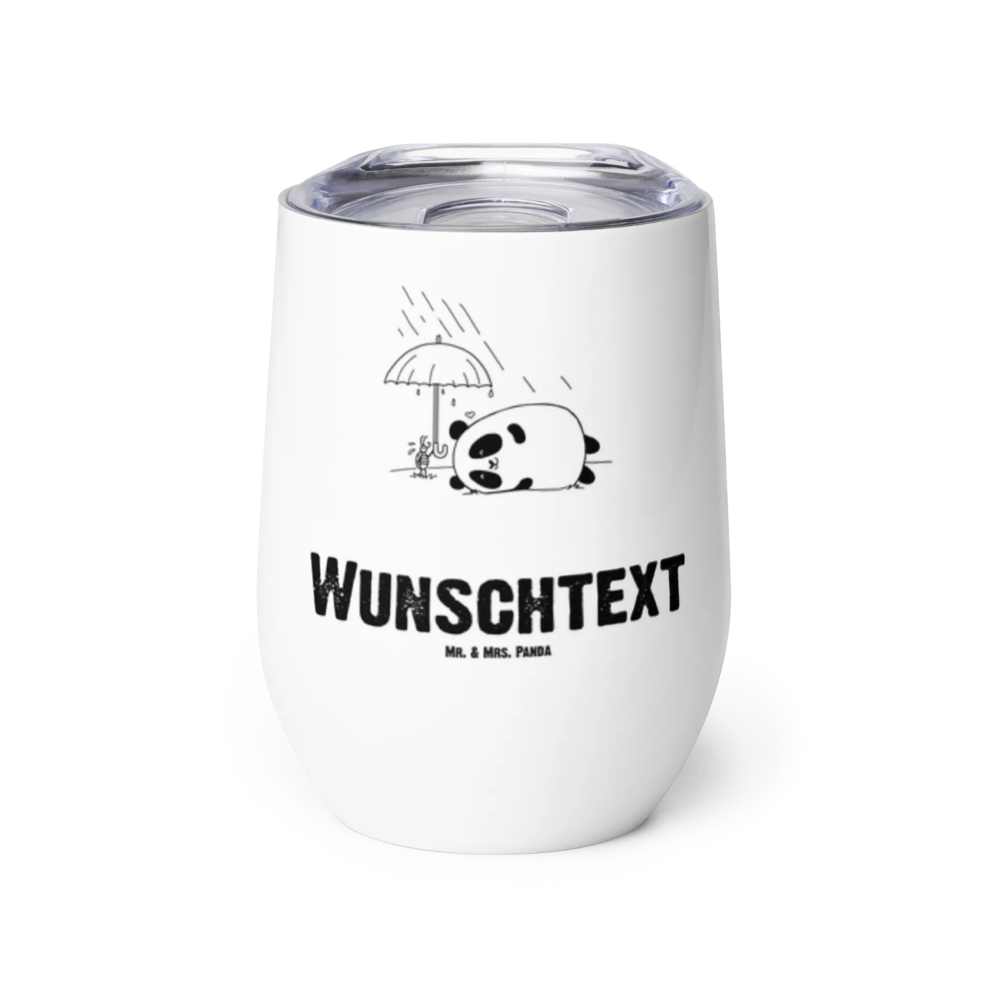 Entdecke den zauberhaften personalisierten Weinbecher aus der Easy & Peasy Kollektion von Mr. & Mrs. Panda! Dieser wunderschöne Becher ist nicht nur ein praktisches Accessoire für deinen Alltag, sondern trägt auch eine ganz besondere Botschaft: "Ich lasse dich nicht im Regen stehen." Das niedliche Motiv zeigt einen süßen Panda, der dankbar ist, dass ein kleiner Marienkäfer ihm einen großen Regenschirm über den Kopf hält.