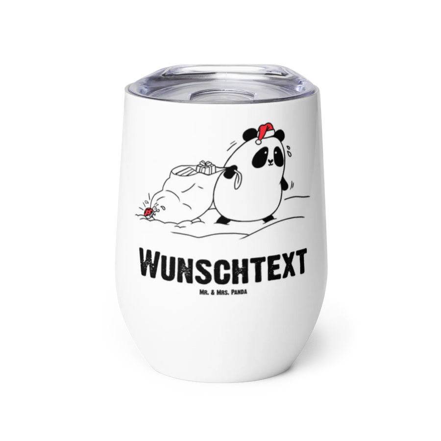 Mit einem niedlichen Motiv eines Pandas, der sich als Nikolaus verkleidet hat, und der tollen Botschaft "Frohe Weihnachten und viel Glück!" bringt dieser Becher Freude und festliche Stimmung in jedes Zuhause. Ob für dich selbst oder als liebevolles Geschenk für Freunde und Familie, dieser personalisierte Weinbecher zeigt, wie viel dir die Beschenkten bedeuten.