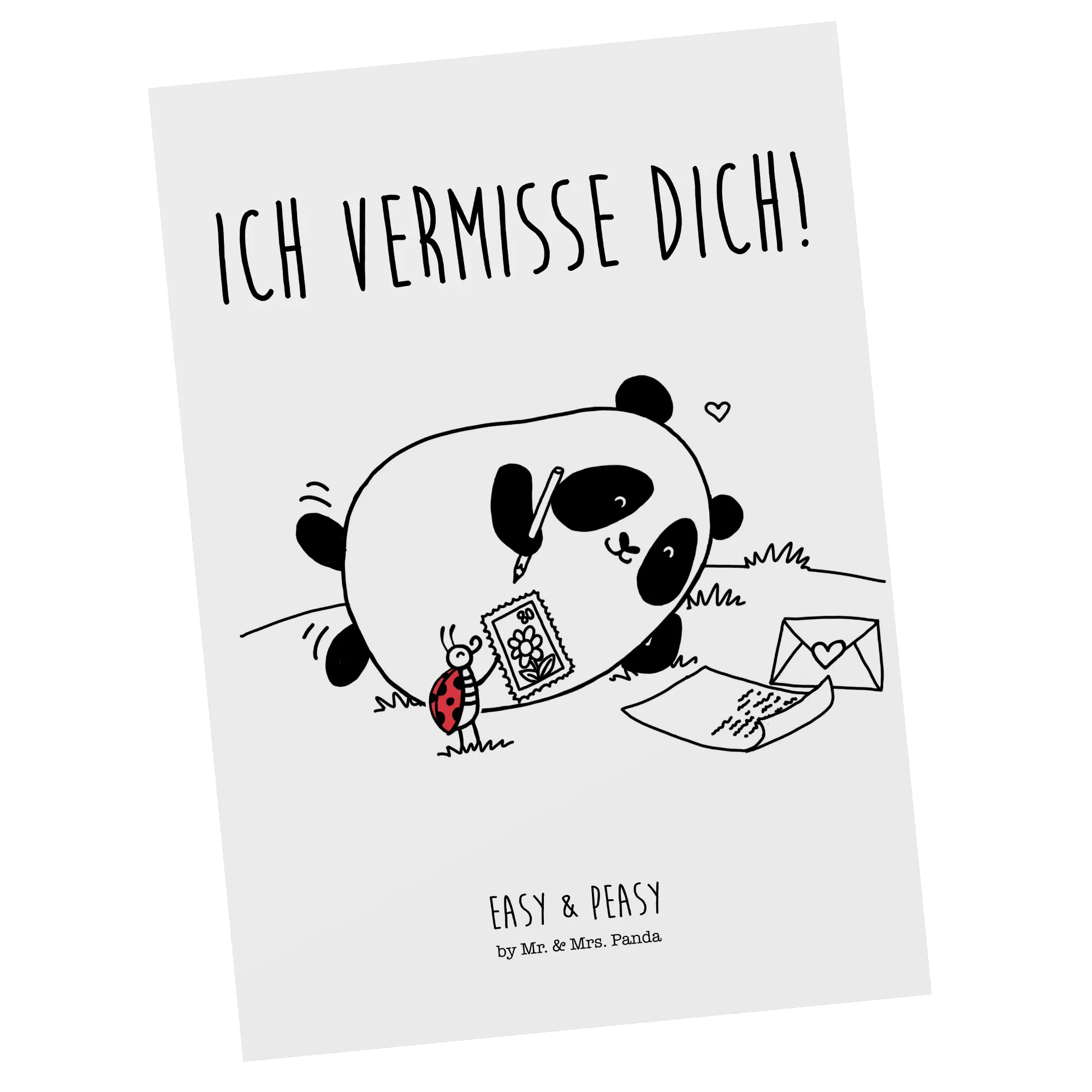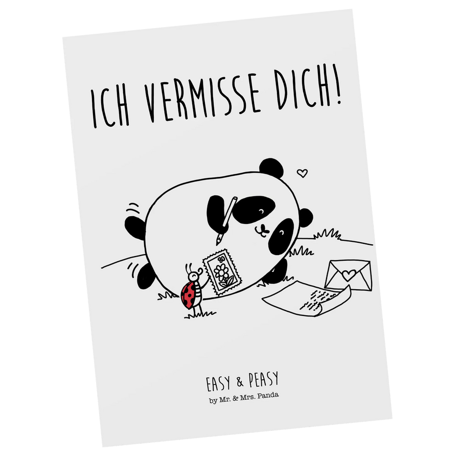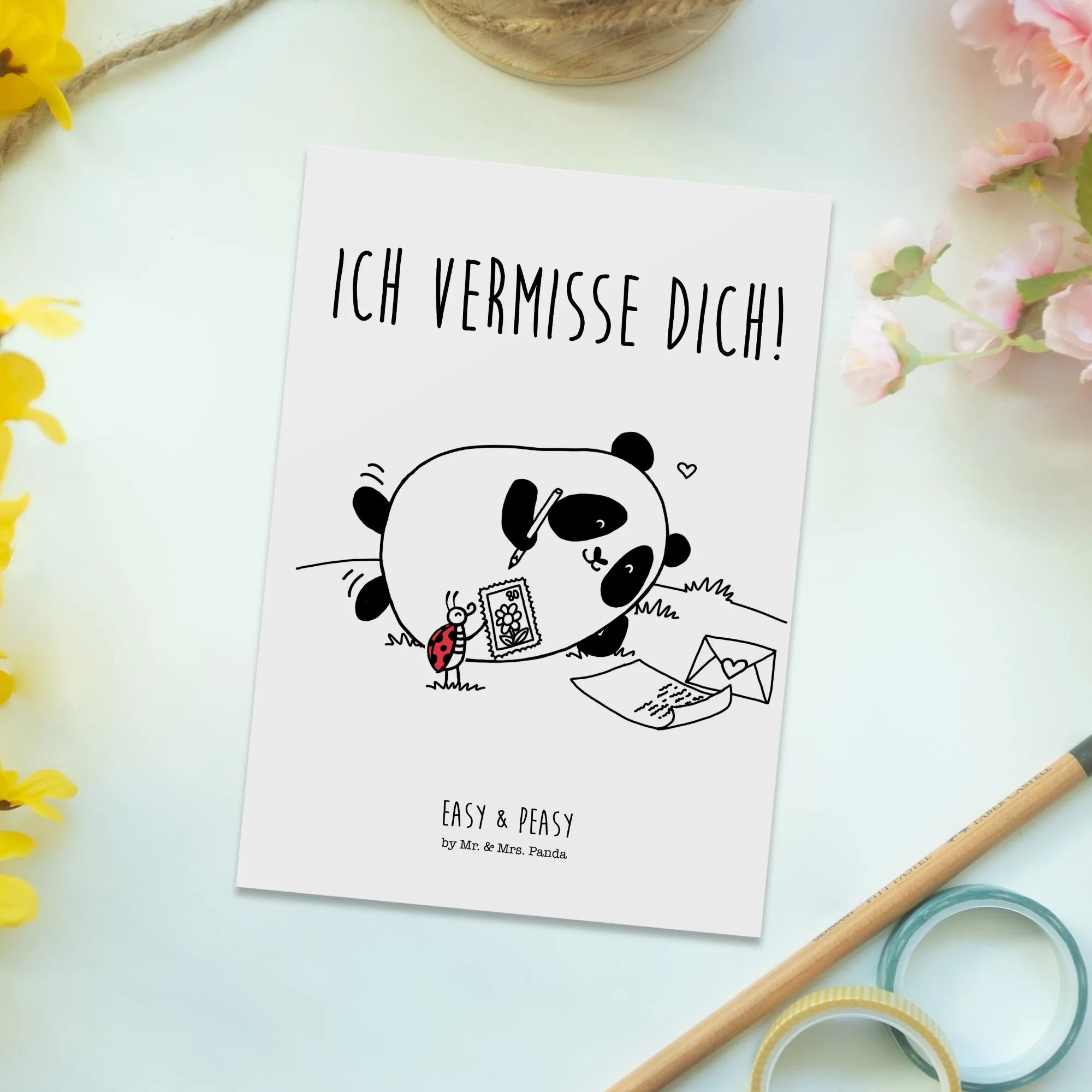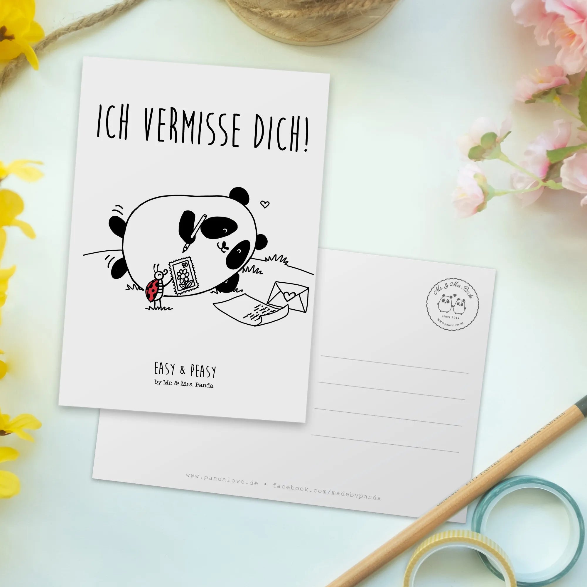 Mr. & Mrs. Panda Postkarte „Easy & Peasy Vermissen“ – Die perfekte Grußkarte, wenn Du jemandem sagen möchtest: Ich vermisse dich! 🐼💌
