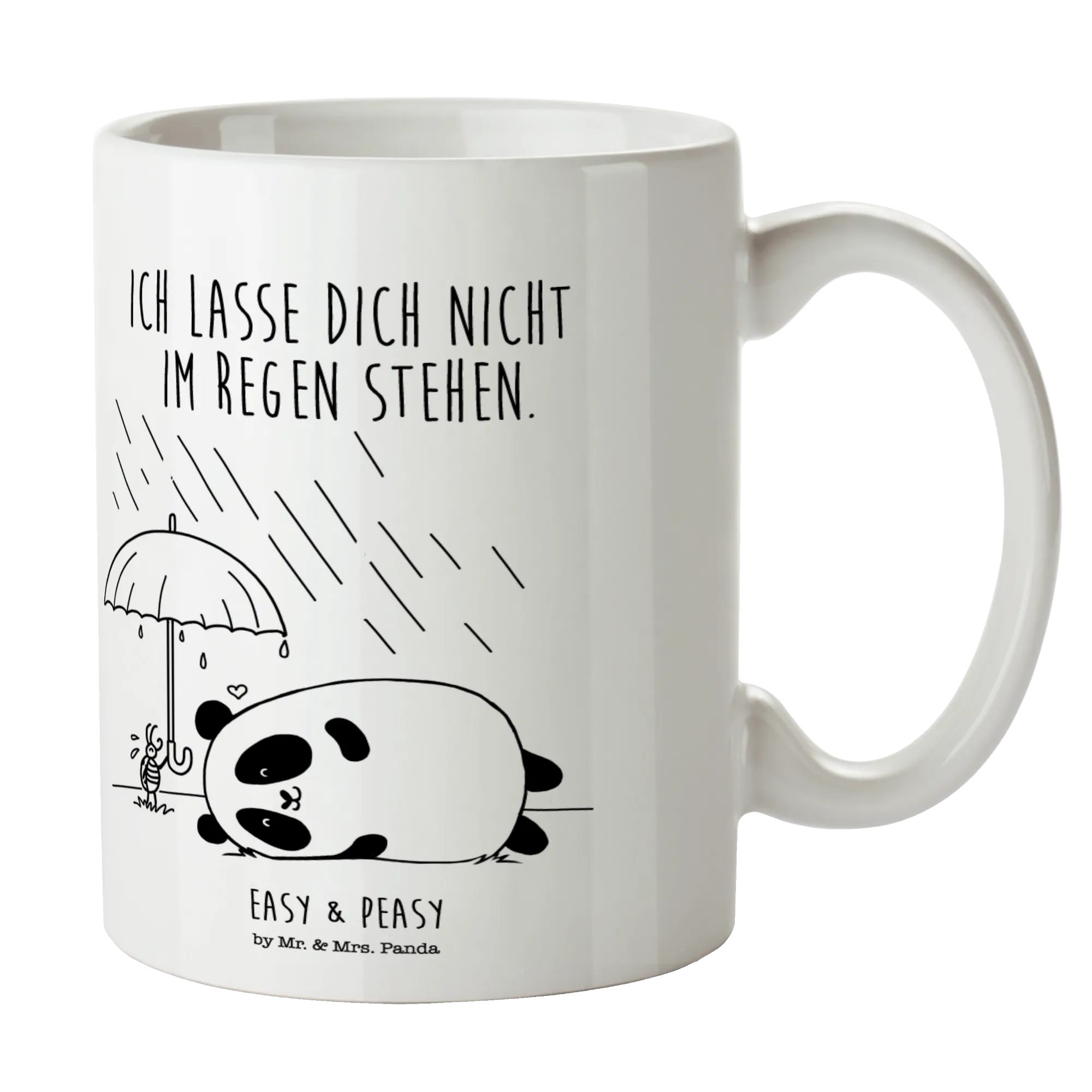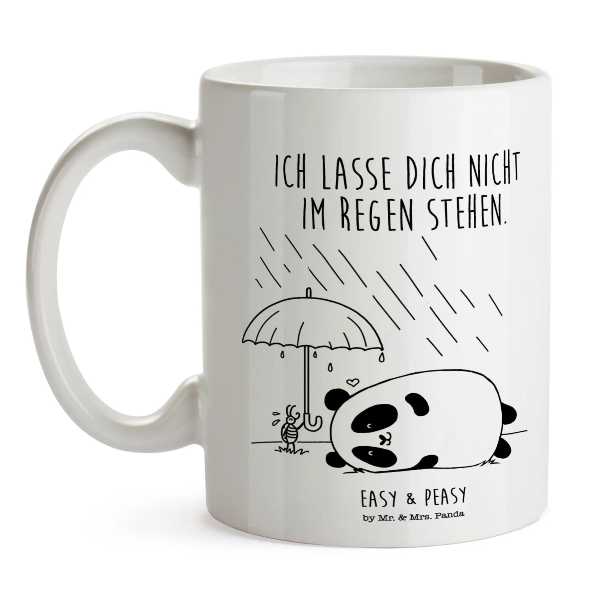 Die Tasse "Easy & Peasy Freundschaft" aus der wundervollen Kollektion Easy & Peasy von Mr. & Mrs. Panda ist mehr als nur eine einfache Kaffeetasse. Sie ist ein perfektes Geschenk für alle, die wissen, was wahre Freundschaft bedeutet. Mit ihrem bezaubernden Motiv eines süßen Pandas, der im Regen liegt und dankbar von einem kleinen Marienkäfer beschützt wird, zaubert diese Tasse jedem ein Lächeln ins Gesicht. Der Slogan "Ich lasse dich nicht im Regen stehen" wird zum Motto für Deine Verbindung zu Freunden und geliebten Menschen.