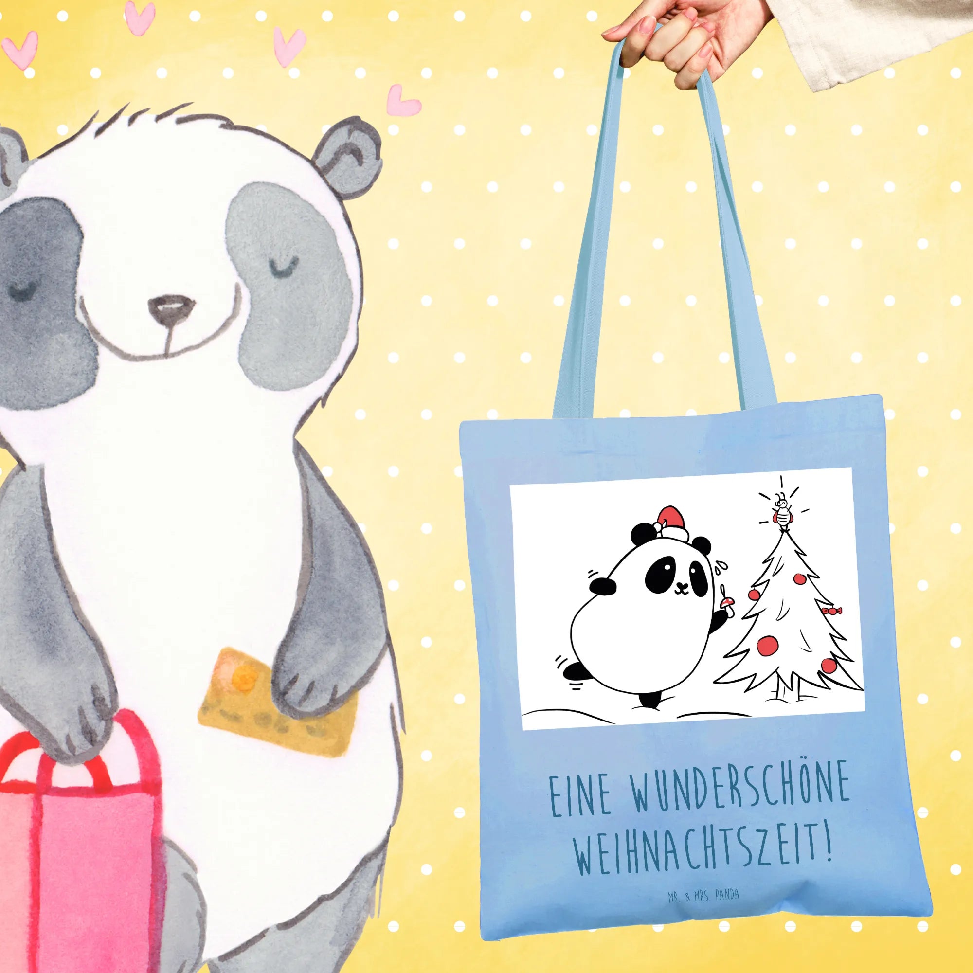 Erlebe die fröhliche Tragetasche von Mr. & Mrs. Panda – dein perfekter Einkaufspartner, der immer ein Lächeln auf dein Gesicht zaubert!