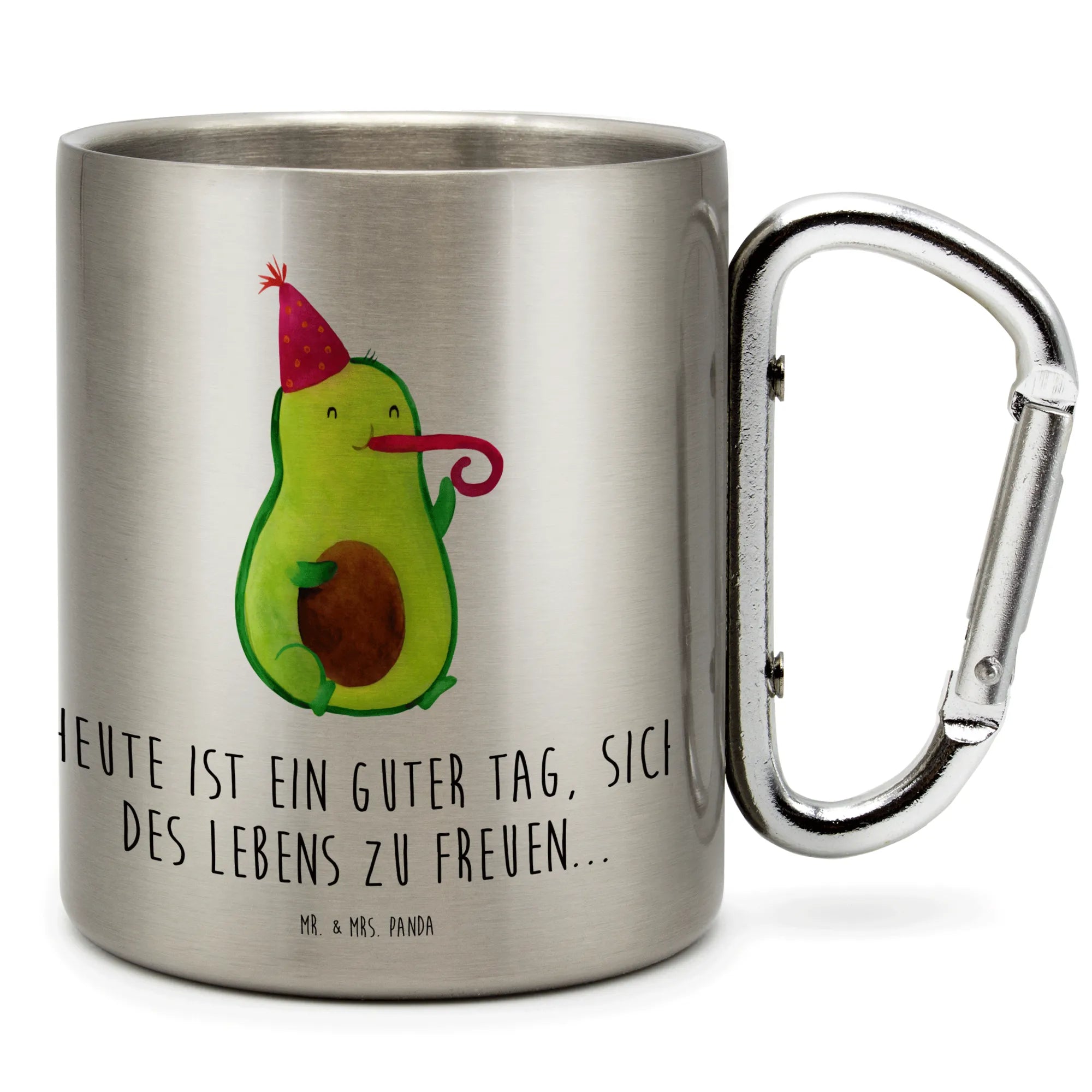 Bist du auf der Suche nach dem perfekten Geschenk für einen besonderen Menschen oder einen Anlass? Dann ist der Edelstahlbecher mit dem niedlichen Motiv der Avocado Partyhupe von Mr. & Mrs. Panda genau das Richtige für dich! Dieser wunderschöne und robuste Edelstahlbecher ist nicht nur ein echter Hingucker, sondern auch unglaublich praktisch.