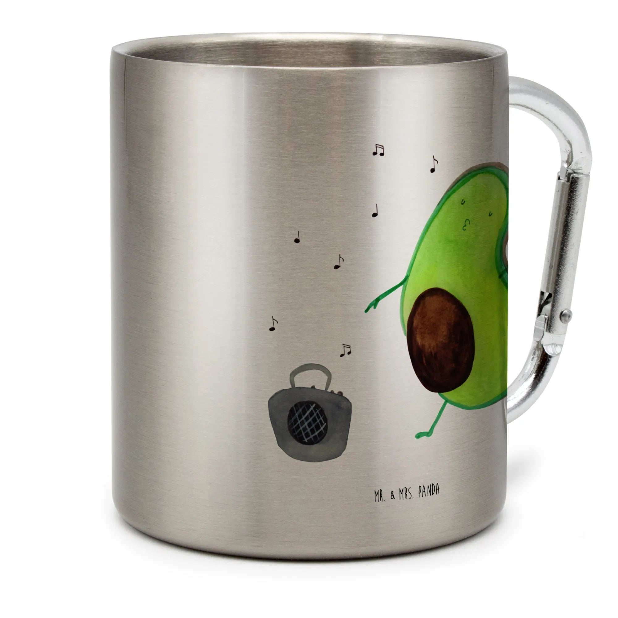 Der Edelstahlbecher "Avocado tanzt" von Mr. & Mrs. Panda ist der perfekte Begleiter für alle, die das Leben in vollen Zügen genießen möchten. Mit seinem fröhlichen Design – einer niedlichen Avocado, die zu den Beats eines Ghettoblasters tanzt – bringt dieser Becher eine Portion Optimismus und gute Laune in jede Outdoor-Aktivität oder Campingausflug.