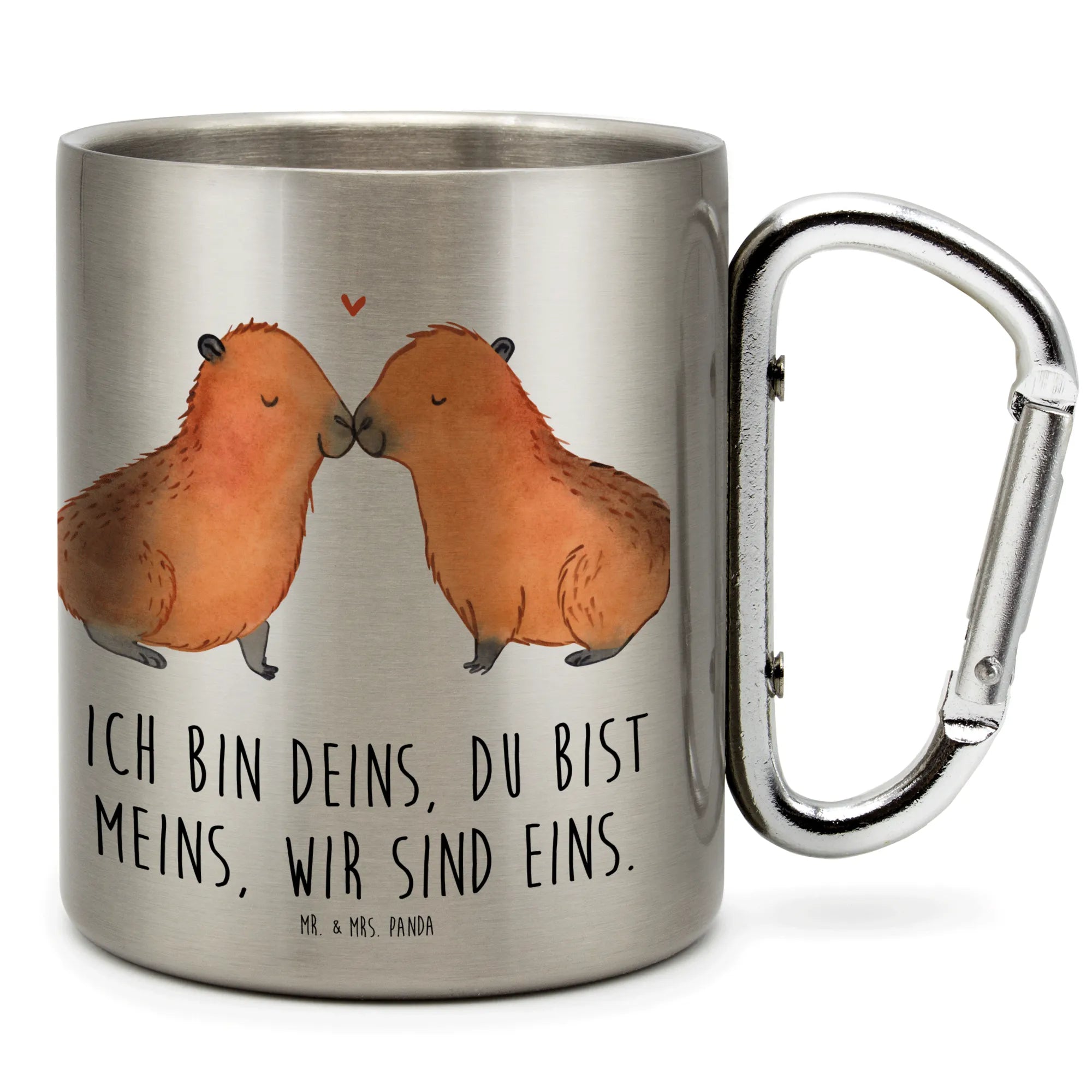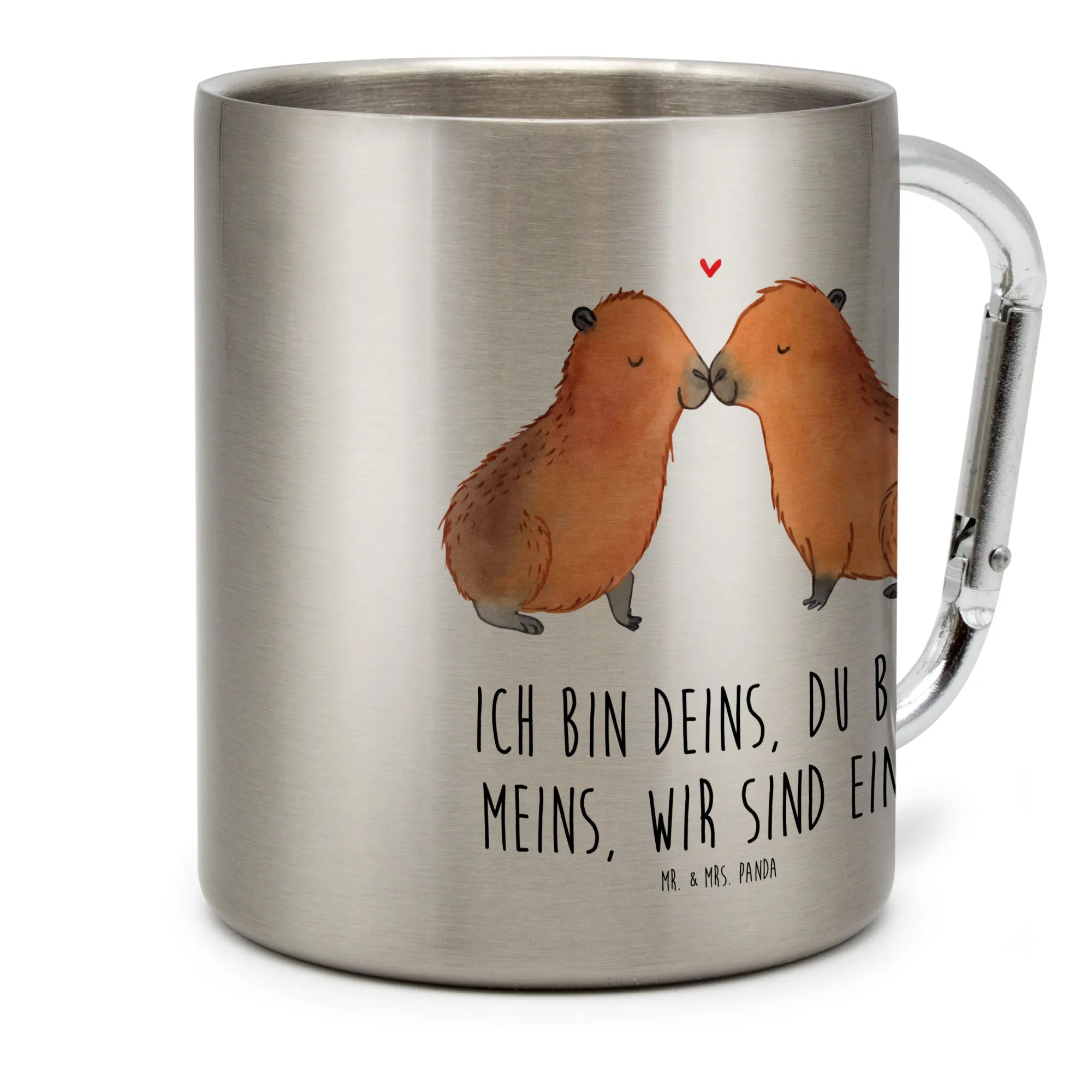 Du suchst nach dem perfekten Geschenk für deinen Partner oder die beste Freundin? Dann ist unser Edelstahlbecher mit dem bezaubernden Motiv "Capybara Liebe" von Mr. & Mrs. Panda genau das Richtige für dich! Dieser wunderschöne und robuste Edelstahlbecher ziert ein handgezeichnetes Motiv von zwei kuschelnden Capybaras, die sich liebend küssen - ein wahrhaft romantisches Geschenk! Deine Liebsten werden begeistert sein!