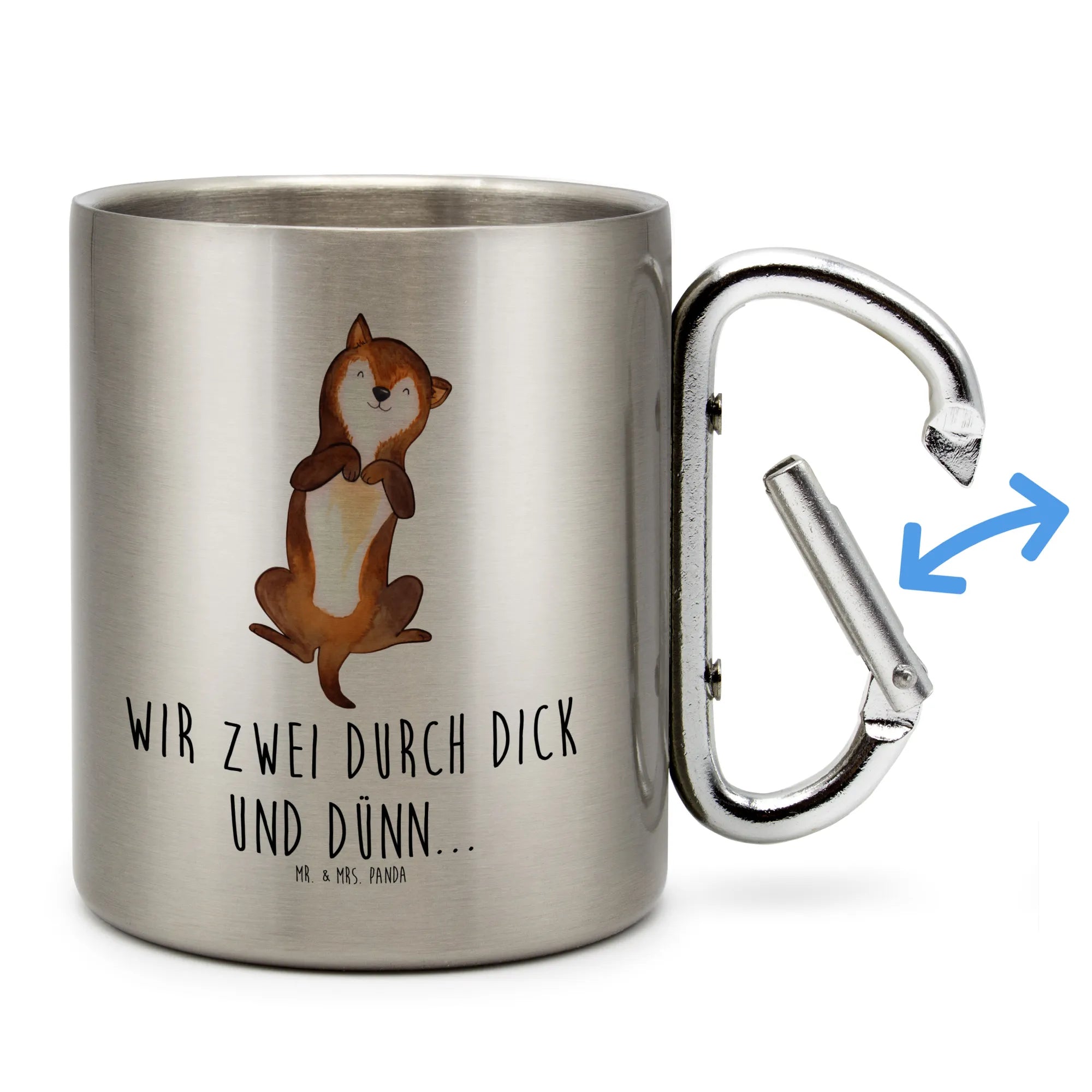Der integrierte Karabinerhaken macht es einfach, den Becher am Rucksack zu befestigen oder an der Gürtelschlaufe zu tragen. Die liebevollen Motive aus unserer Hunde Kollektion sind nicht nur ein richtiger Blickfang, sondern auch ein tolles Geschenk für deine Freunde und Familie, die Hunde lieben.