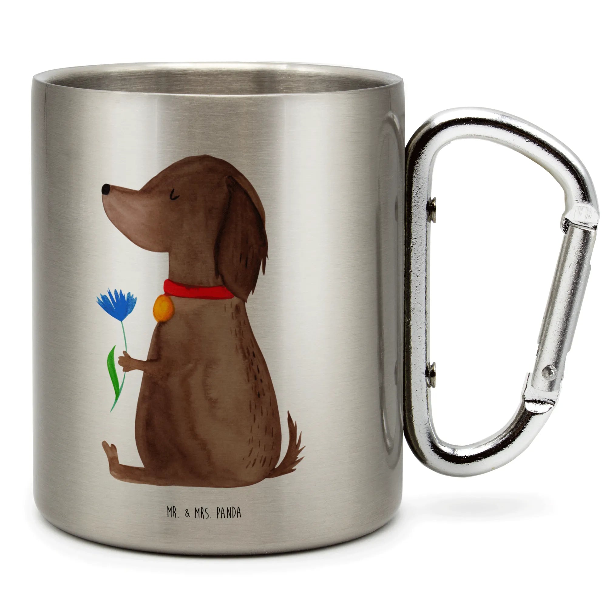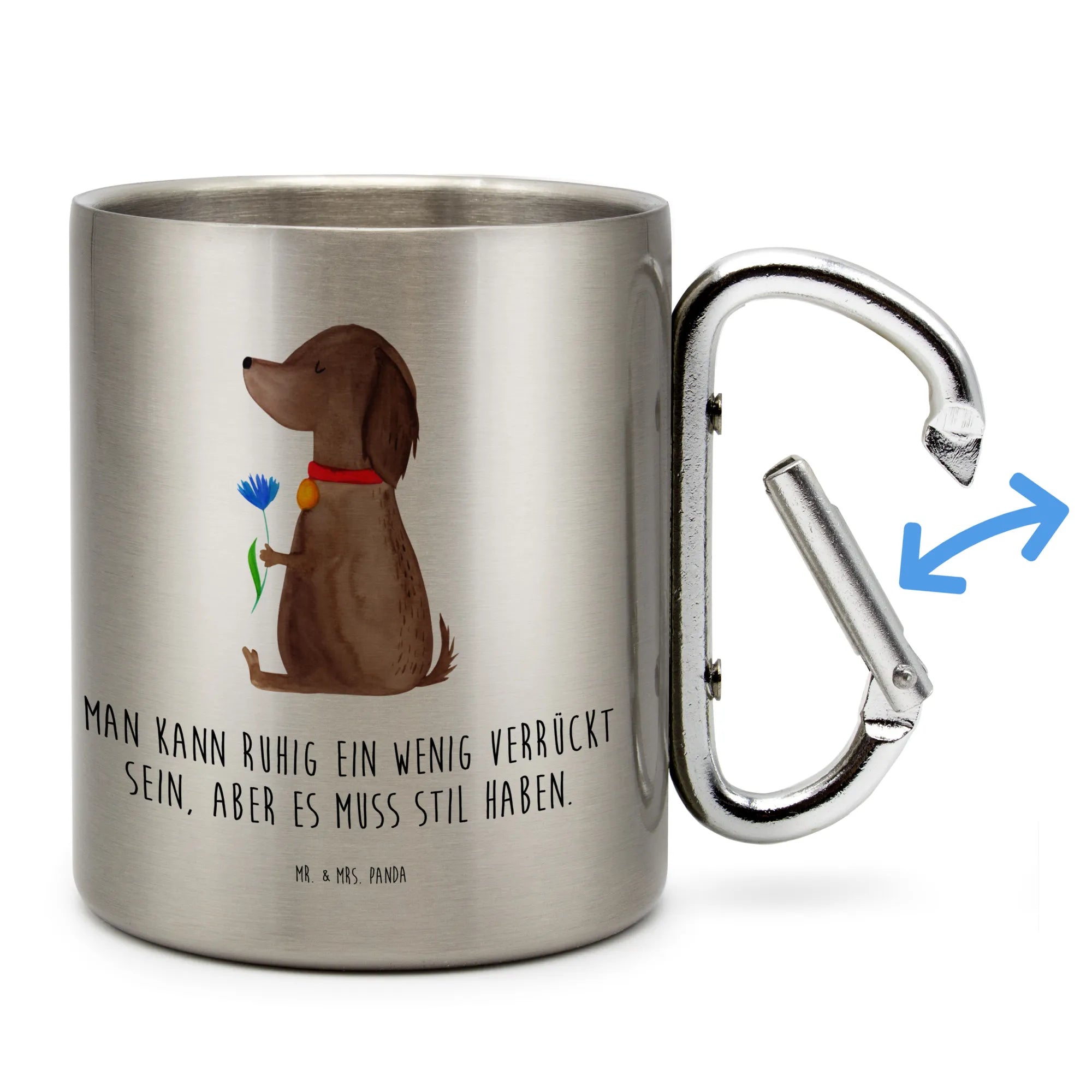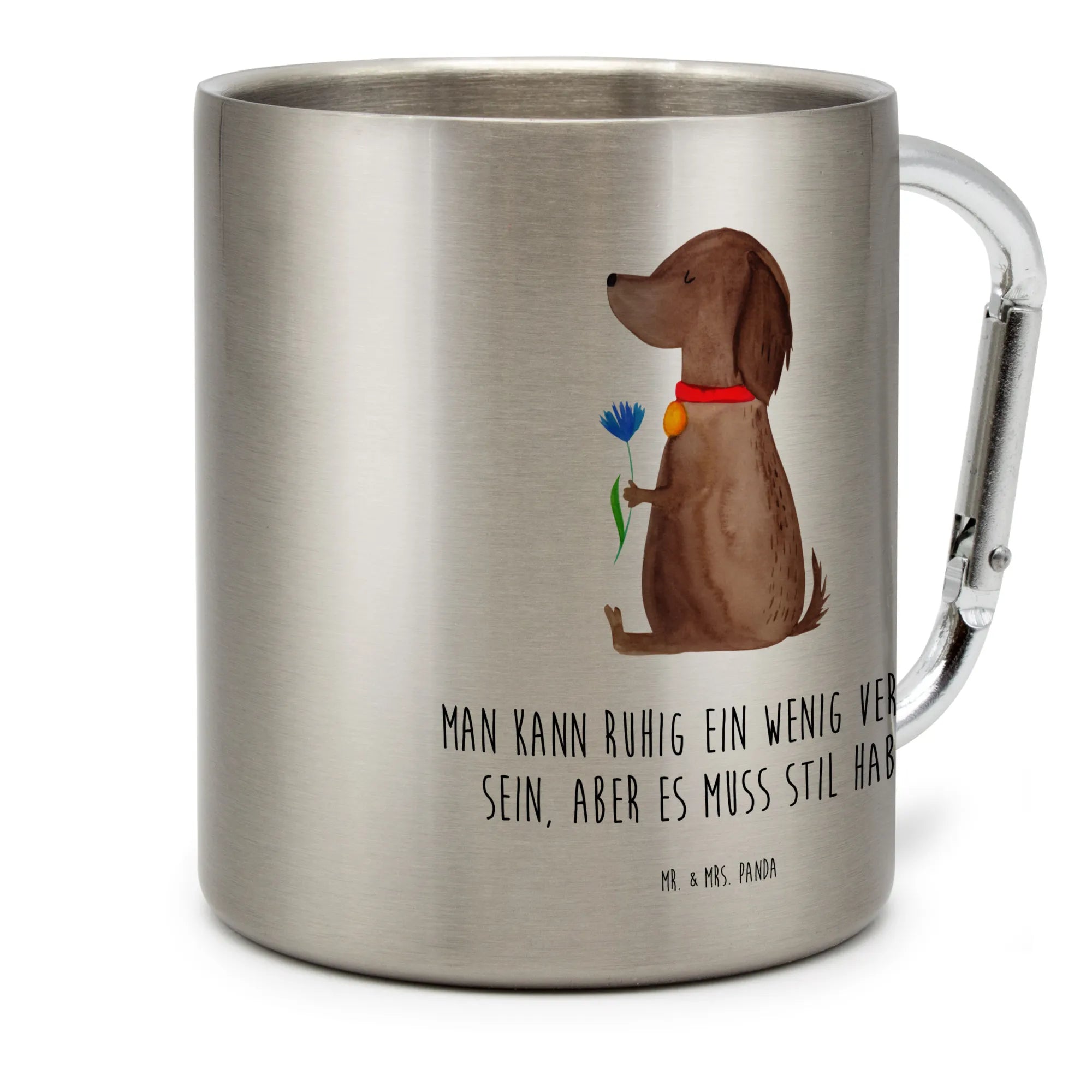 Du bist auf der Suche nach dem perfekten Geschenk für einen Hundeliebhaber? Dann ist der Edelstahlbecher "Hund Blume" aus der Hunde Kollektion von Mr. & Mrs. Panda genau das Richtige! Dieser wunderschöne und robuste Edelstahlbecher ist nicht nur ein praktischer Begleiter für alle Outdoor-Aktivitäten wie Camping oder Wandern, sondern auch ein Ausdruck der Liebe zu Hunden. Mit einer schönen Illustration einer süßen Hündin, die eine Blume im Fell trägt, bringt dieser Becher Freude in jeden Tag. Besonders praktisch ist der Karabinerhaken, der es dir ermöglicht, den Becher an deiner Gürtelschlaufe oder am Rucksack zu befestigen - so hast du ihn immer griffbereit!