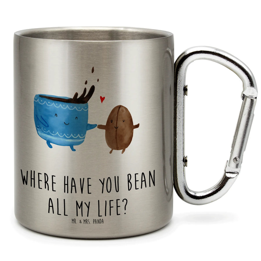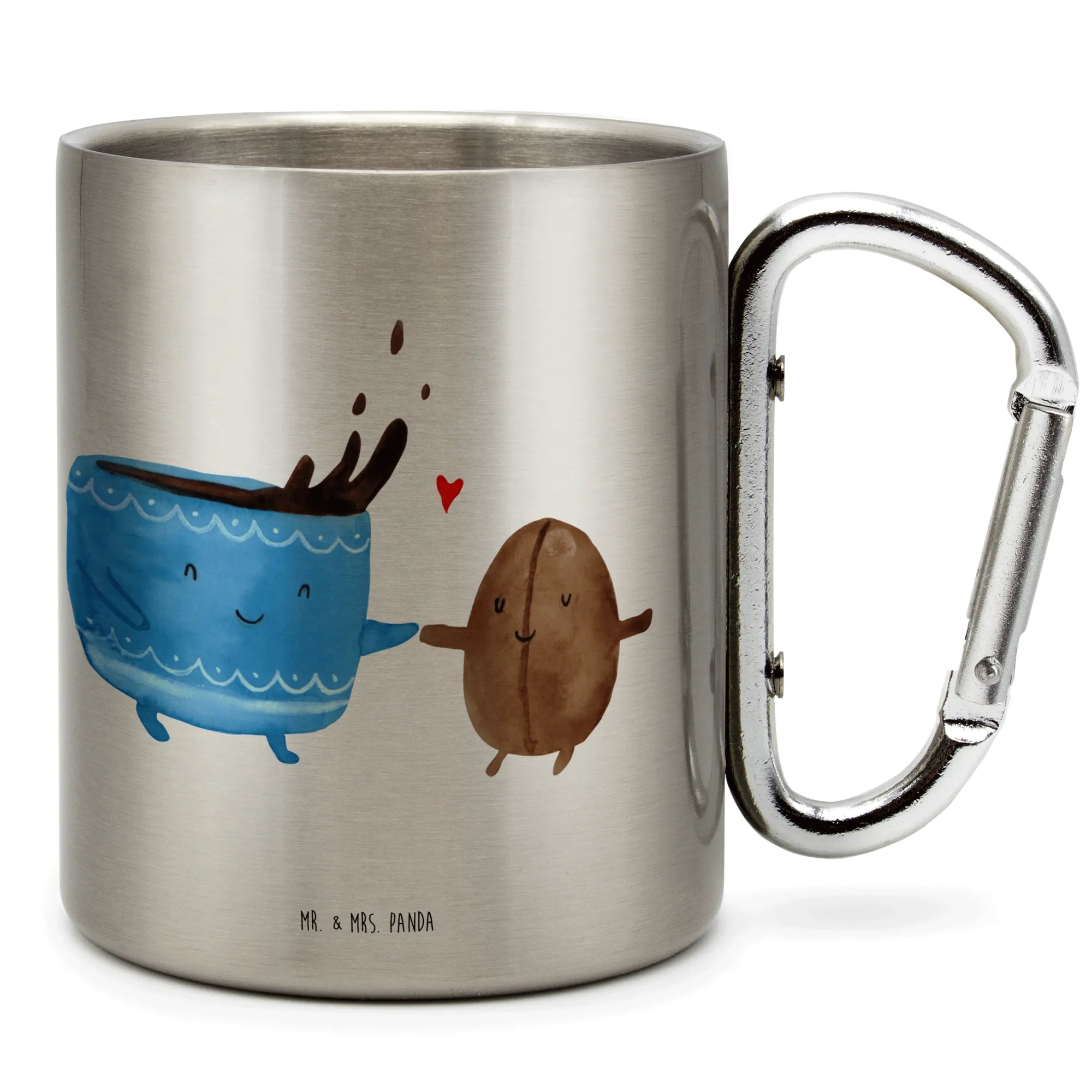 Entdecke den zauberhaften Edelstahlbecher von Mr. & Mrs. Panda mit dem fröhlichen Kaffee Bohne Motiv – ideal für alle Kaffee-Liebhaber!