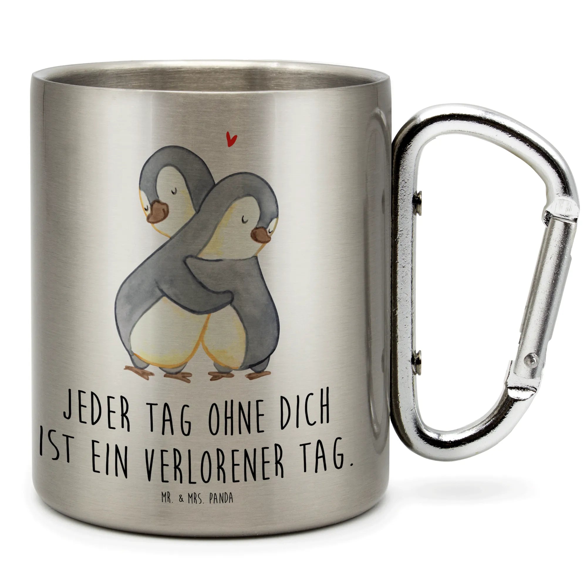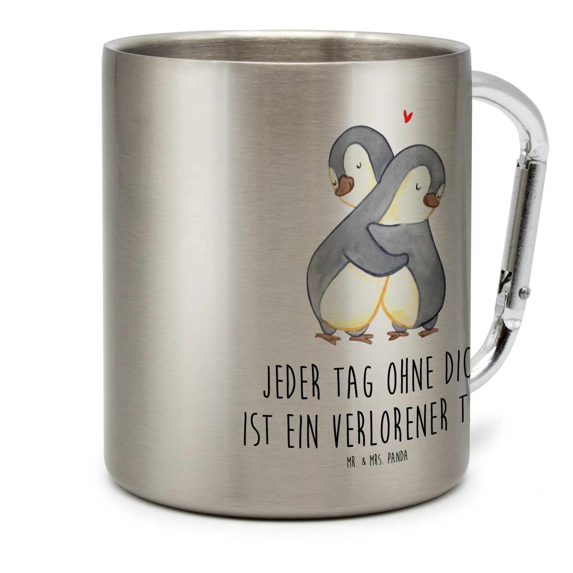 Egal, ob als Valentinstagsgeschenk, für den Jahrestag oder einfach so, dieser Becher kommt immer gut an. Das bezaubernde Motiv zeigt zwei Pinguine, die sich liebevoll umarmen, ein Bild der Zuneigung, das Herzen höherschlagen lässt. Über den Pinguinen schwebt ein kleines rotes Herz, was die innige Verbindung zwischen zwei Menschen symbolisiert.