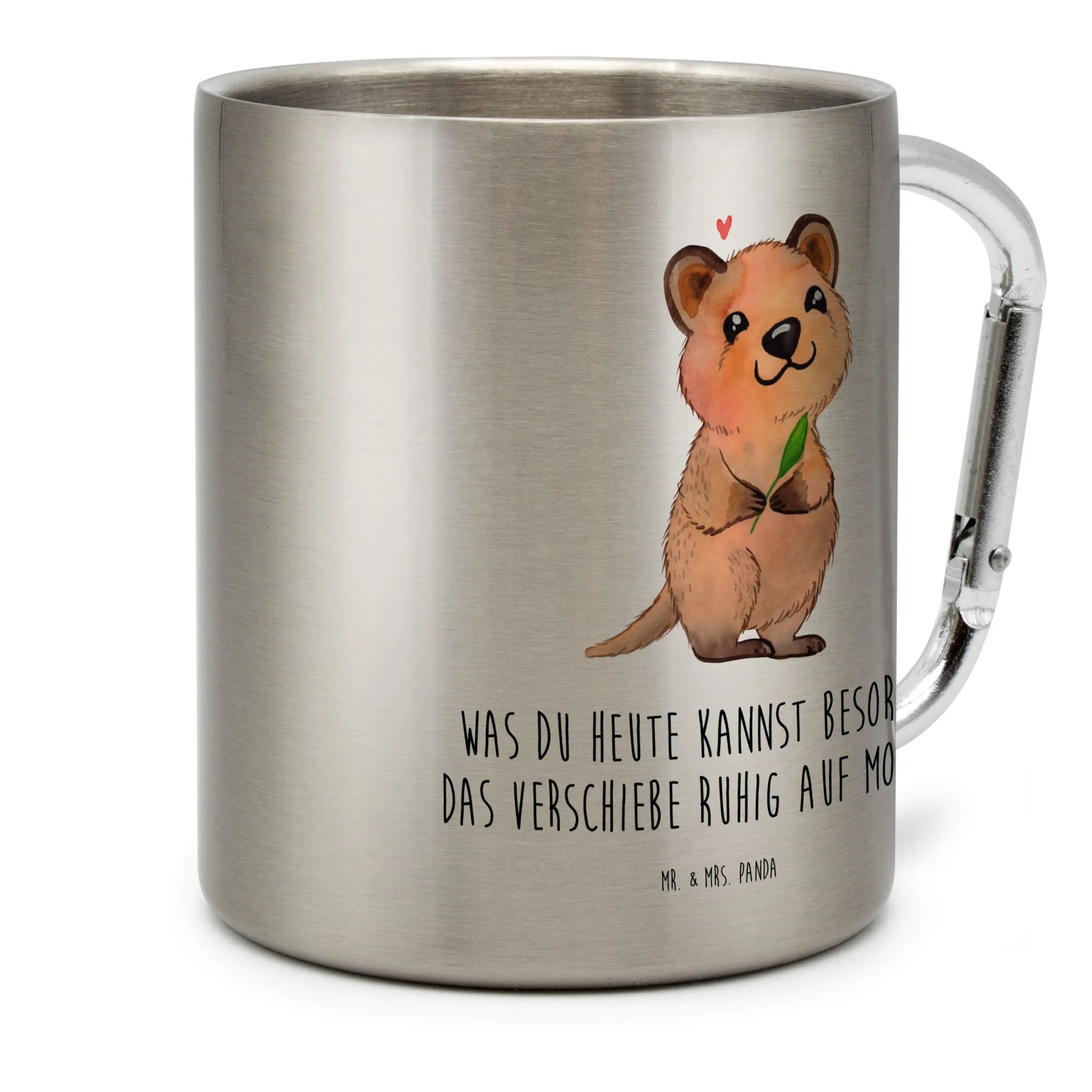 Der Edelstahlbecher "Quokka Happy" aus der Kollektion Small World von Mr. & Mrs. Panda ist der perfekte Begleiter für jeden Outdoor-Liebhaber! Egal ob beim Camping, Wandern oder einem gemütlichen Picknick im Park, dieser wunderbare und robuste Edelstahlbecher bringt nicht nur gute Laune mit sich, sondern überzeugt auch durch seine Funktionalität.