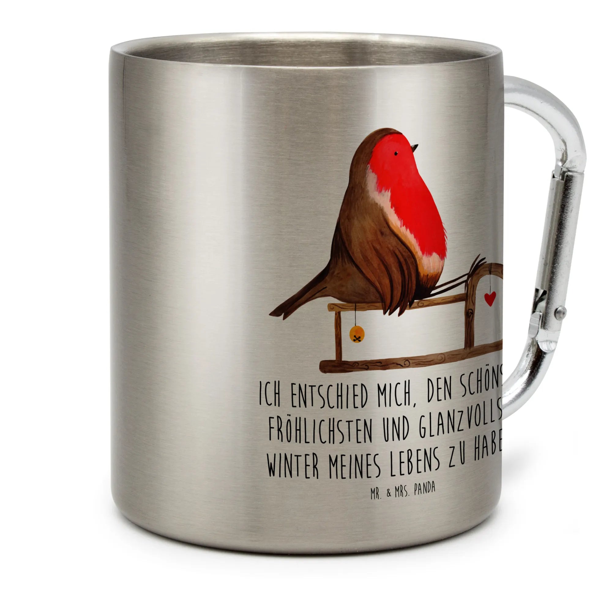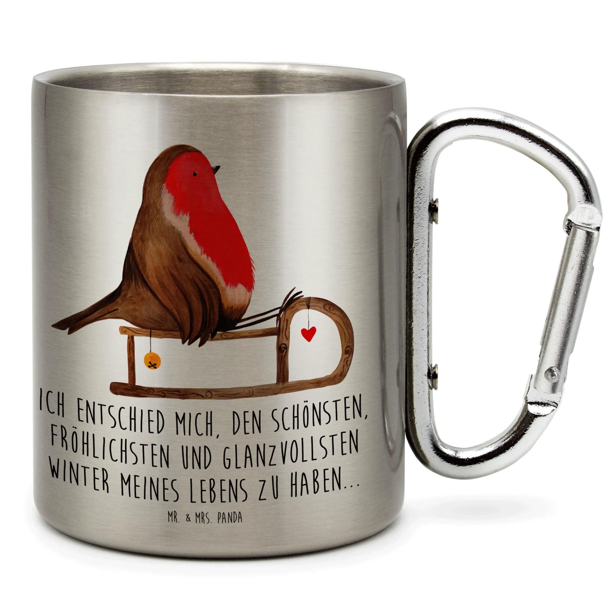 Edelstahlbecher Rotkehlchen Schlitten - mit Spruch