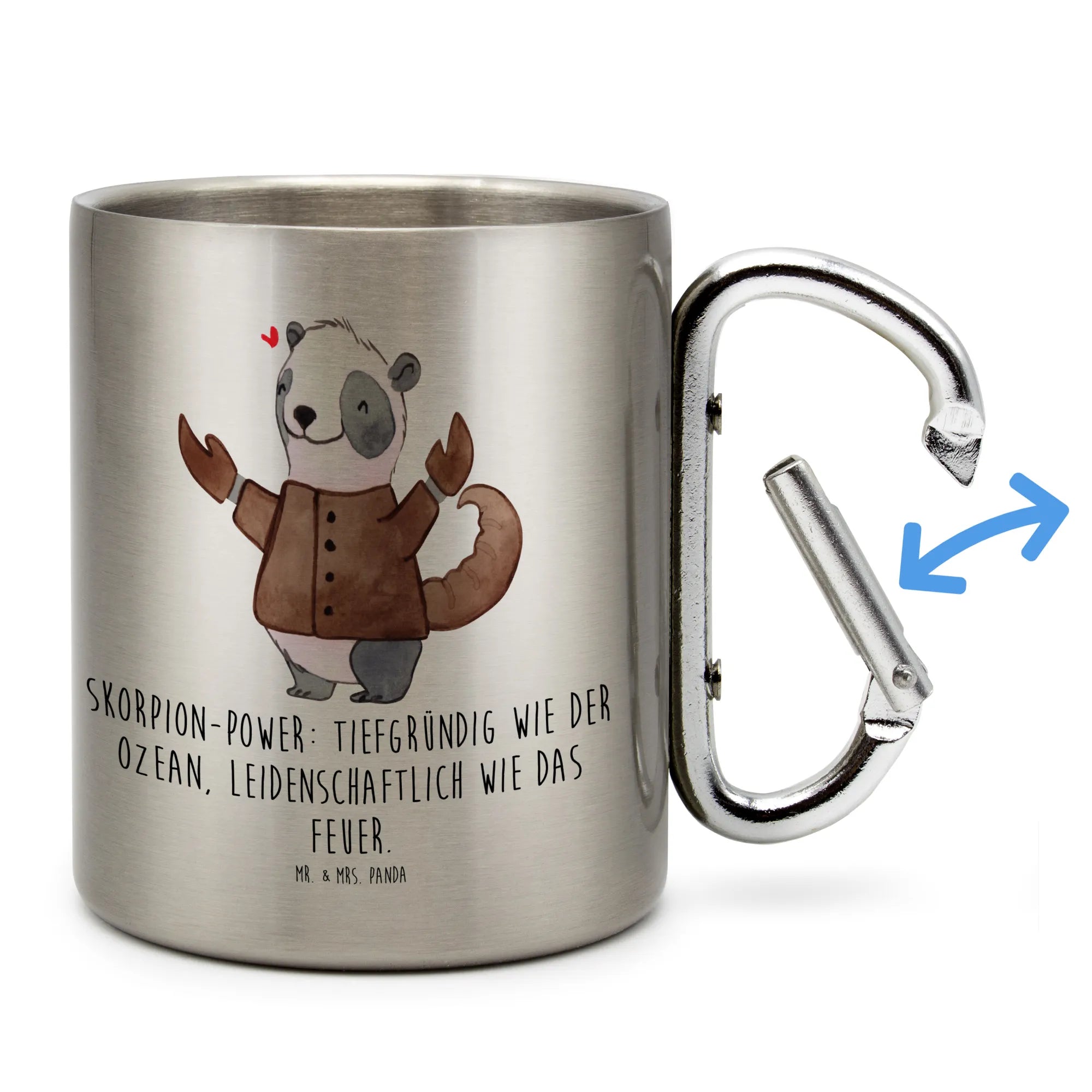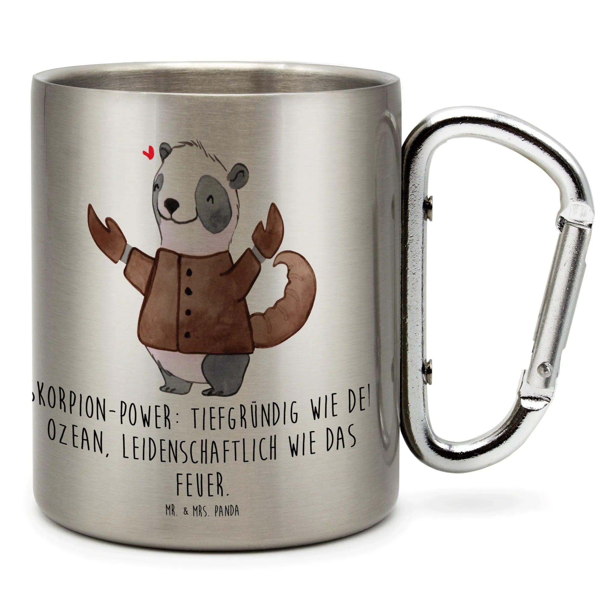 Edelstahlbecher Skorpion Astrologie - die perfekte Geschenkidee für alle, die unter dem Sternzeichen Skorpion geboren sind! Dieser wunderbare Edelstahlbecher von Mr. & Mrs. Panda vereint Funktionalität und liebevolles Design. Mit einem spritzigen Motiv, das einen süßen Panda zeigt, der stolz in seiner Skorpion-Verkleidung strahlt, wird er zum idealen Begleiter für alle Outdoor-Abenteuer. Ob beim Campen, Wandern oder einfach nur beim entspannten Kaffeekränzchen im Garten – dieser Becher bringt Freude in jeden Moment!