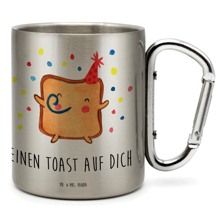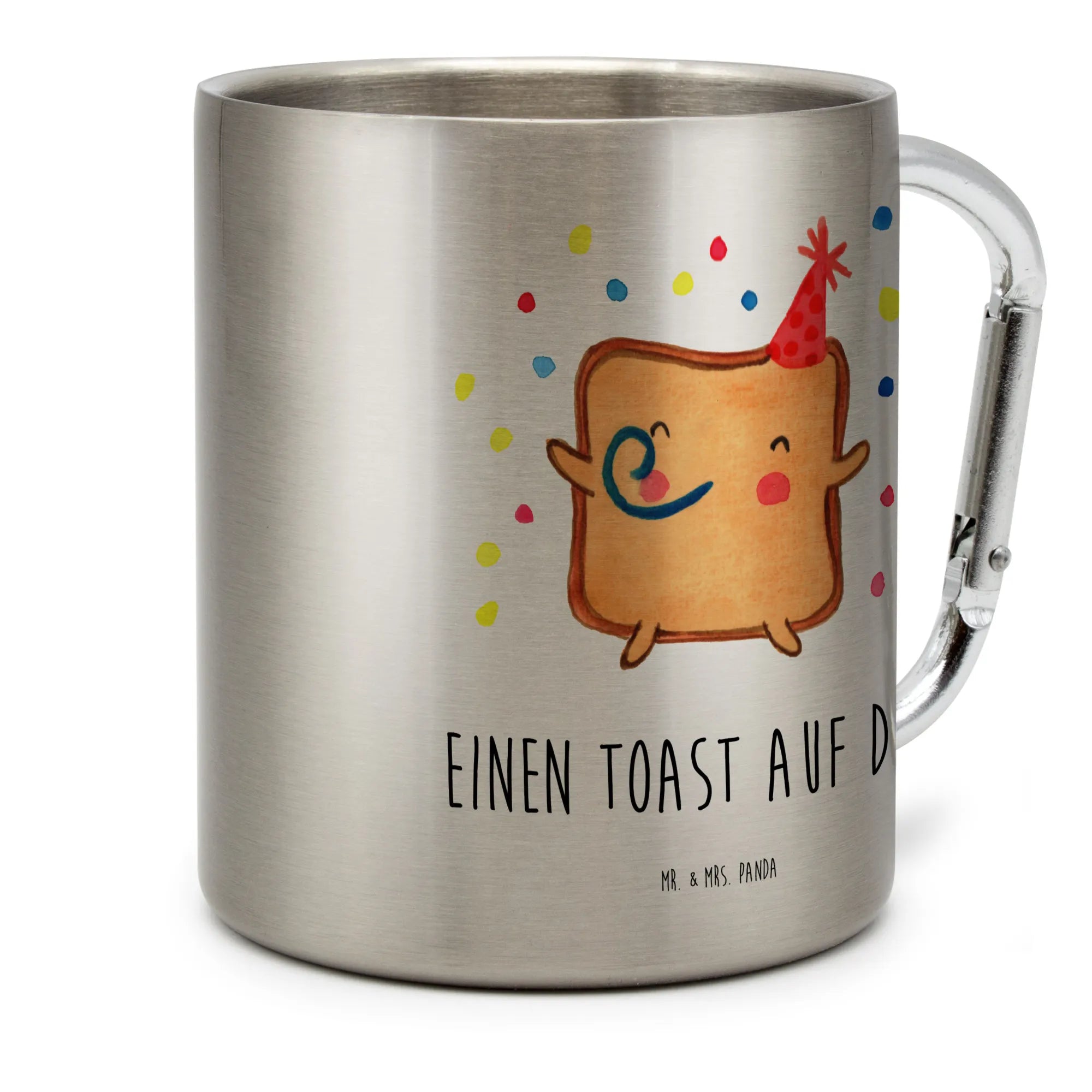 Du suchst nach dem perfekten Geschenk für deine Liebsten oder einen besonderen Anlass? Dann ist der Edelstahlbecher "Toast Party" von Mr. & Mrs. Panda die ideale Wahl! Dieser wunderschöne und robuste Edelstahlbecher vereint Praktikabilität mit einem liebevollen Design. Die lustige Motive eines menschlich gezeichneten Toastes mit einem Partyhut, umringt von buntem Konfetti, bringt Freude und gute Laune. Ob zum Valentinstag, Jahrestag oder für einfach zwischendurch – mit dem Slogan "Einen Toast auf dich!" zeigst du, wie sehr du deinen Partner, Freund oder deine Freundin schätzt.