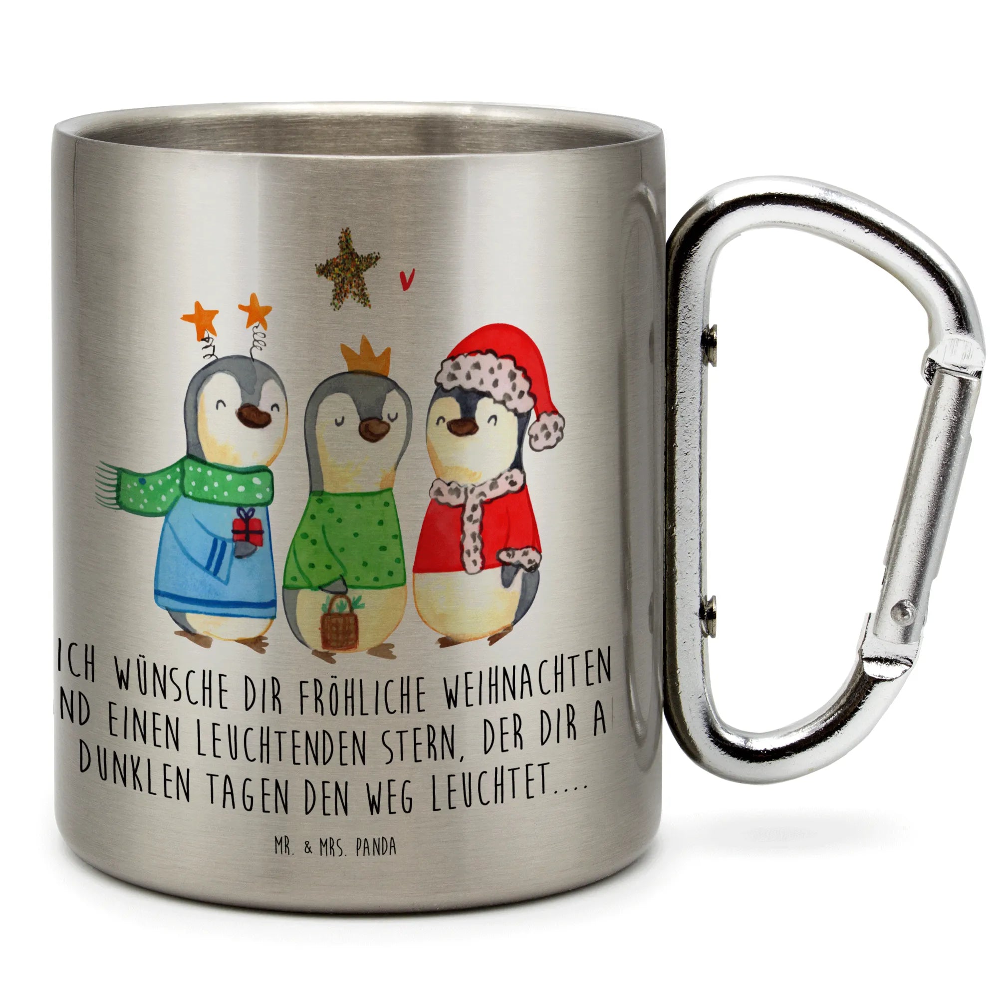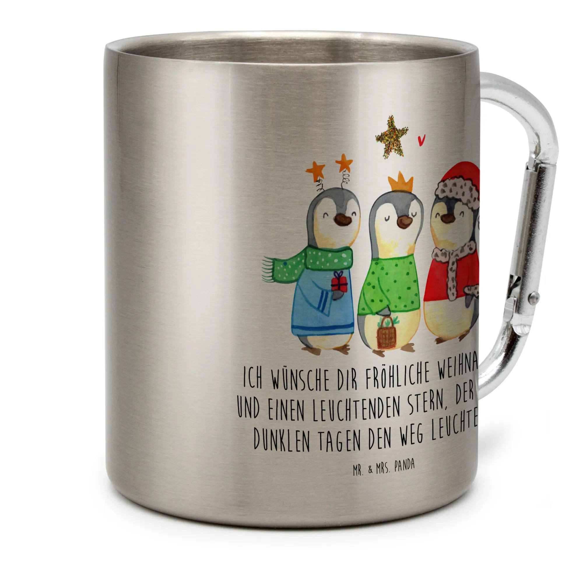 Dieser wunderschöne Edelstahlbecher von Mr. & Mrs. Panda ist nicht nur ein praktischer Begleiter für deine Outdoor-Abenteuer, sondern auch ein liebevolles Geschenk für die Winter- und Weihnachtszeit. Mit dem bezaubernden Motiv 'Winterzeit Heilige drei Könige' und dem herzlichen Slogan 'Ich wünsche dir fröhliche Weihnachten und einen leuchtenden Stern, der dir an dunklen Tagen den Weg leuchtet...' zaubert er ein Lächeln auf dein Gesicht.