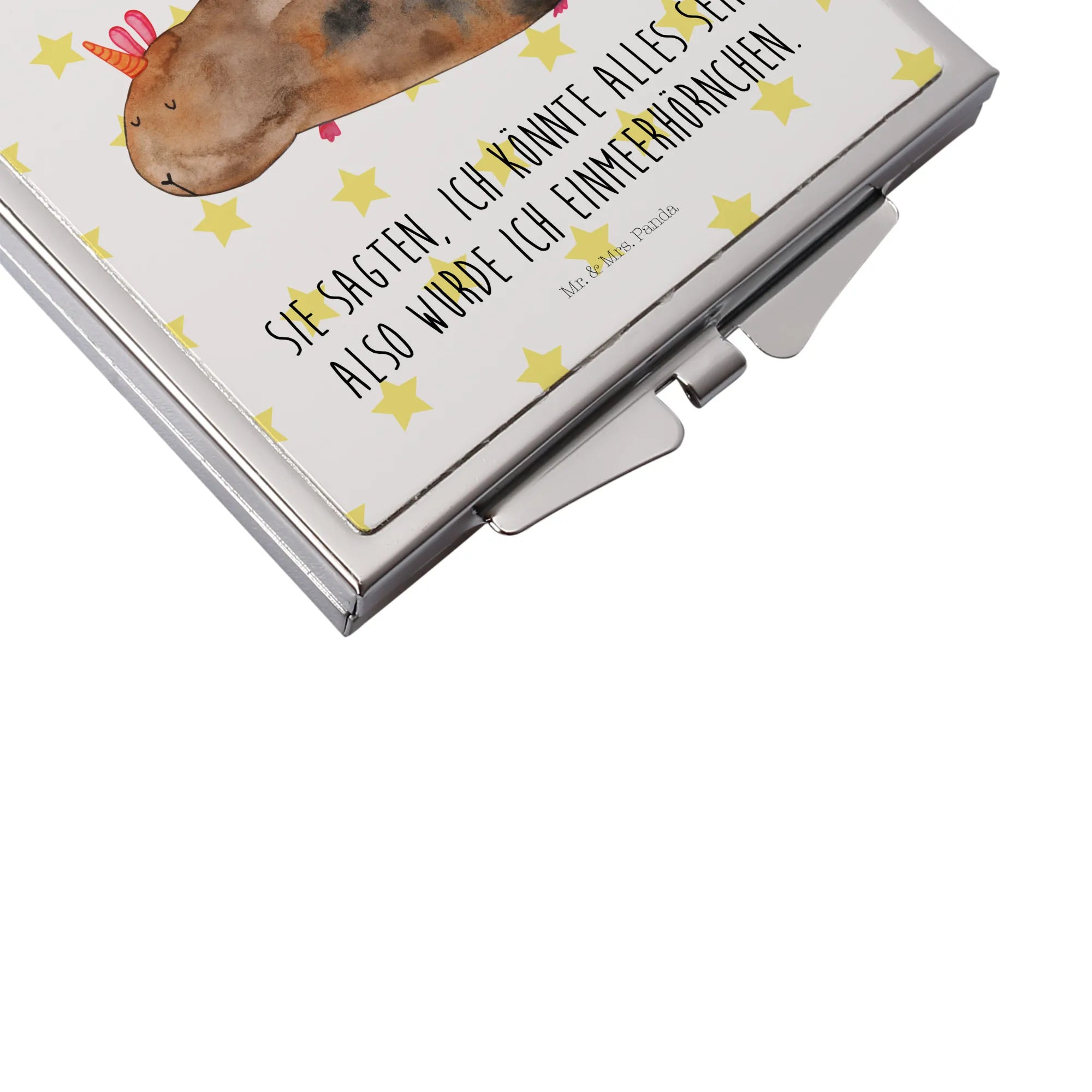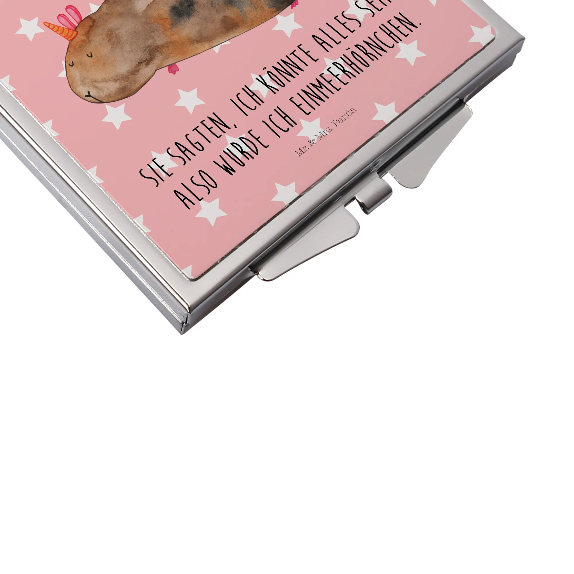 Der quadratische Handtaschenspiegel von Mr. & Mrs. Panda ist ein echtes Must-Have für alle, die Stil und Funktionalität lieben! Er ist 60 mm x 60 mm x 8 mm groß und passt somit perfekt in jede Handtasche. Aus einer hochwertigen Glasplatte gefertigt und mit Aluminium veredelt, ist dieser Spiegel nicht nur praktisch, sondern auch ein echter Hingucker. Die einzigartigen Designs und Sprüche von Mr. & Mrs. Panda bringen Freude in deinen Alltag und sorgen dafür, dass du immer gut aussiehst. Der Klappverschluss schützt den Spiegel und macht ihn zu einem idealen Begleiter auf Reisen oder im Alltag. Egal, ob du dein Make-up auffrischen oder einfach nur dein Spiegelbild überprüfen möchtest, dieser Handtaschenspiegel wird dir treu zur Seite stehen. Pflege ihn leicht mit einem feuchten Tuch und schon ist er wieder einsatzbereit. Ein perfektes Geschenk für Freunde und Familie, die das Besondere lieben!