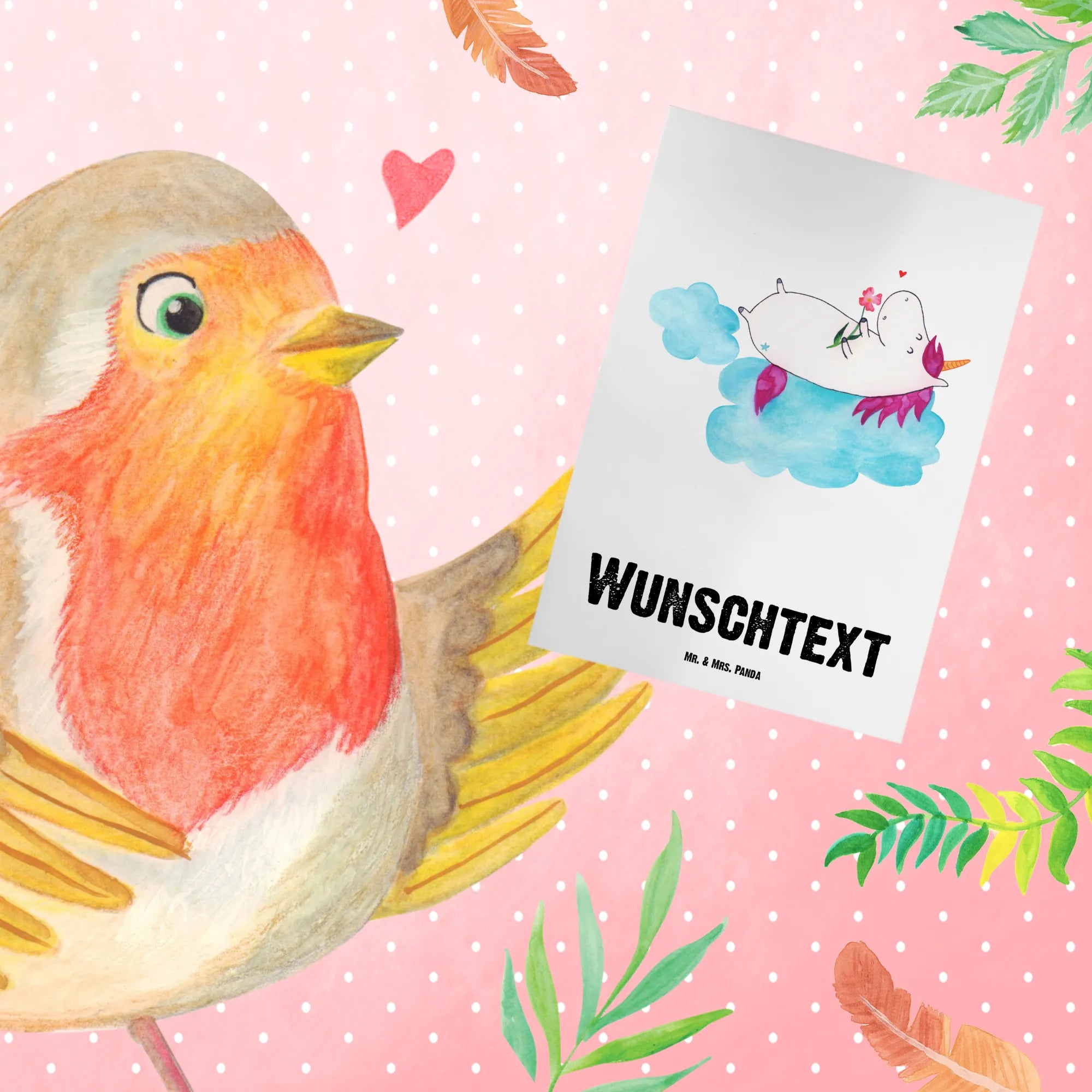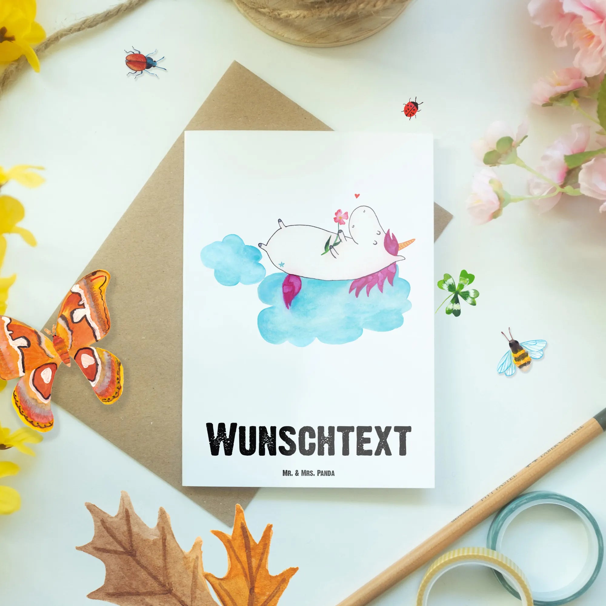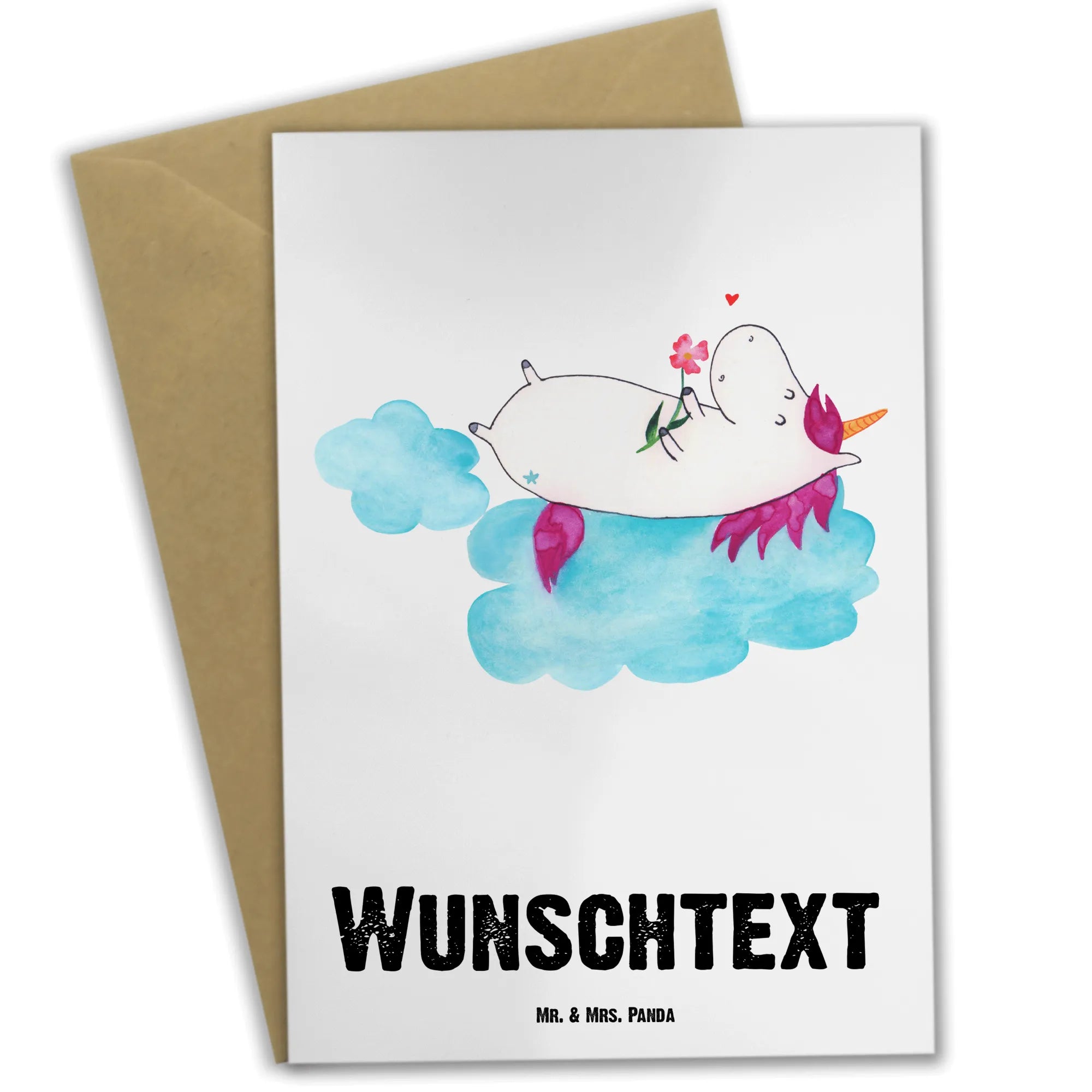 Personalisierte Grußkarte Einhorn verliebt auf Wolke – Mr. & Mrs. Panda