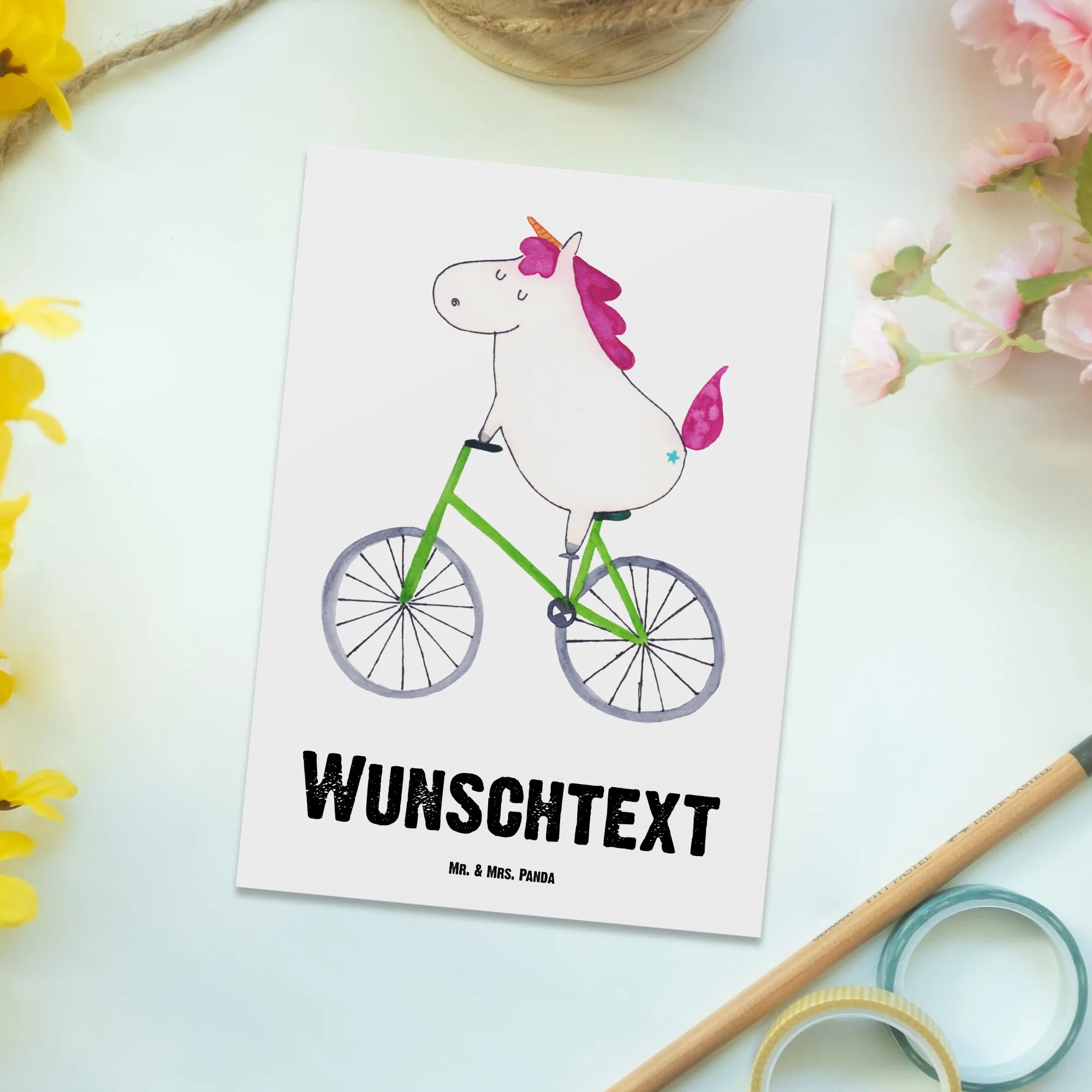 Suchst du nach dem perfekten Geschenk, um jemandem eine Freude zu bereiten? Dann ist die personalisierte Postkarte mit dem zauberhaften Motiv 'Einhorn Radfahrer' aus der Einhorn-Kollektion genau das Richtige! Diese wunderschöne Karte wird individuell mit deinem Wunschnamen bedruckt und bringt ein Lächeln in jedes Gesicht.