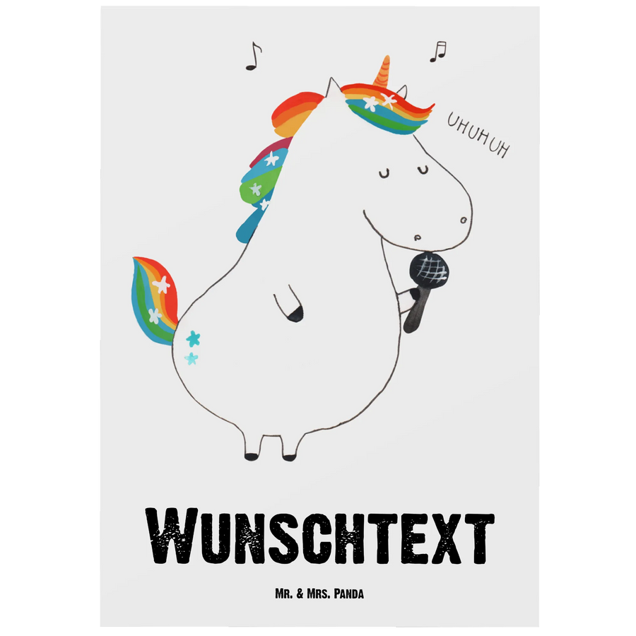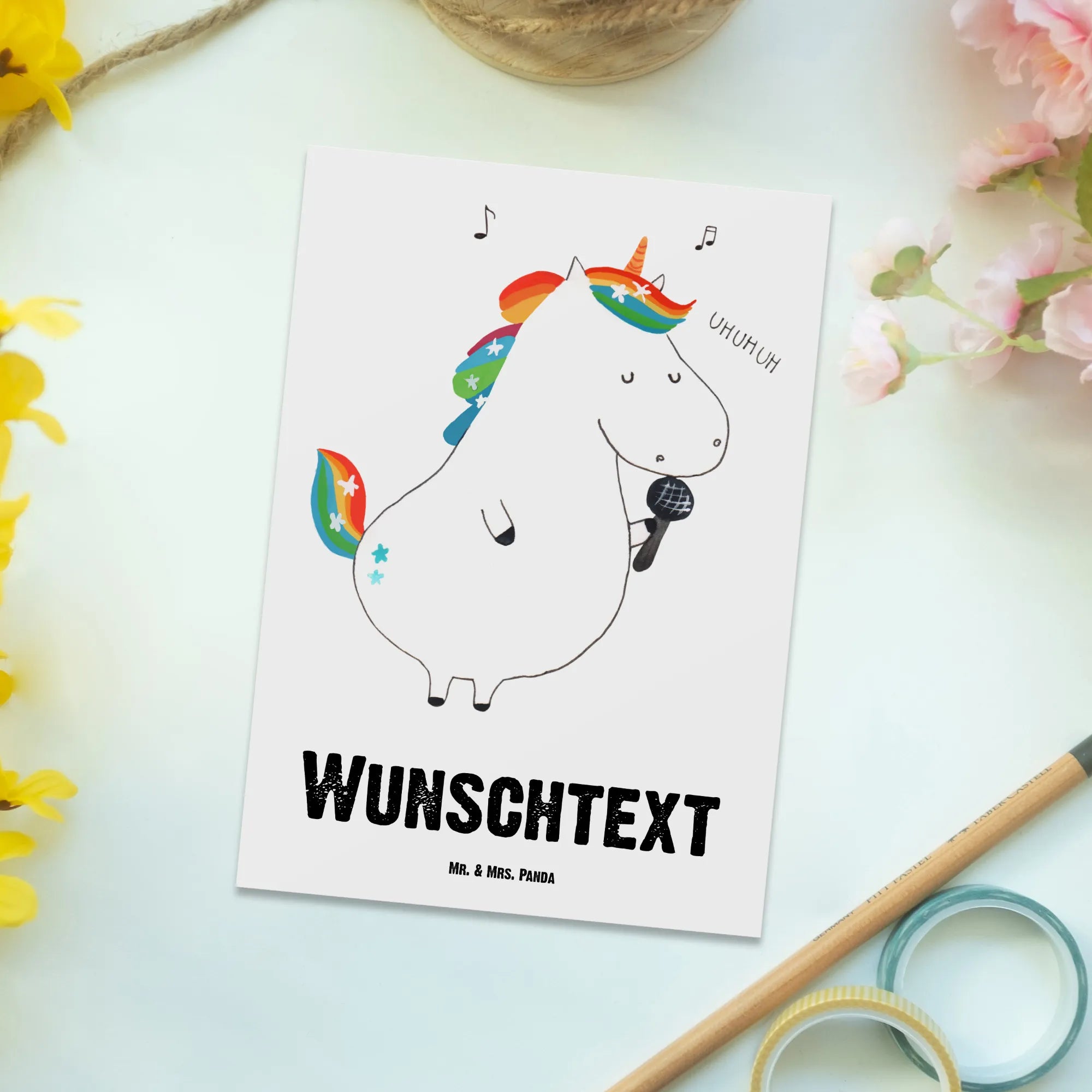 Die personalisierte Postkarte "Einhorn Sänger" von Mr. & Mrs. Panda ist das perfekte Geschenk für alle Einhorn-Liebhaber und Festtagsfreunde! Egal, ob Geburtstag, Hochzeit oder einfach nur so, diese Karte verbreitet Freude und scheint leuchten, so wie das Einhorn in der Mitte!