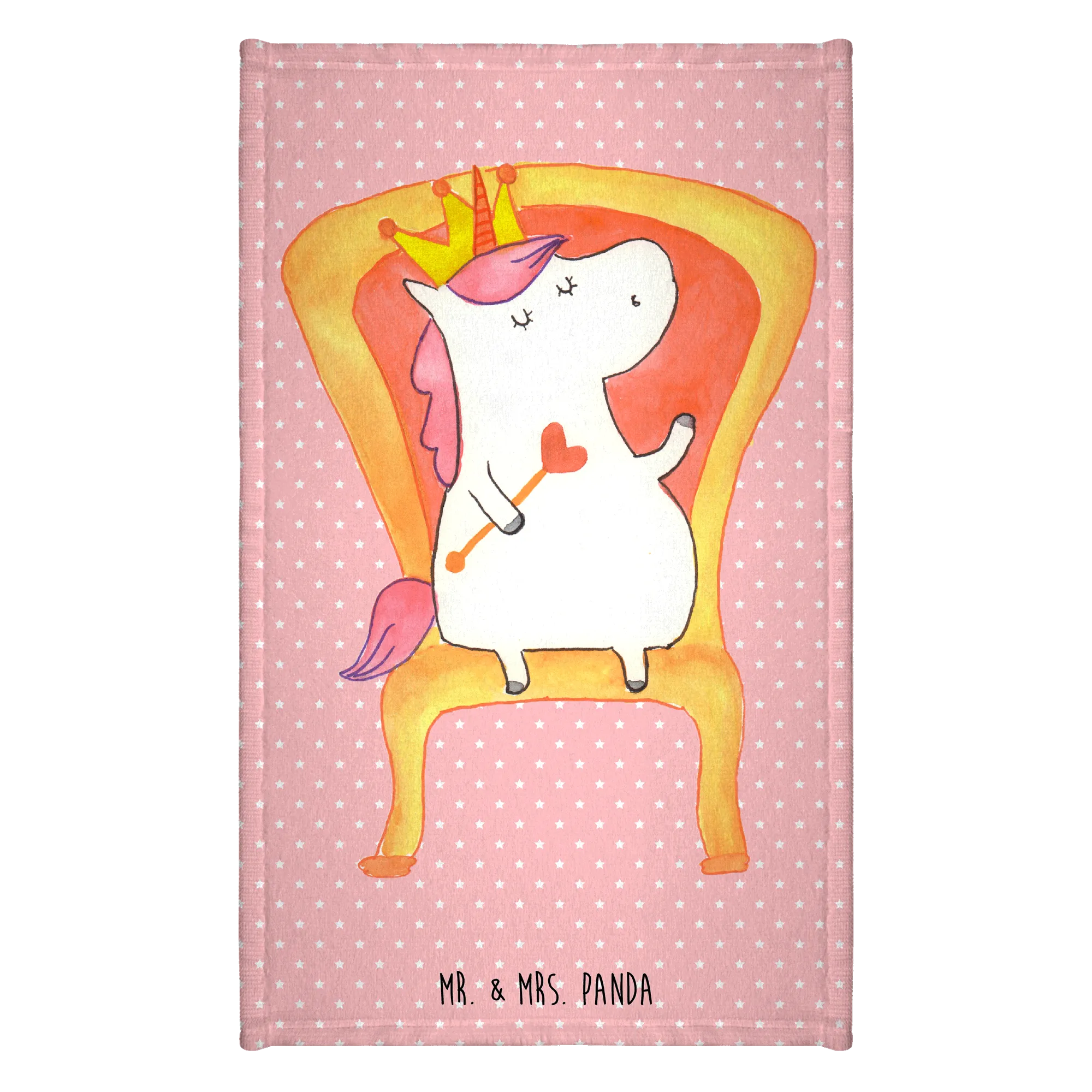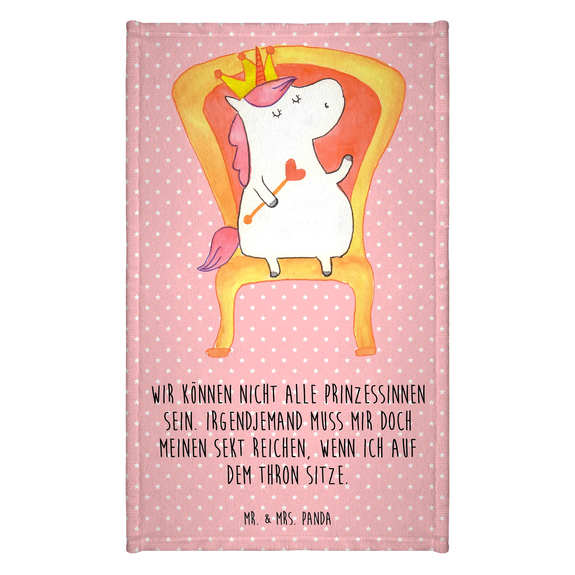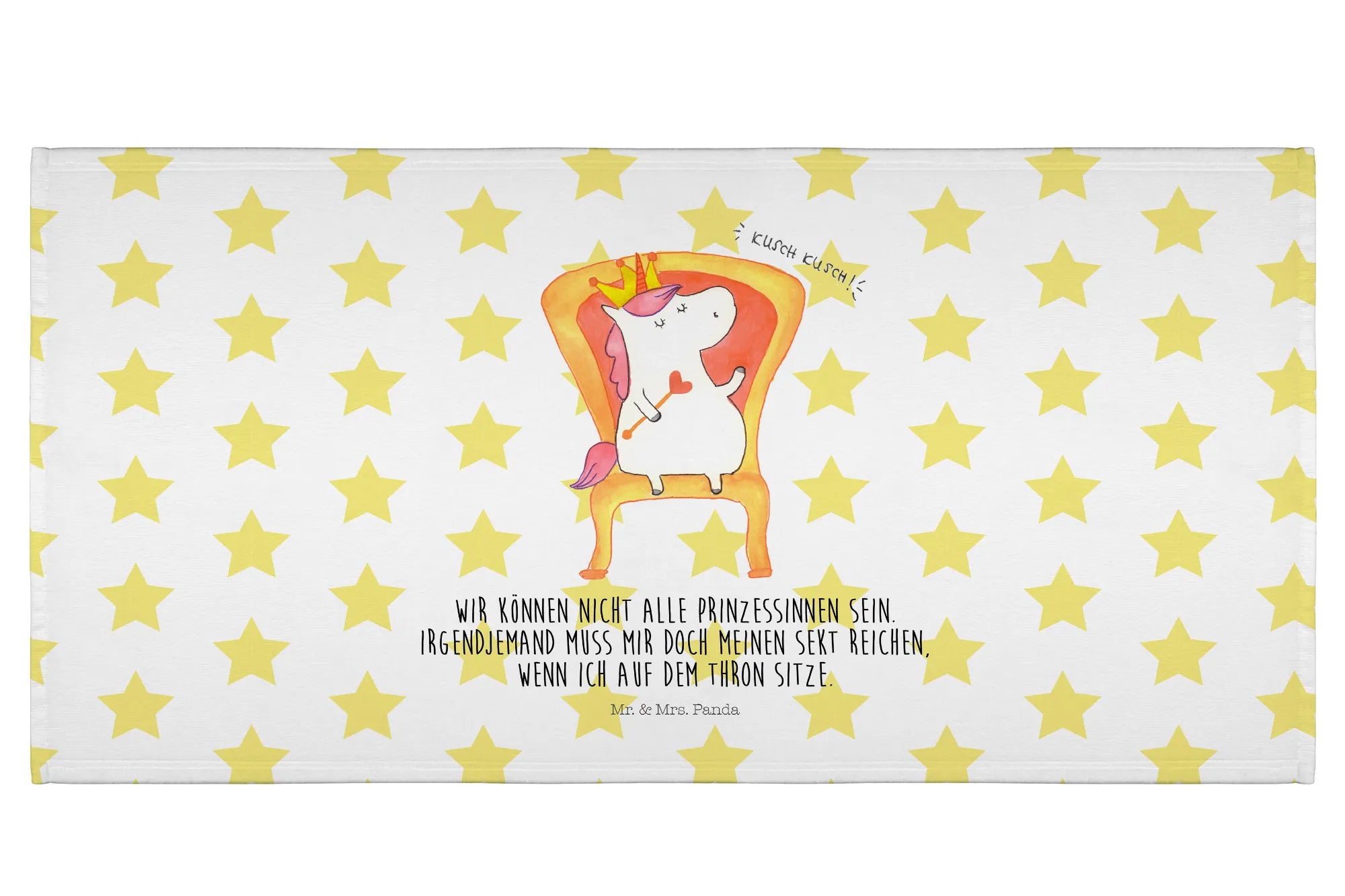 Verleihe deinem Bad oder dem Kinderzimmer einen Hauch Magie mit dem schönen 50 x 100 Handtuch aus der Einhorn - Kollektion von Mr. & Mrs. Panda. Das Motiv zeigt eine königliche Einhorn-Prinzessin auf einem Thron – liebevoll handgezeichnet von Mrs. Panda und bunt bedruckt in strahlenden Farben.