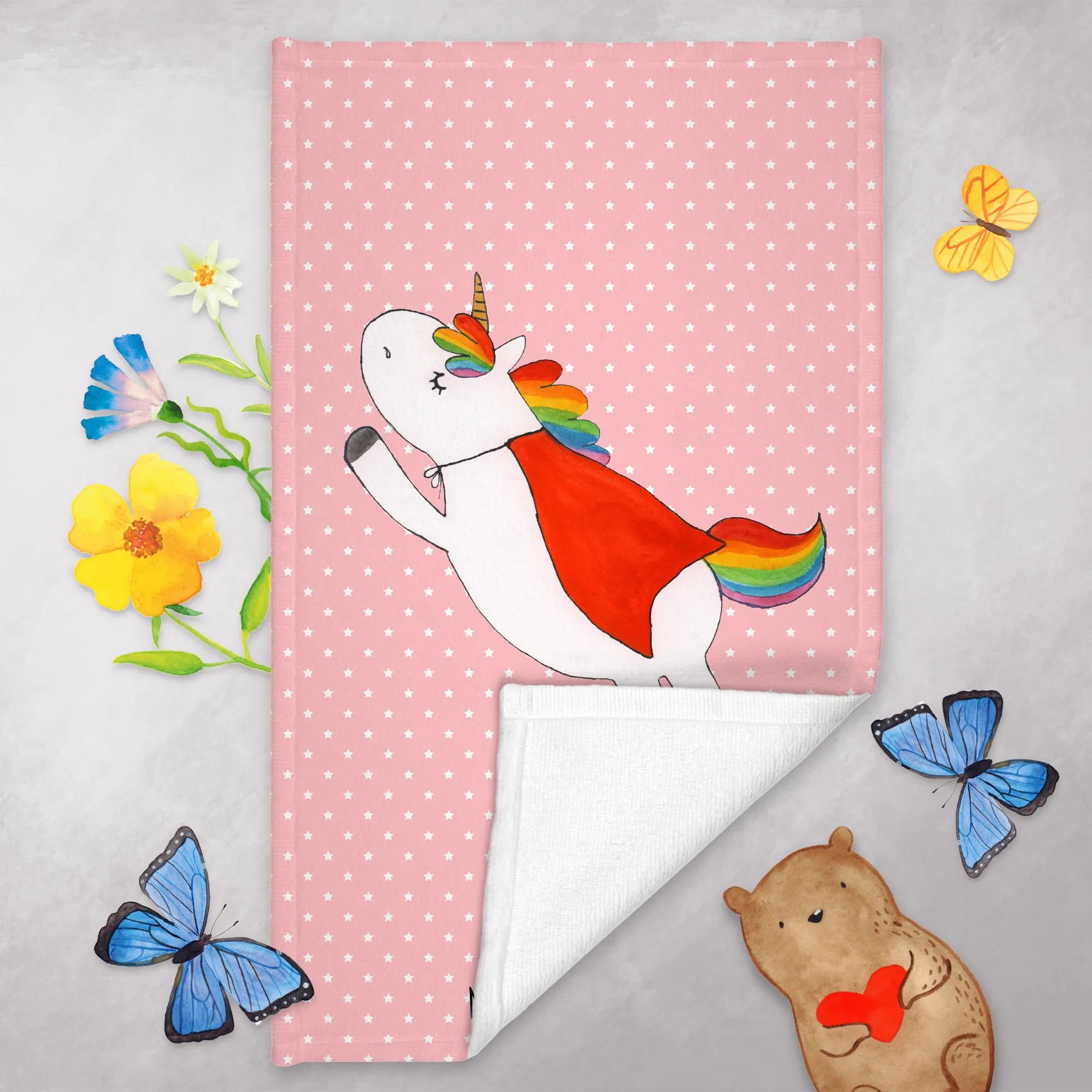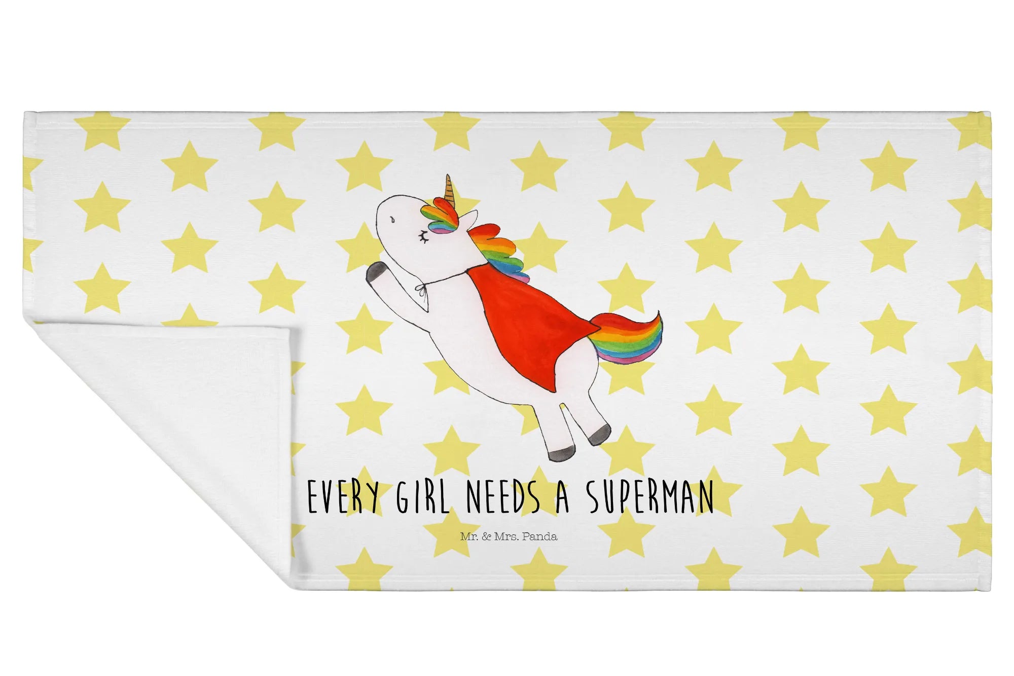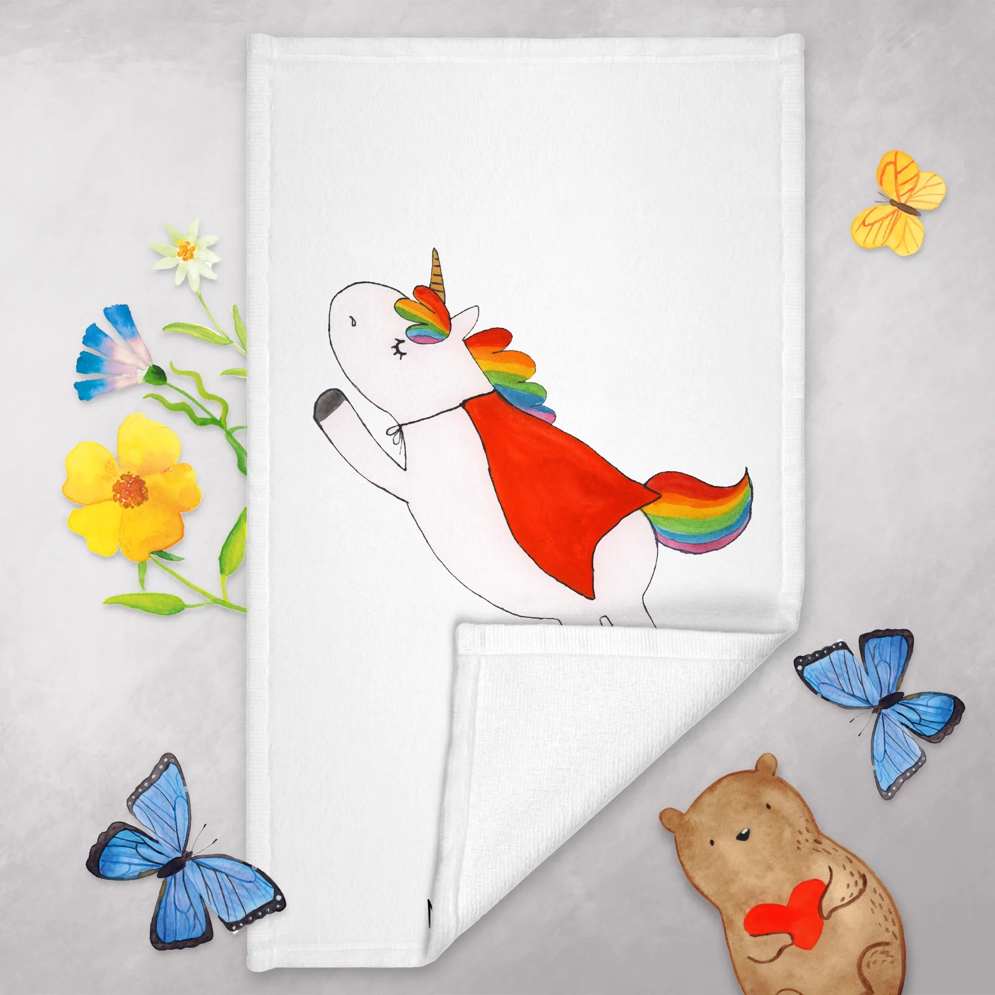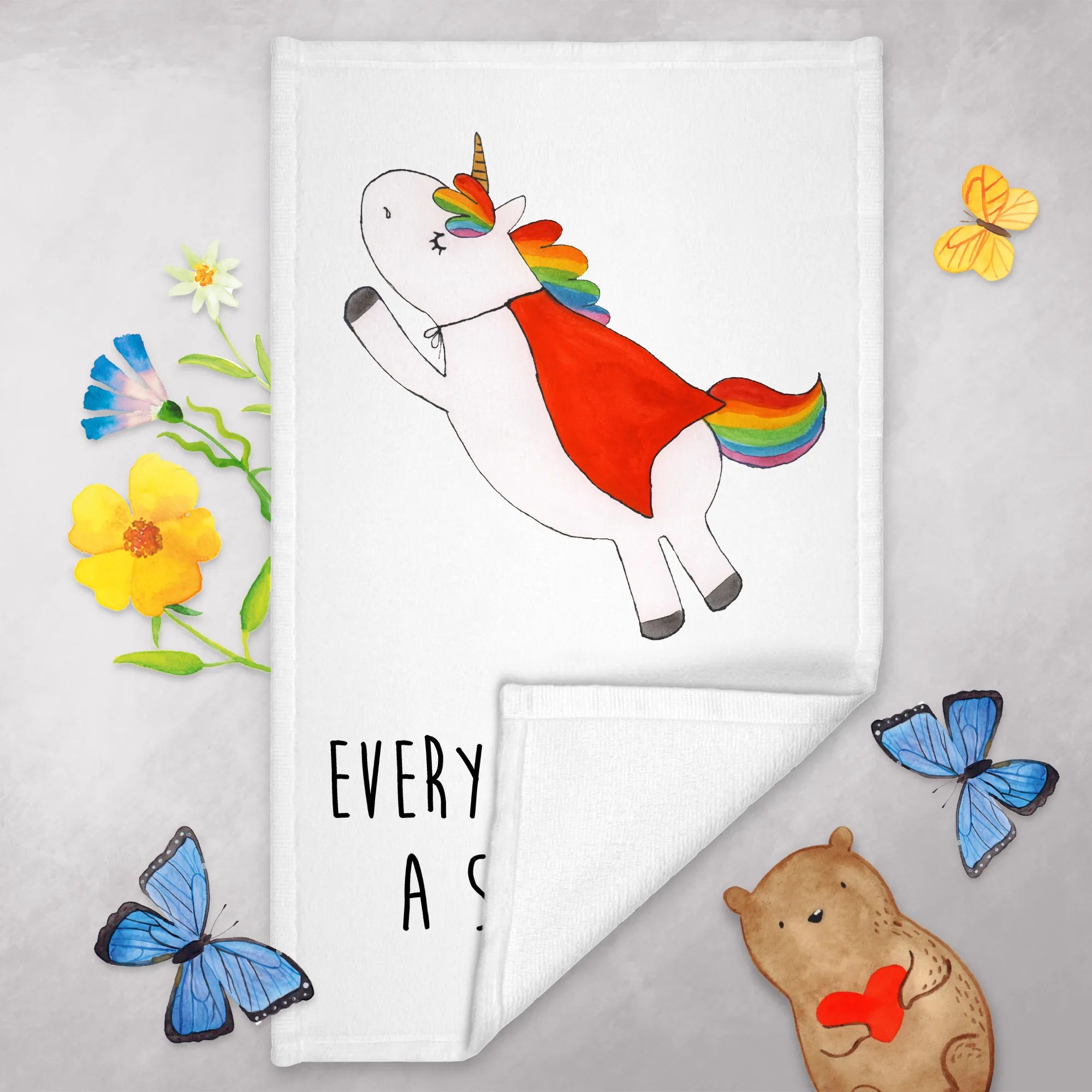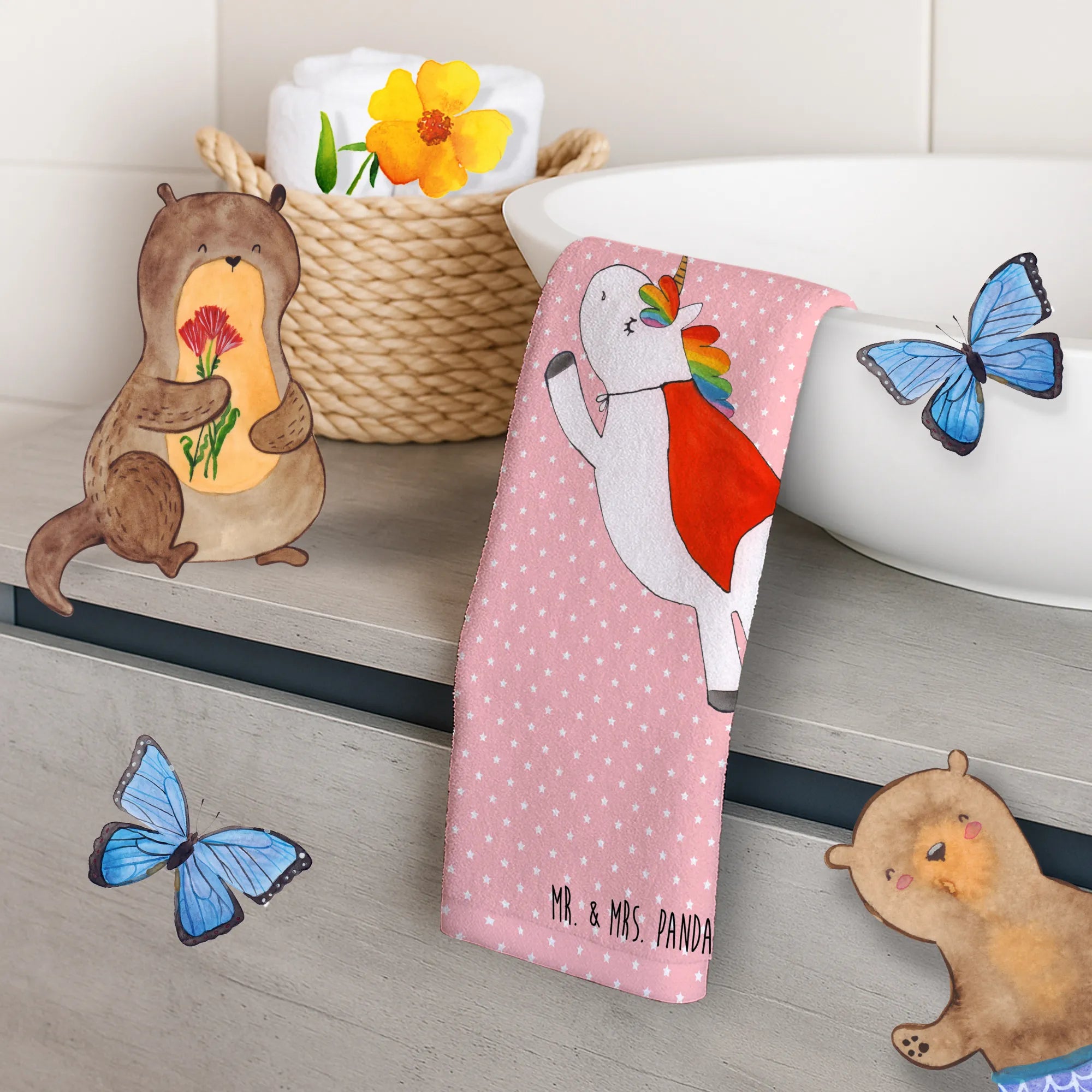 Das Gästehandtuch Einhorn Super von Mr. & Mrs. Panda ist das perfekte Geschenk für alle Einhornliebhaber und Mädchen, die die zauberhafte Welt der Einhörner schätzen. Mit einem liebevollen Motiv, das ein süßes Einhorn in Heldengestalt zeigt, wird dieses Handtuch zum Hingucker in jedem Badezimmer. Ob als Geschenk für eine Freundin, zur Geburtstagsfeier oder einfach nur, um sich selbst eine Freude zu machen – dieses Handtuch ist ideal für jede Gelegenheit.