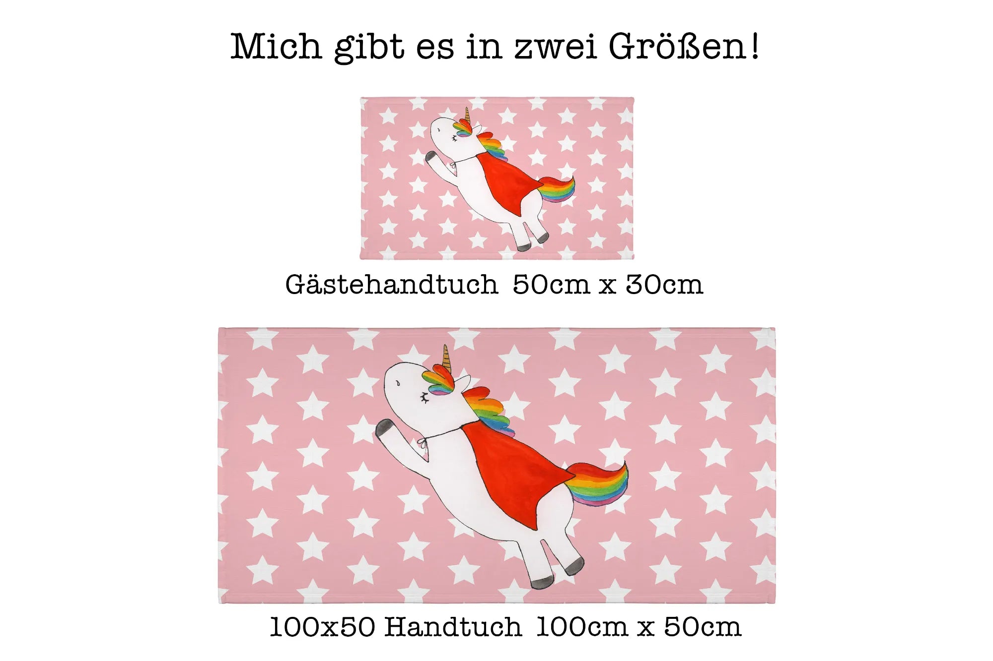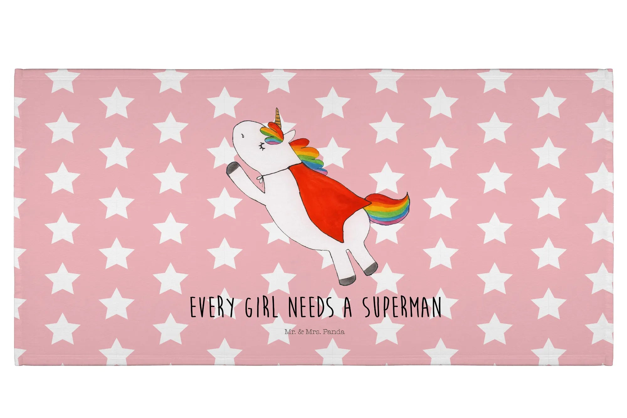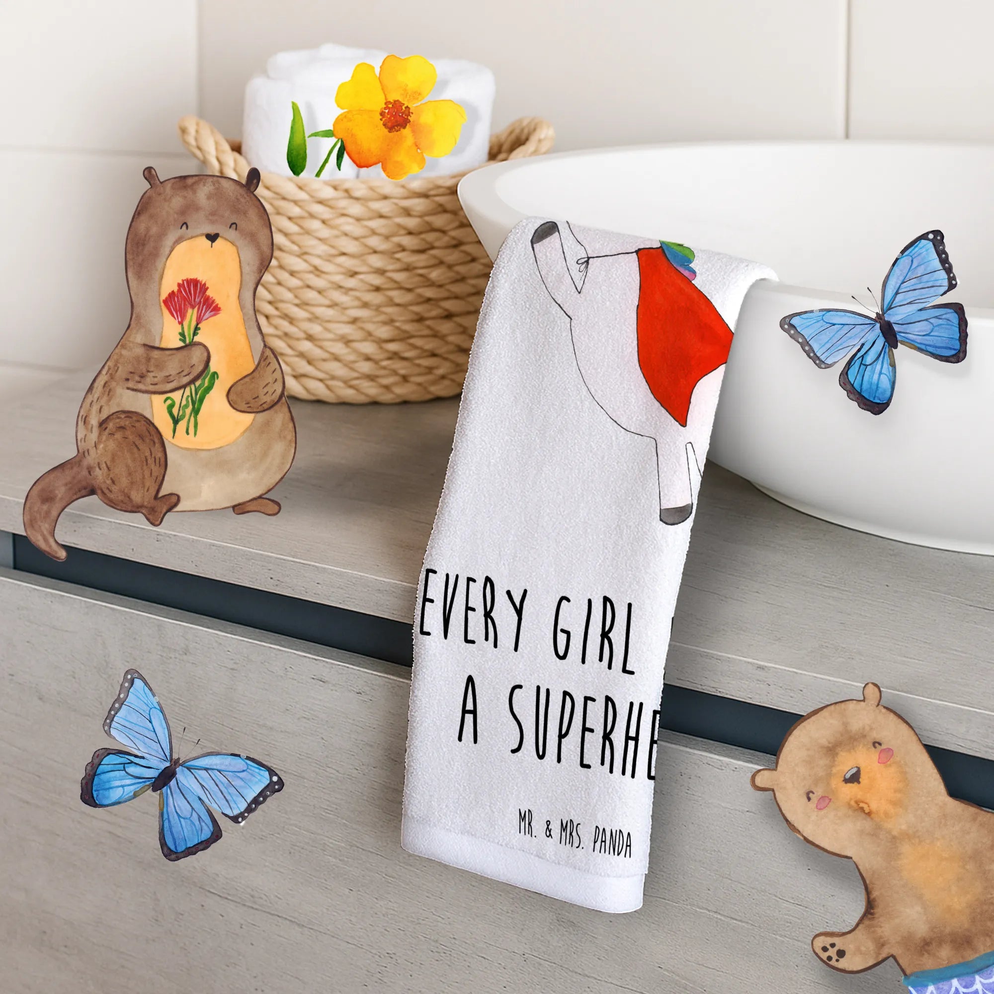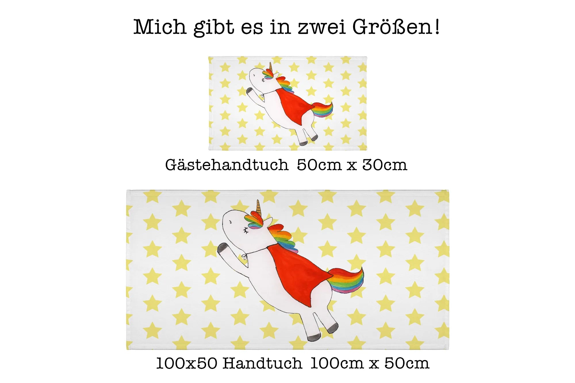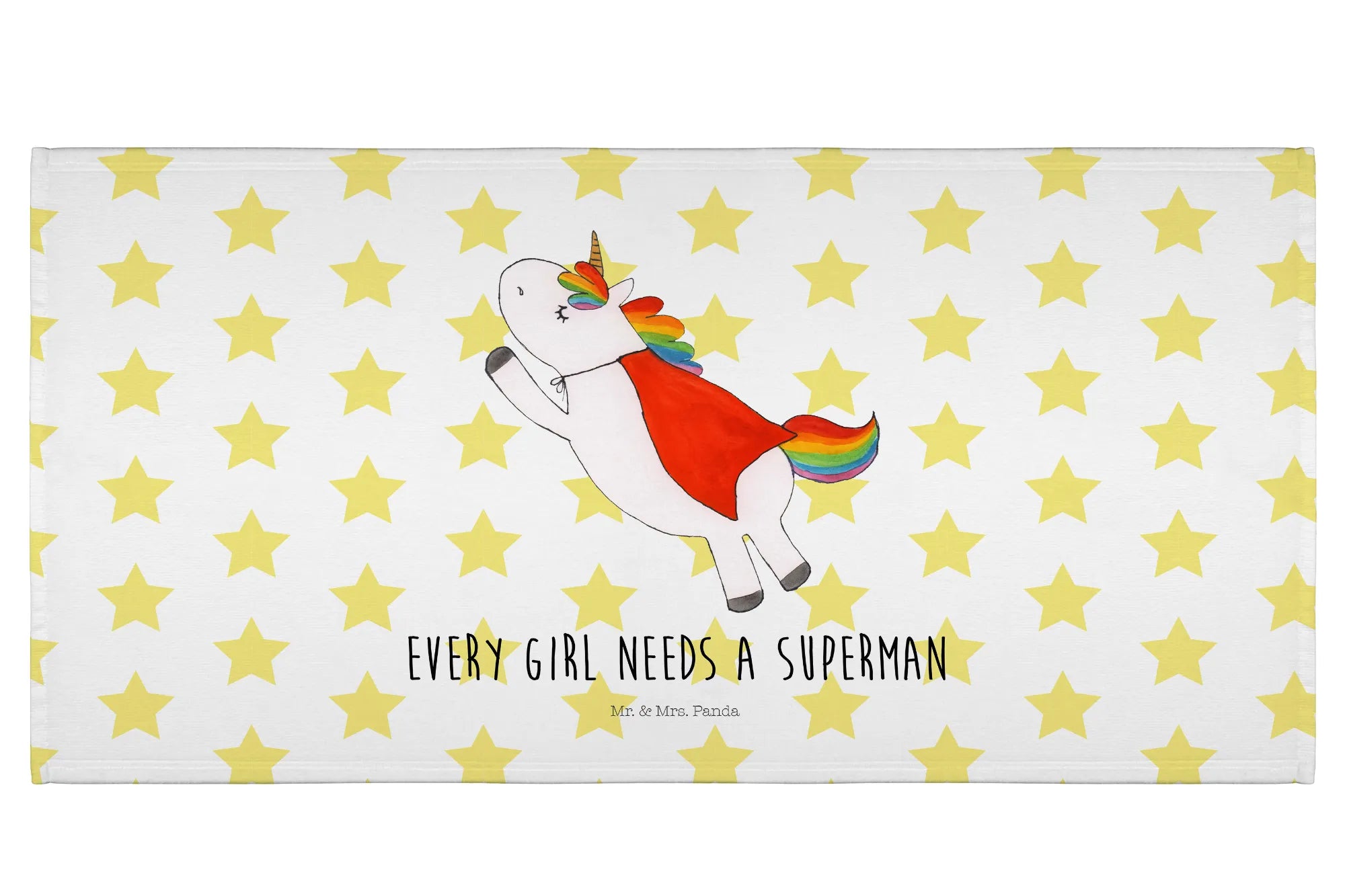 Das Gästehandtuch Einhorn Super von Mr. & Mrs. Panda ist das perfekte Geschenk für alle Einhornliebhaber und Mädchen, die die zauberhafte Welt der Einhörner schätzen. Mit einem liebevollen Motiv, das ein süßes Einhorn in Heldengestalt zeigt, wird dieses Handtuch zum Hingucker in jedem Badezimmer. Ob als Geschenk für eine Freundin, zur Geburtstagsfeier oder einfach nur, um sich selbst eine Freude zu machen – dieses Handtuch ist ideal für jede Gelegenheit.