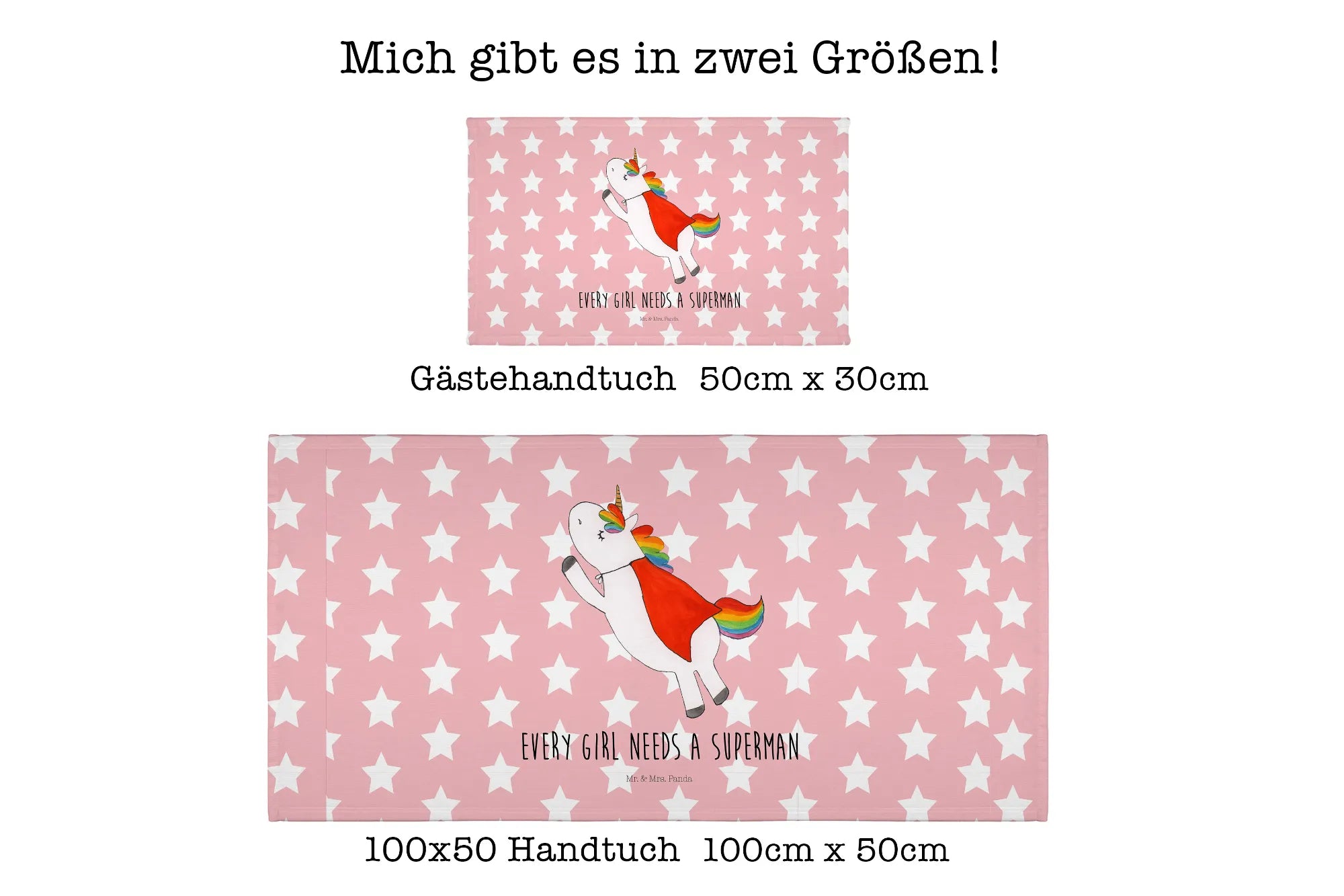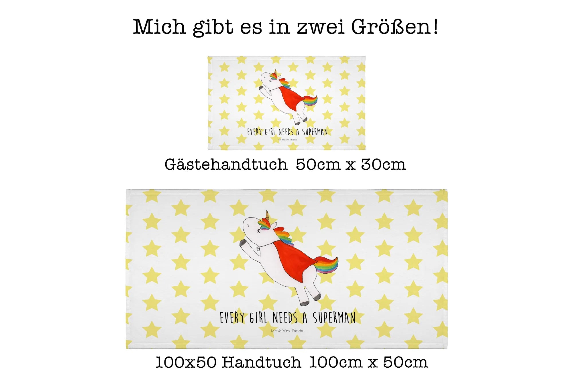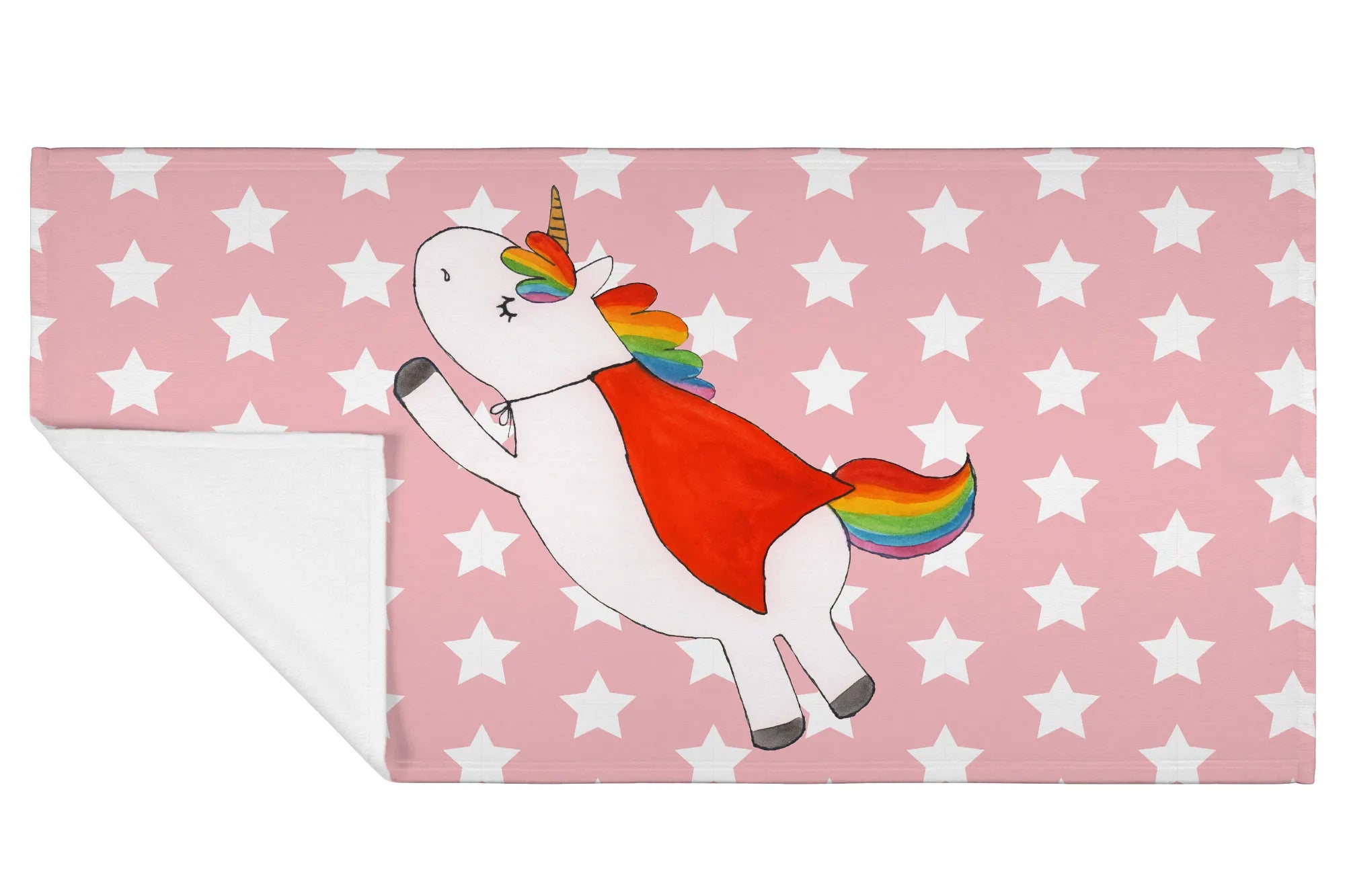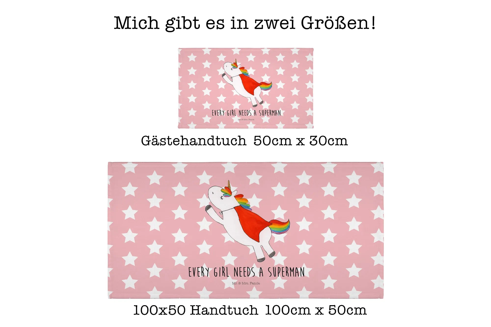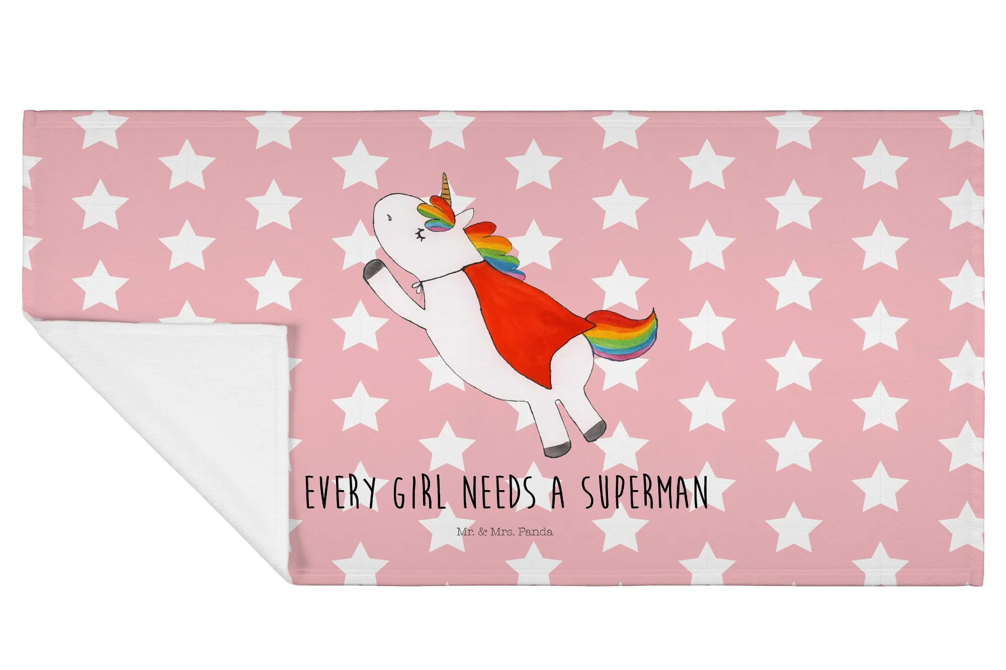 Das Gästehandtuch Einhorn Super von Mr. & Mrs. Panda ist das perfekte Geschenk für alle Einhornliebhaber und Mädchen, die die zauberhafte Welt der Einhörner schätzen. Mit einem liebevollen Motiv, das ein süßes Einhorn in Heldengestalt zeigt, wird dieses Handtuch zum Hingucker in jedem Badezimmer. Ob als Geschenk für eine Freundin, zur Geburtstagsfeier oder einfach nur, um sich selbst eine Freude zu machen – dieses Handtuch ist ideal für jede Gelegenheit.