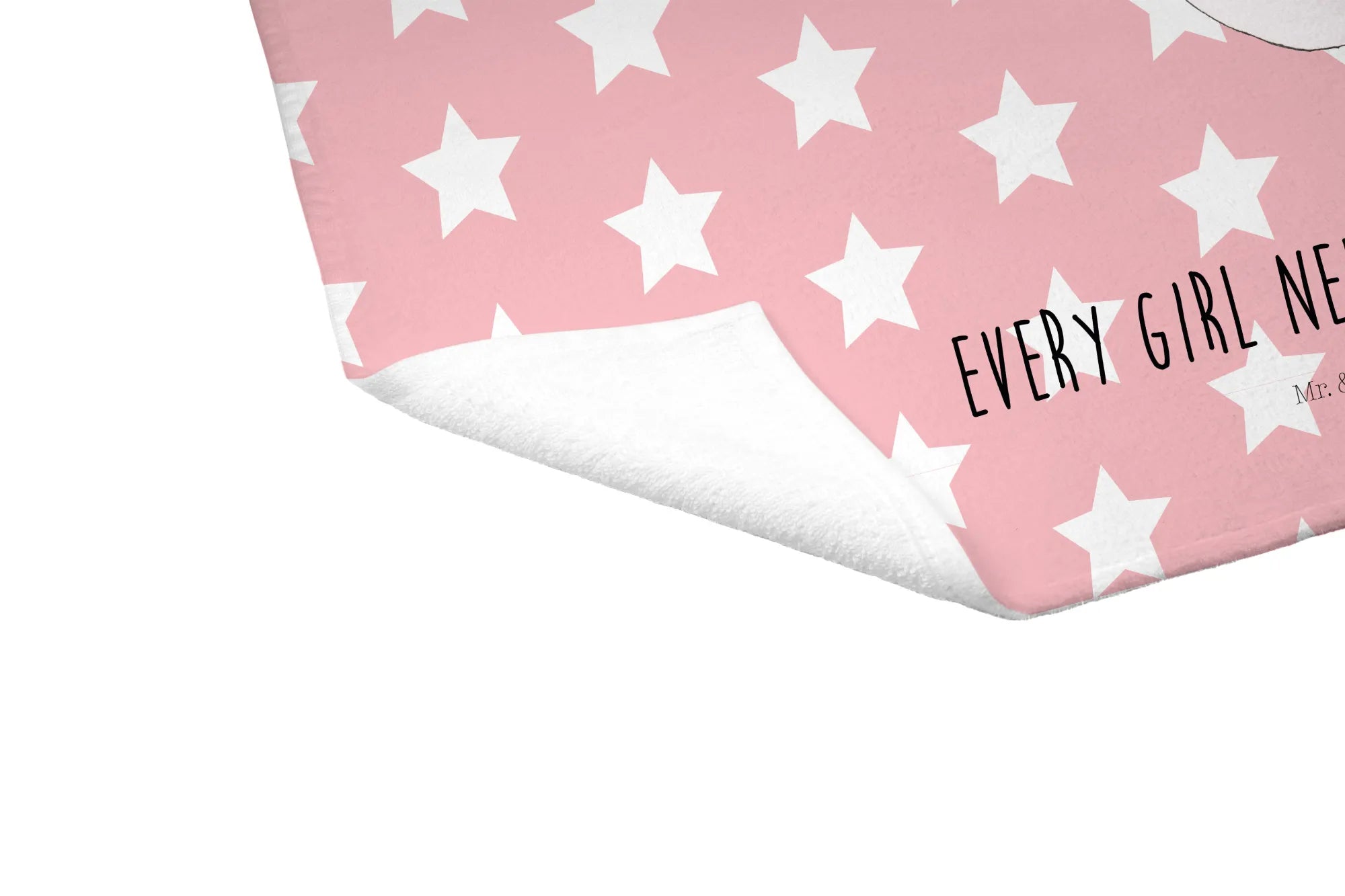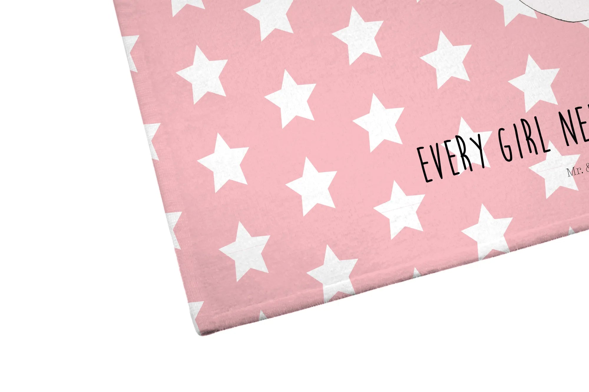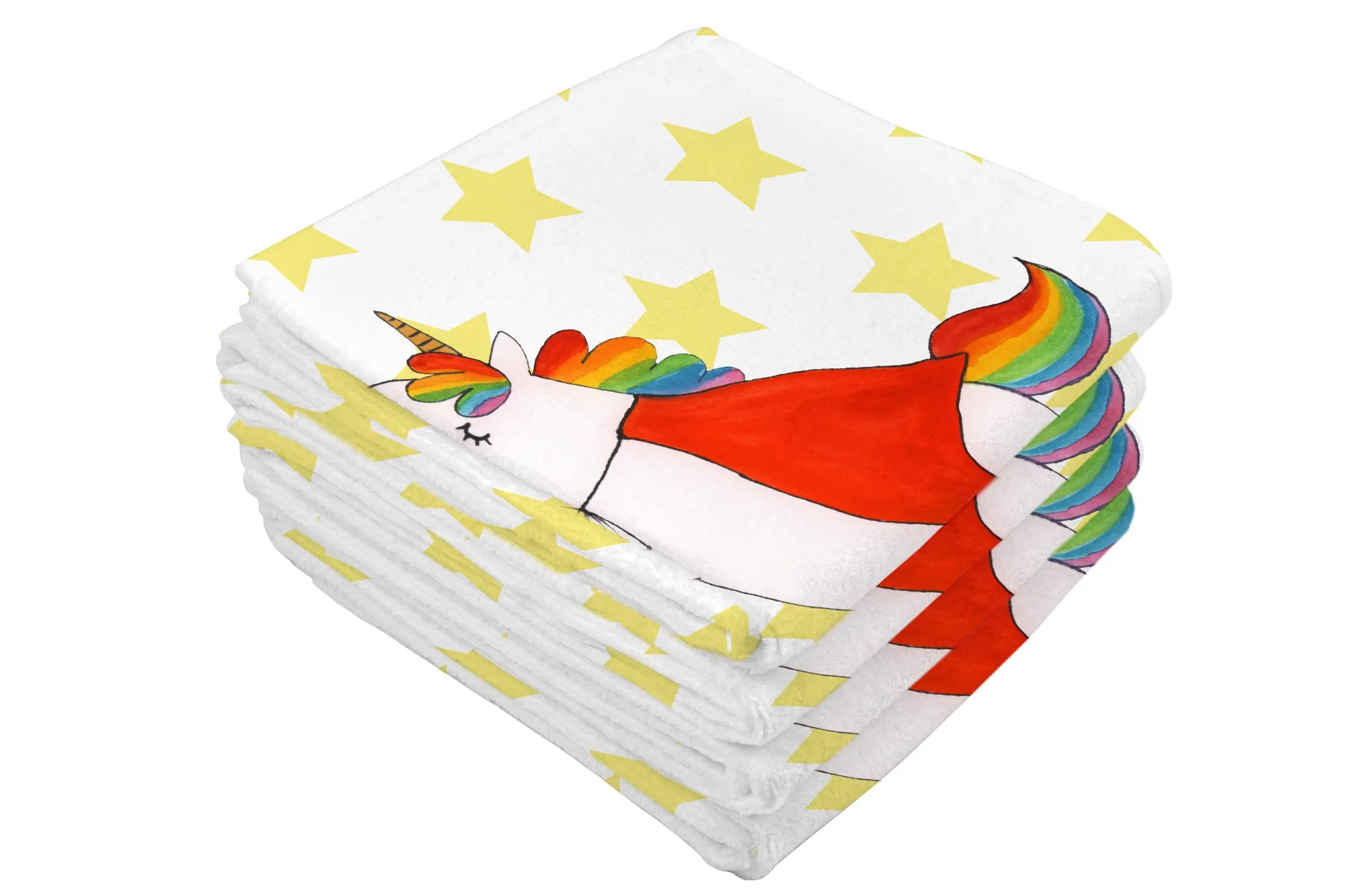 Das Gästetuch Einhorn Super von Mr. & Mrs. Panda ist das perfekte Geschenk für kleine Prinzessinnen und Einhorn-Fans! Mit seinem zauberhaften Design und dem süßen Einhorn-Motiv begeistert es jedes Mädchen und macht jedes Badezimmer zu einem magischen Ort. Dieses hochwertige Gästehandtuch ist aus einer flauschigen Baumwollmischung gefertigt und sorgt für ein extra weiches Gefühl auf der Haut. Es hat die ideale Größe von 300 mm x 500 mm und wird damit zum perfekten Begleiter für Badezimmer, Gäste-WC oder für unterwegs.
