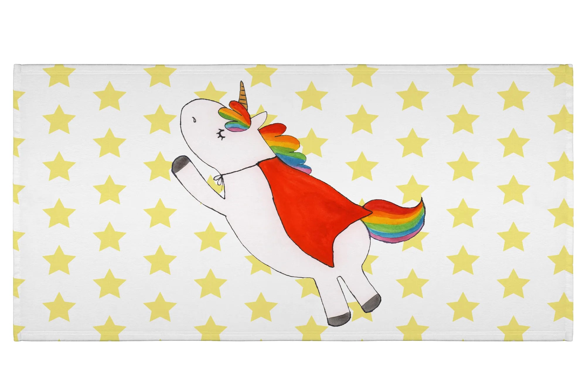 Das 50 x 100 Handtuch mit dem süßen Einhorn Super von Mr. & Mrs. Panda ist nicht nur ein praktischer Begleiter in deinem Badezimmer, sondern bringt auch ein Stück Magie in den Alltag! Das flauschige Handtuch aus hochwertiger Baumwollmischung ist perfekt für Kinder und Babys. Mit seinem bunten, strahlenden Design und dem bezaubernden Einhorn-Motiv ist es ein echter Blickfang und hellt jedes Badezimmer auf. Ganz egal, ob als Geschenk für eine Freundin oder für dein eigenes kleines Einhorn zu Hause, dieses Handtuch ist einfach perfekt!