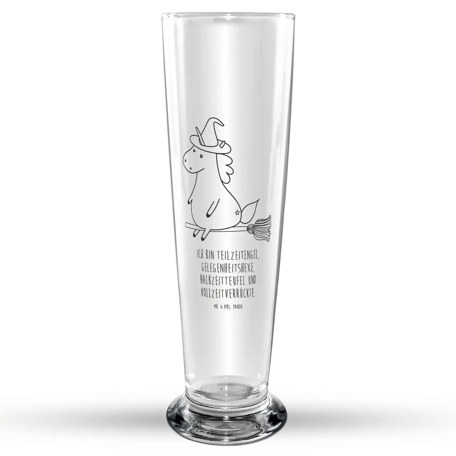 Mit einem zauberhaften Motiv eines Einhorns in Hexenverkleidung, wird dieses Glas schnell zum Lieblingsstück jeder Bierliebhaberin oder jedes Bierliebhabers. Der freche Slogan 'Ich bin Teilzeitengel, Gelegenheitshexe, Halbzeitteufel und Vollzeitverrückte.' bringt jeden zum Schmunzeln und sorgt für gute Laune bei jedem Bierchen.