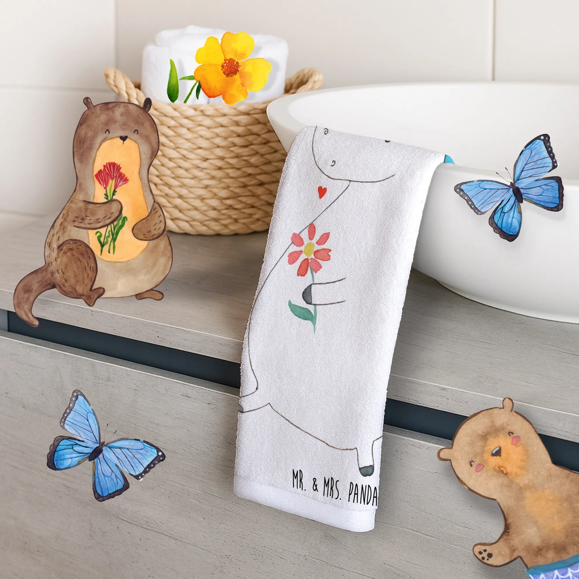 Das hochwertige Gästehandtuch von Mr. & Mrs. Panda ist genau das Richtige, um deinem Badezimmer einen Hauch von Eleganz zu verleihen! Gemessen an 300 mm x 500 mm und aus einer weichen Baumwollmischung hergestellt, vereint es Funktionalität und Stil. Die frisch bedruckten Motive und Sprüche sind ein echter Eyecatcher und sorgen für eine einladende Atmosphäre. Mit einem Gewicht von nur 60 g ist es leicht, fühlt sich aber gleichzeitig großartig auf deiner Haut an. Egal ob als Frotteehandtuch im Gästebad oder als hübsches Accessoire für dein eigenes Badezimmer, dieses Handtuch bringt Farbe und Freude in jeden Raum. Die allseitige Umrandung mit doppelten Nähten sorgt für zusätzliche Stabilität, sodass du lange Freude daran haben wirst. Pflege es leicht bei 30°C in der Maschine und trockne es bei niedriger Temperatur im Trockner. Verwandle dein Badezimmer mit diesem einzigartigen Gästehandtuch in eine gemütliche Wohlfühloase!