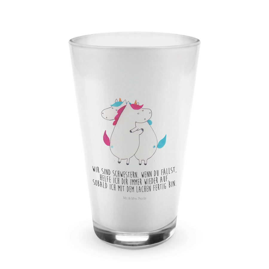 Das perfekte Geschenk für Schwestern! Unser zauberhaftes Cappuccino Glas mit dem liebevollen Motiv "Einhörner Umarmen" aus der Einhorn-Kollektion ist nicht nur ein Hingucker, sondern auch ein treuer Begleiter für jeden Kaffeeliebhaber. Die beiden süßen Einhörner, die sich umarmen, symbolisieren die tiefe Bindung zwischen Geschwistern und Freunden. Du kennst doch das Gefühl: Deine Schwester klaut deine Klamotten, besetzt das Badezimmer und will immer die Fernbedienung! Doch trotz all dieser Eigenheiten kann man einfach nicht ohne sie. Dieses Glas hat das perfekte Motiv für uns Schwestern und sorgt für ein Lächeln auf den Lippen, während wir gemeinsam unseren Latte Macchiato genießen.